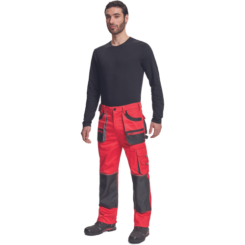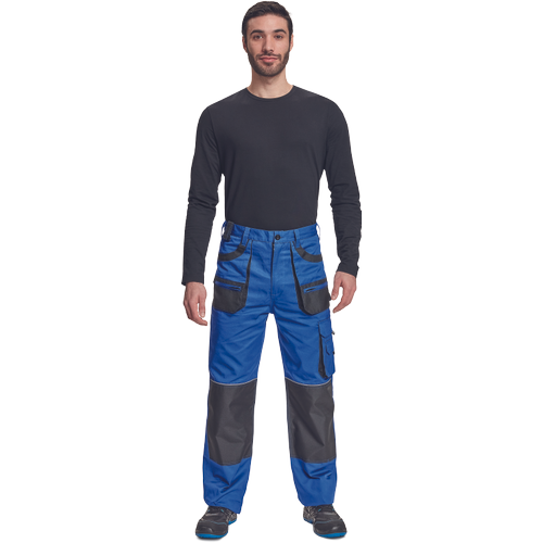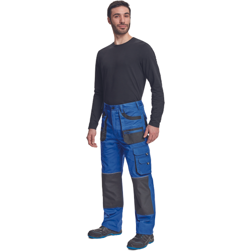 – moške delovne hlače iz bombaža – 6 funkcionalnih žepov – ojačani kolenski deli iz poliestra Oxford z žepi za vstavljanje kolenskih blazinic – podaljšana dolžina nogavic