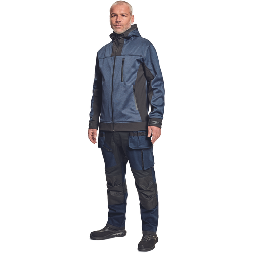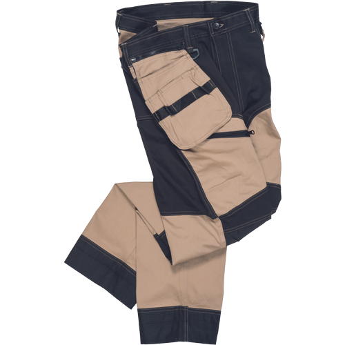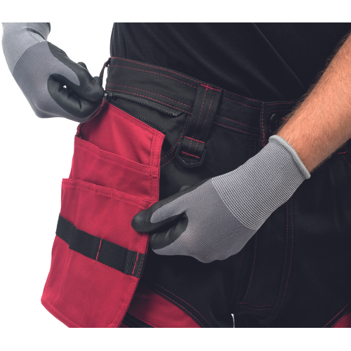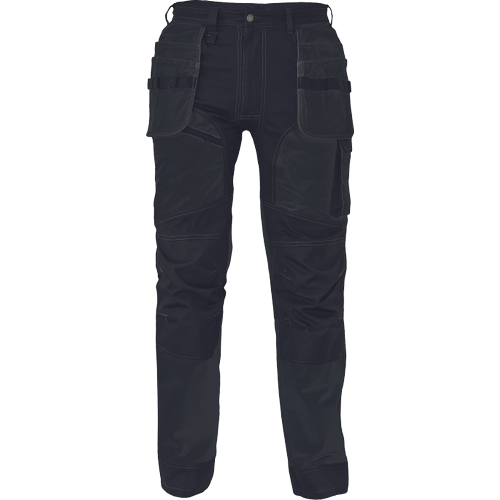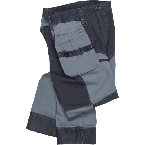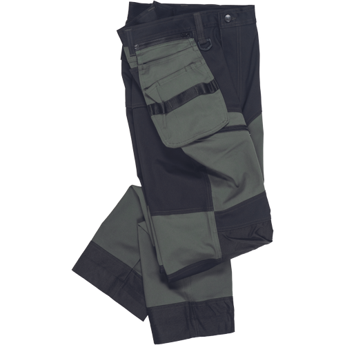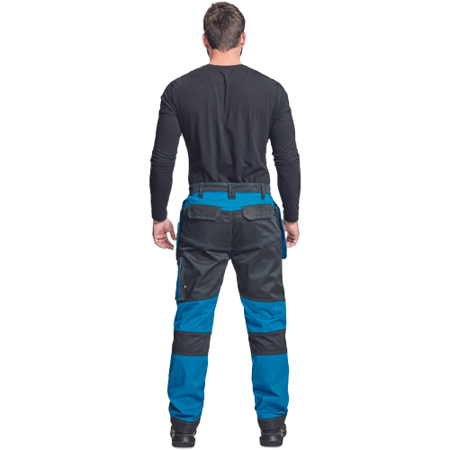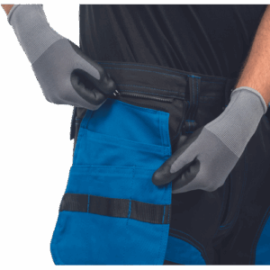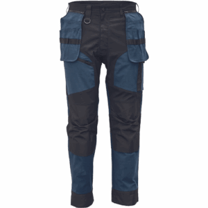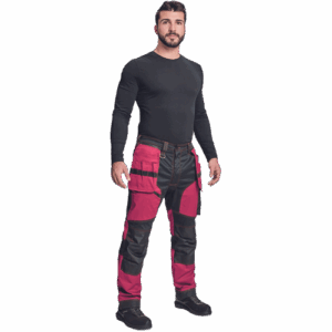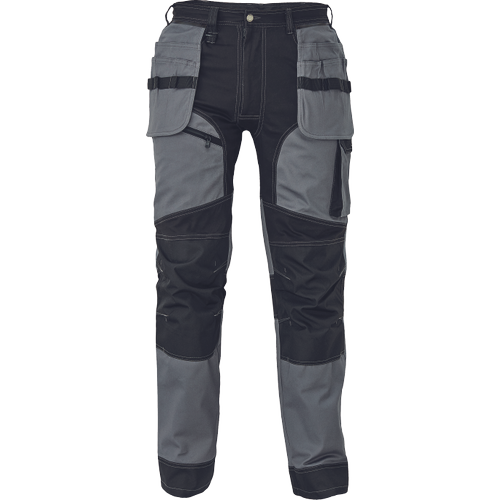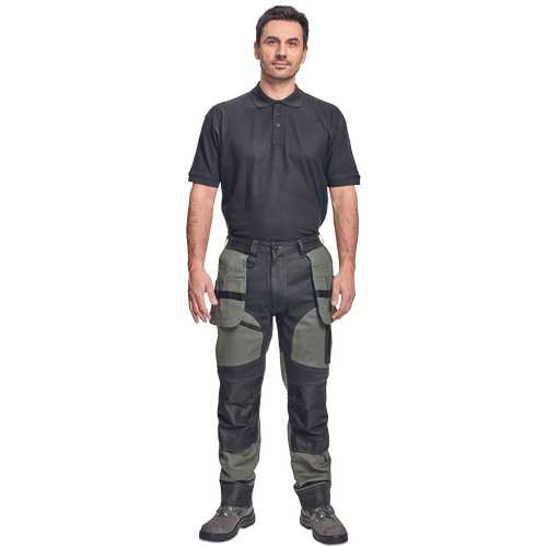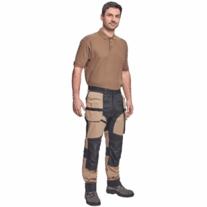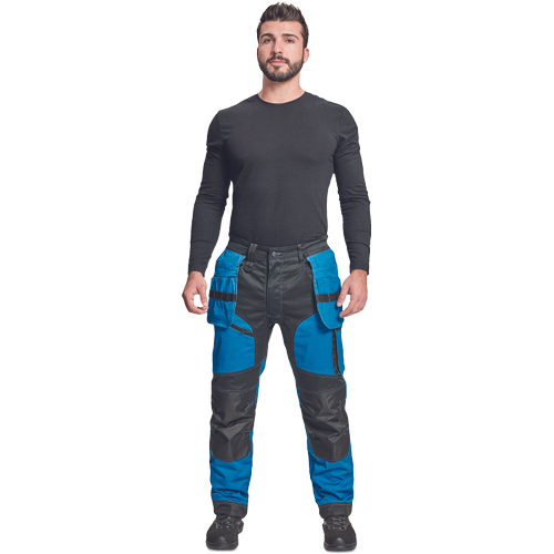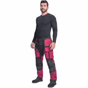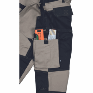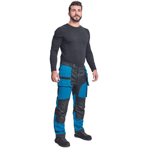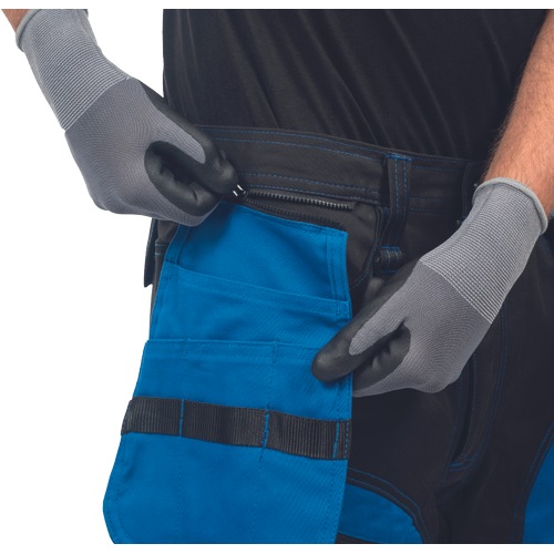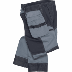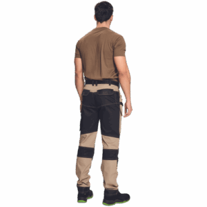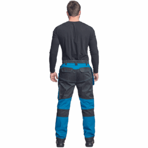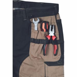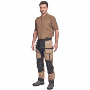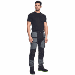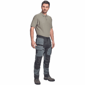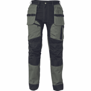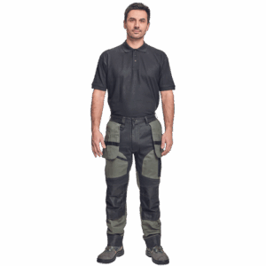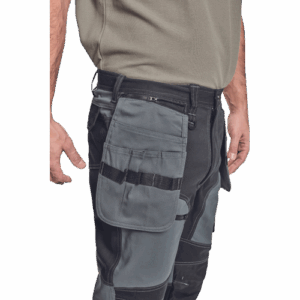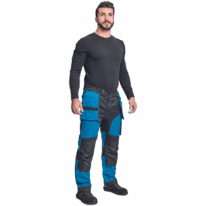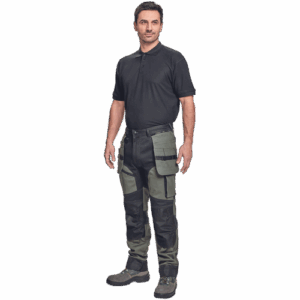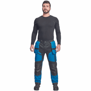 – moške delovne vzdržljive hlače iz elastičnega materiala – večnamenski žepi – 2 snemljiva žepa za leteče orodje spredaj – FP – ojačani deli kolen z vdolbinicami za vstavljanje kolenskih blazinic – podaljšana dolžina nog do 5 cm – okrasni šivi