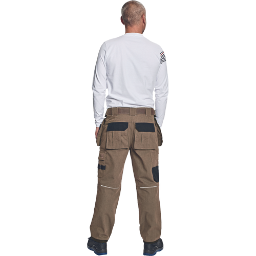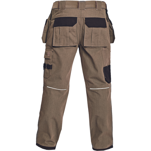– moške delovne hlače do pasu – snemljivi večnamenski žepi v sprednjem delu z možnostjo vstavitve prostornih sprednjih žepov – široke pasne zanke – stranski žep na nogi z zanko za orodje – veliki žepi z zavihkom na velcro na zadnjem delu – ojačani kolenski žepi iz tkanine Oxford, primerni za vstavitev kolenskih blazinic – trojni šivi in trakovi za ojačitev – kontrastne barve trakov – nastavljive dolžine nog – odsevne obrobe