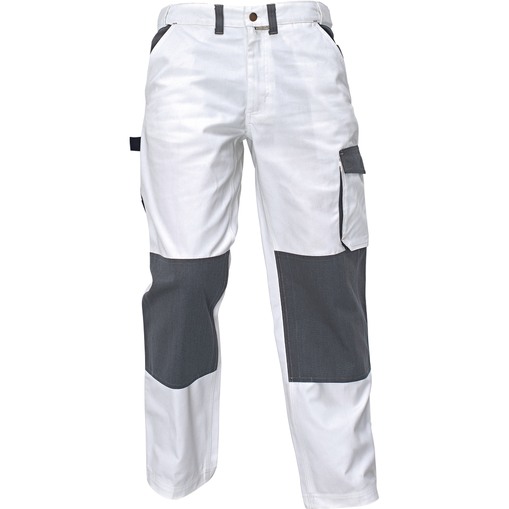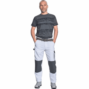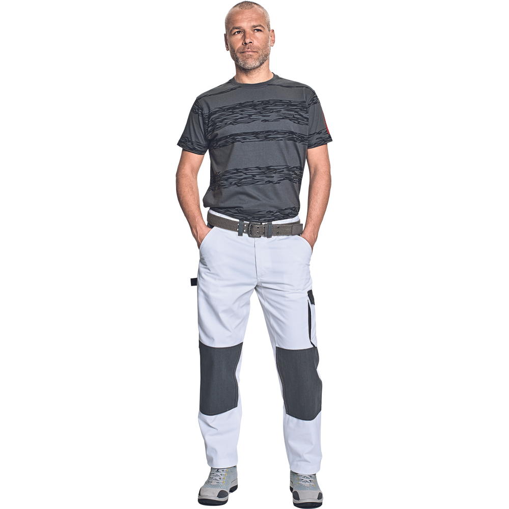 – moške delovne hlače s pasom, sprednji žepi v slogu kavbojk – 1 stranski žep z zavihkom na velcro – 1 stranski žep za orodje z zanko – 2 zadnja žepa – eden z zavihkom na velcro – nastavljiva dolžina nog – prilagodljiv pas – ojačani trojni šivi in oznake