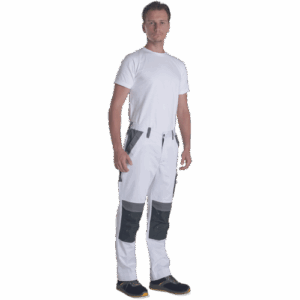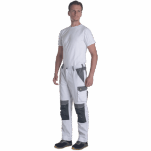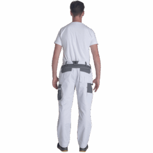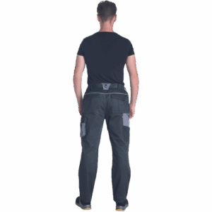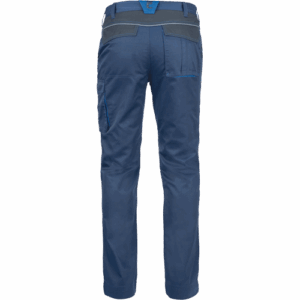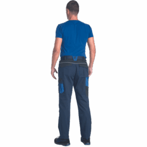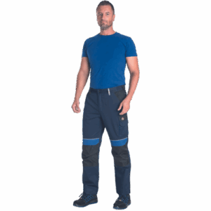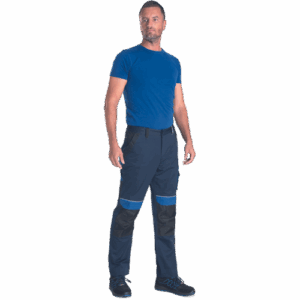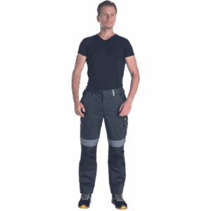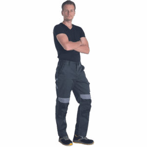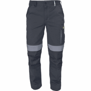 – moške delovne hlače z elastičnim pasom – 2 stranska žepa – 1 žep na levem stegnu – 2 zadnja žepa z velcro zapiranjem – ojačitev kolen z možnostjo vstavitve kolenskih blazinic – odsevni elementi – nastavljiva dolžina noge
