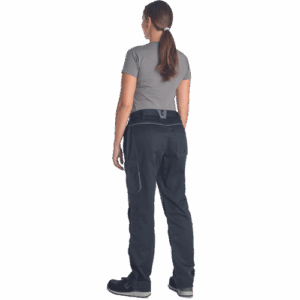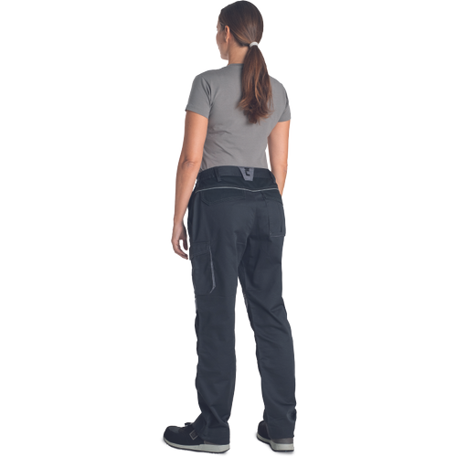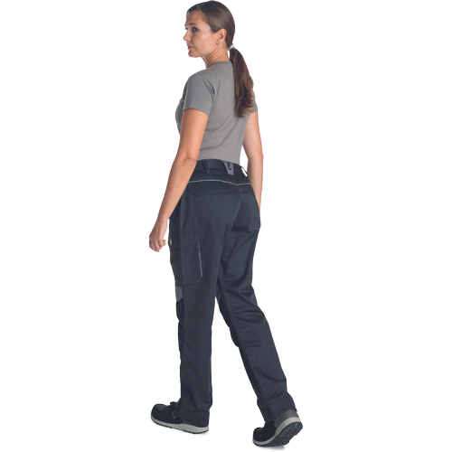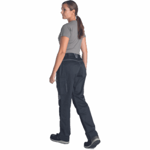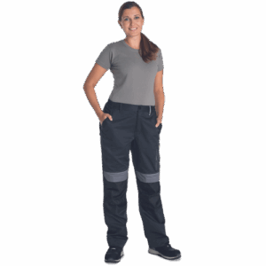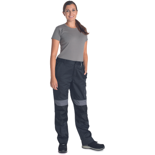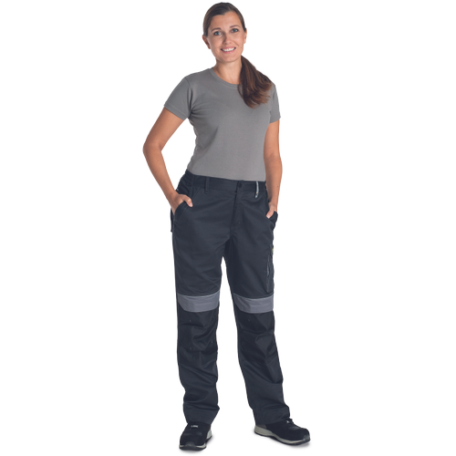 – ženske delovne hlače z elastičnim pasom – 2 stranska žepa – 1 žep na levem stegnu – 2 zadnja žepa z velcro zapiranjem – ojačitev kolen z možnostjo vstavitve kolenskih blazinic – odsevni elementi – nastavljiva dolžina noge