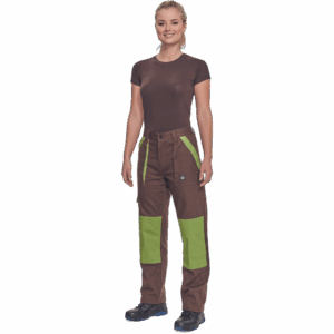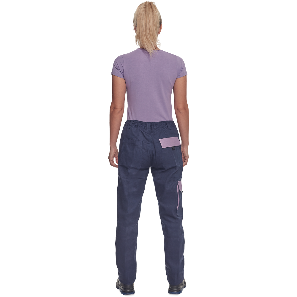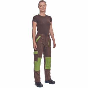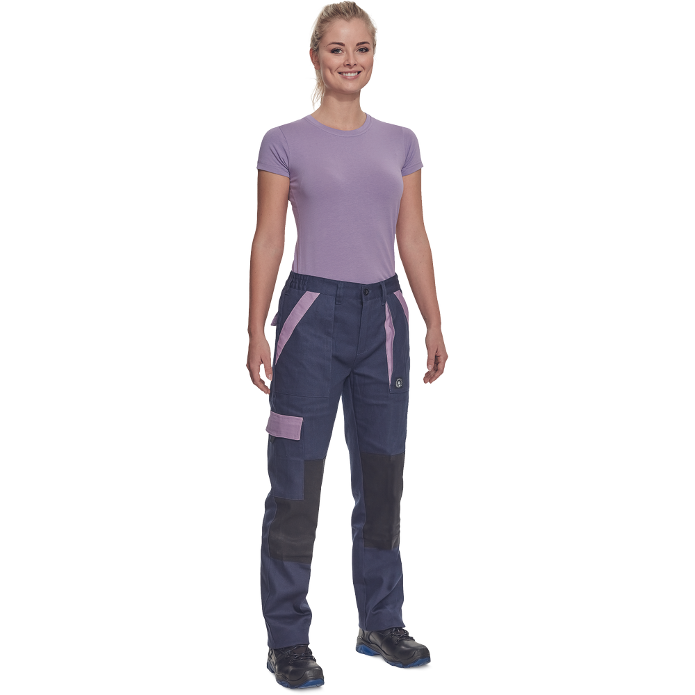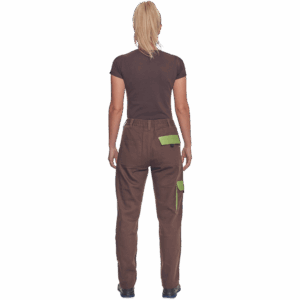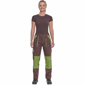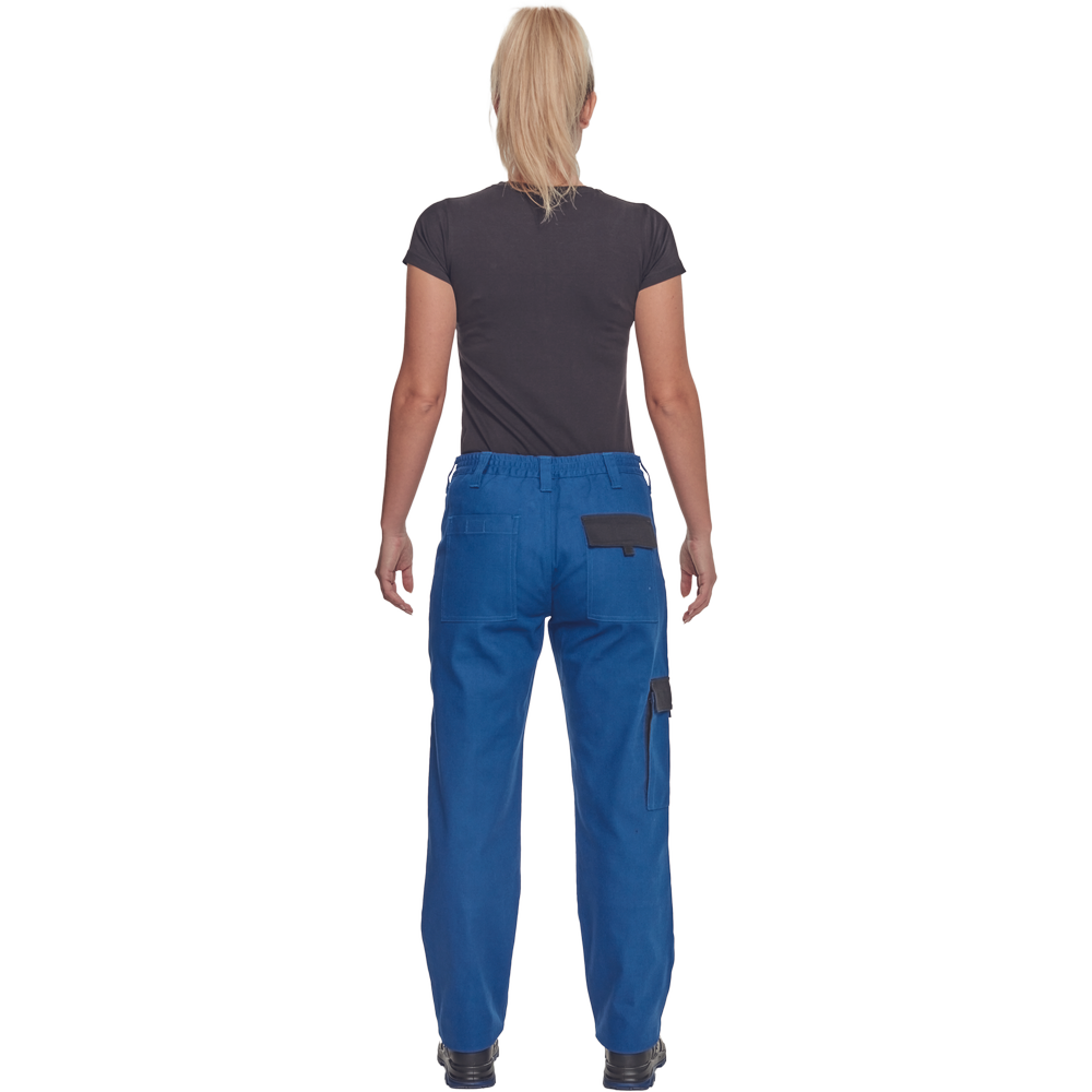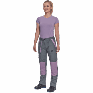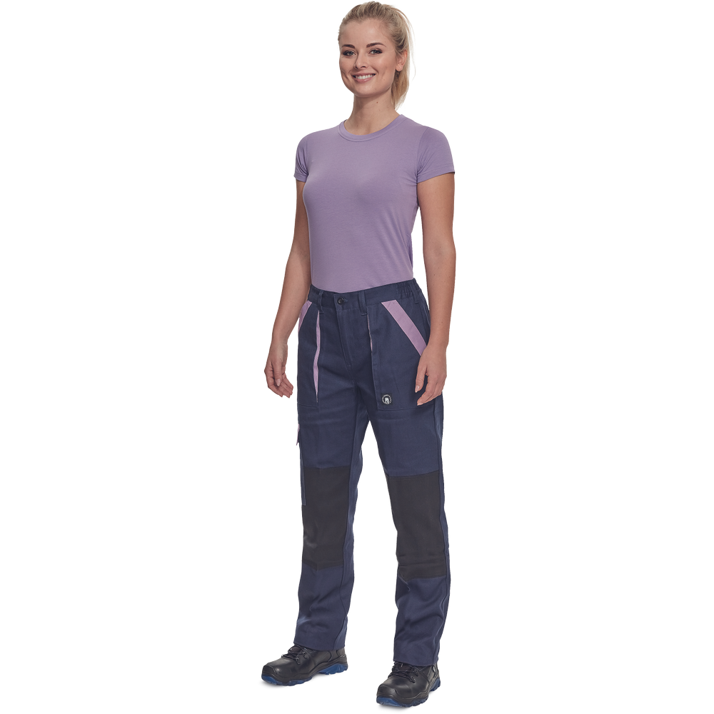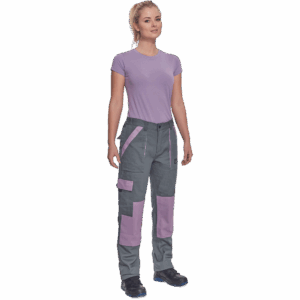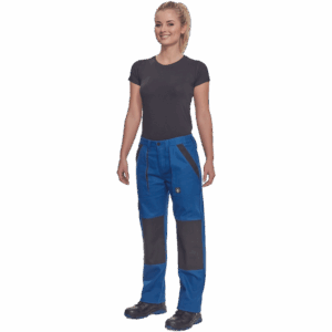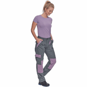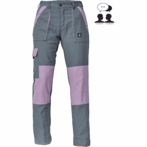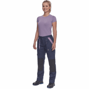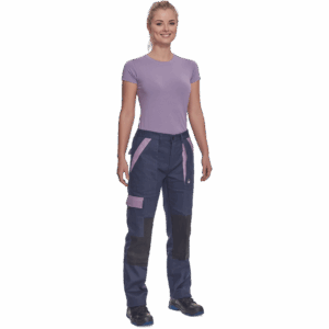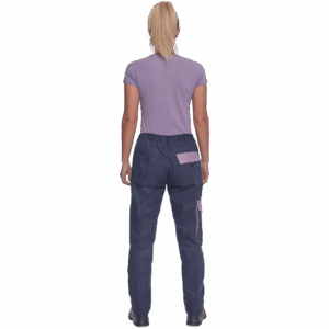 – ženske delovne hlače z elastičnim pasom – 2 stranska žepa, 1 žep na stegnu, 2 zadnja žepa – ojačani deli kolen – podaljšana dolžina noge