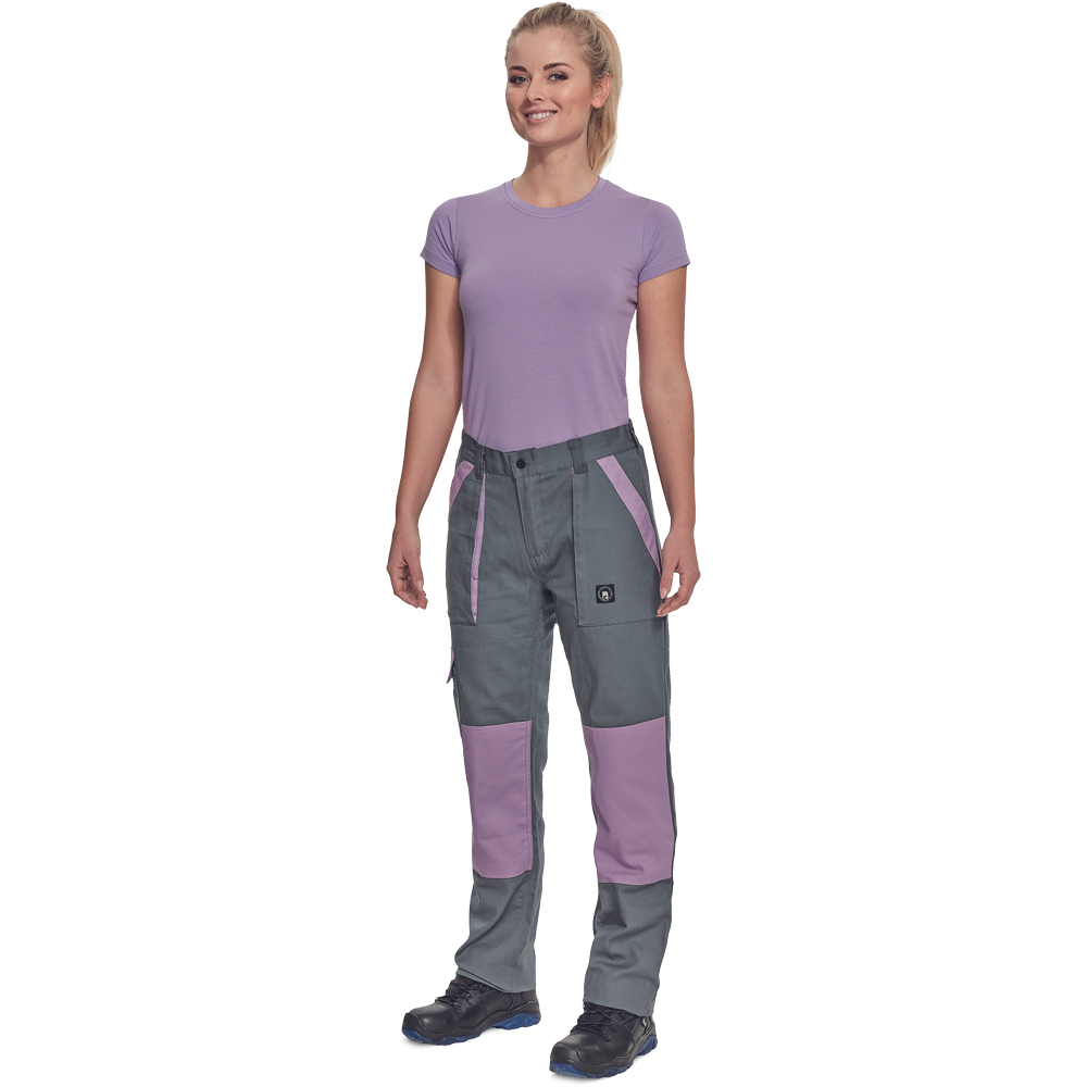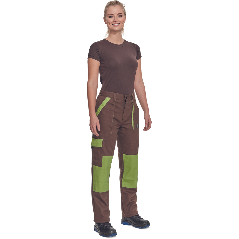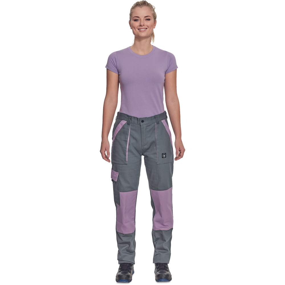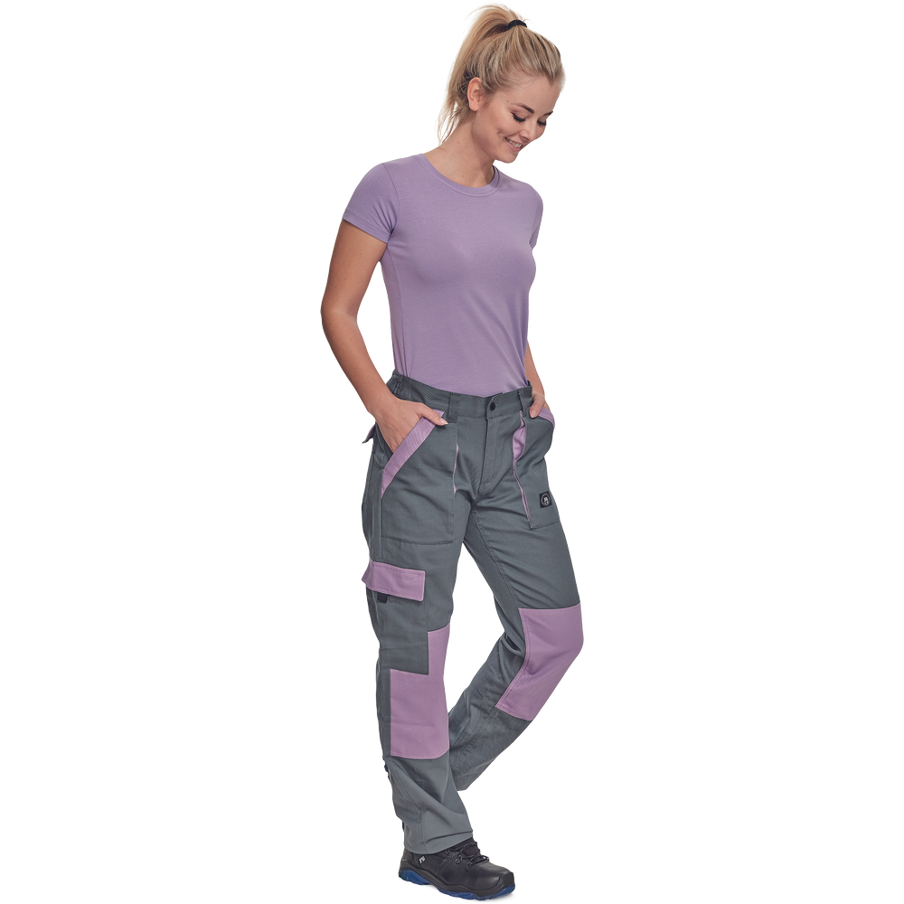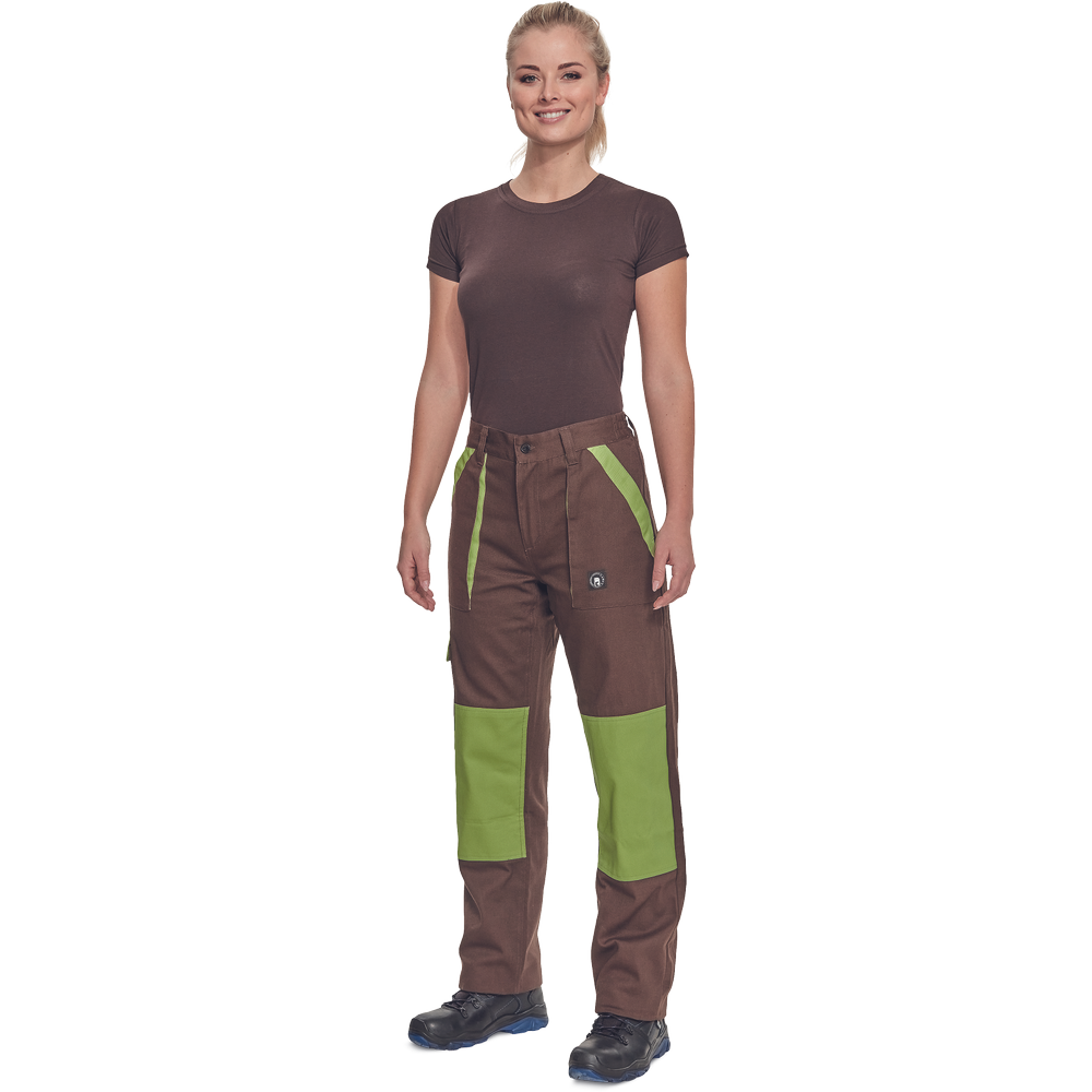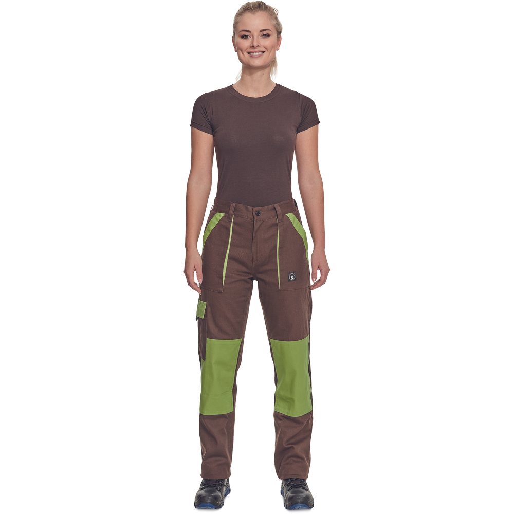 – ženske delovne hlače z elastičnim pasom – 2 stranska žepa, 1 žep na stegnu, 2 zadnja žepa – ojačani deli kolen – podaljšana dolžina noge