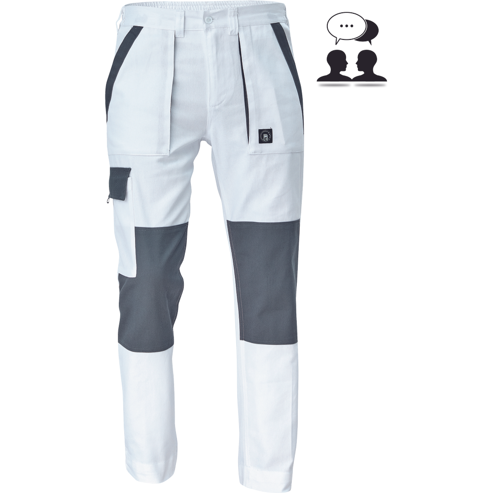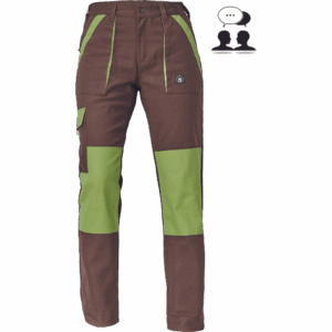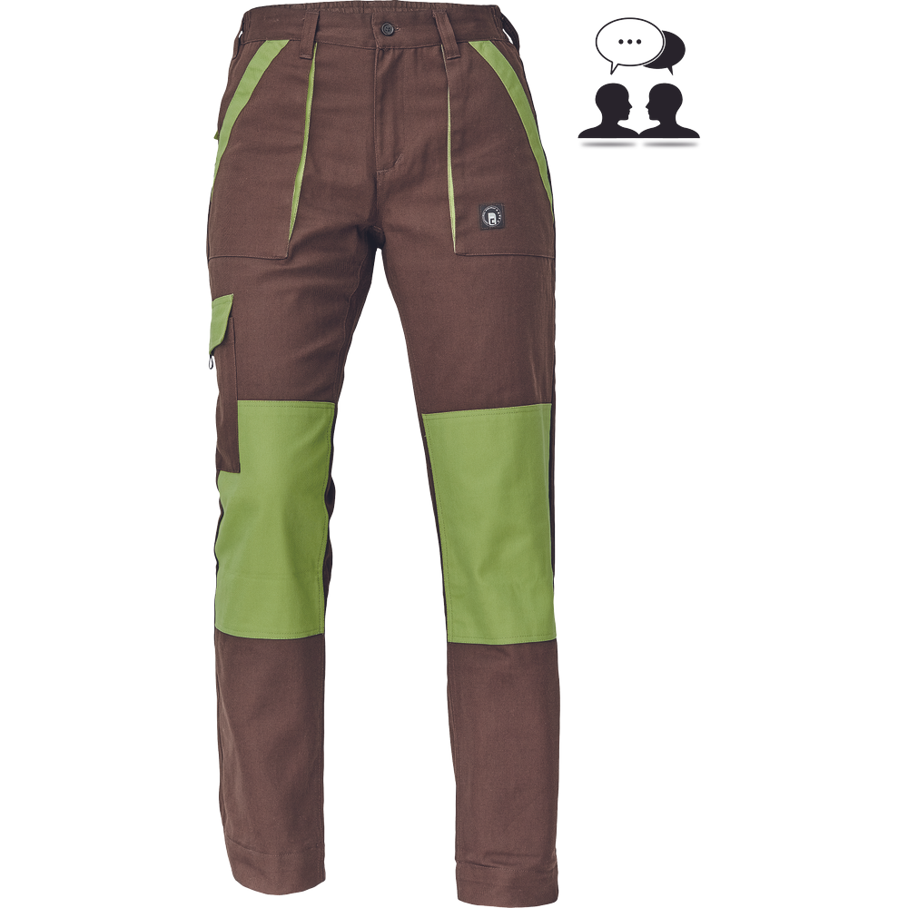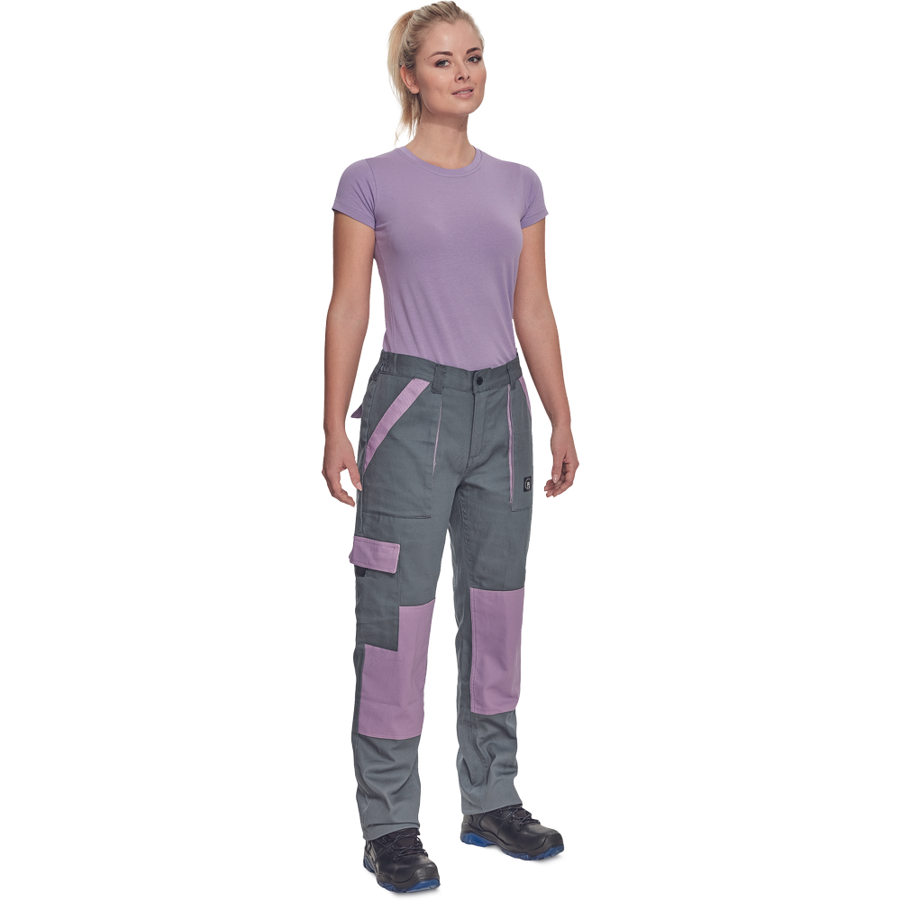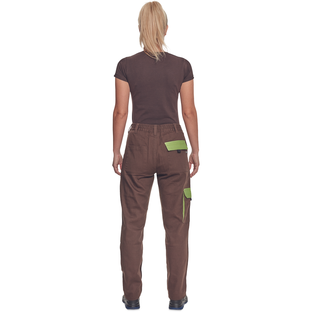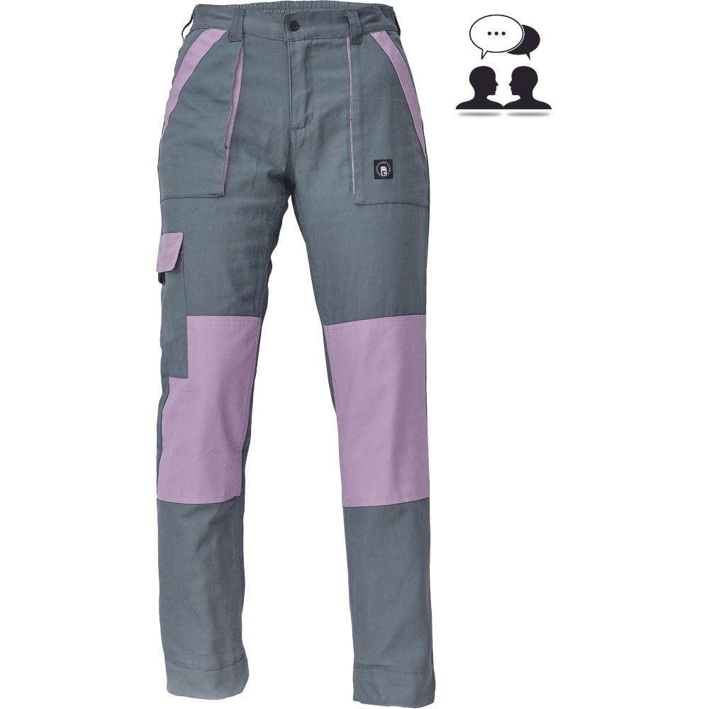 – ženske delovne hlače z elastičnim pasom – 2 stranska žepa, 1 žep na stegnu, 2 zadnja žepa – ojačani deli kolen – podaljšana dolžina noge