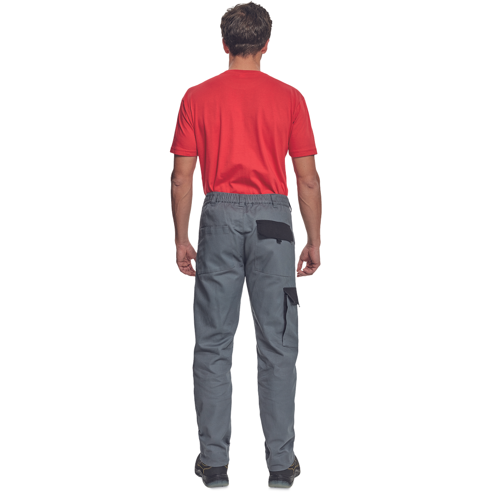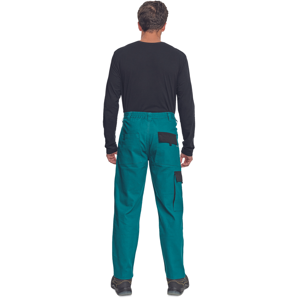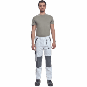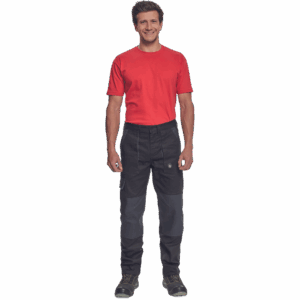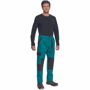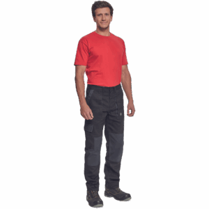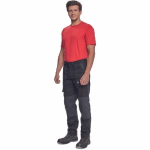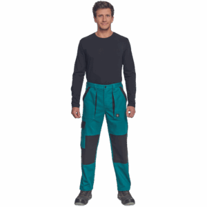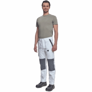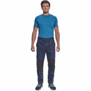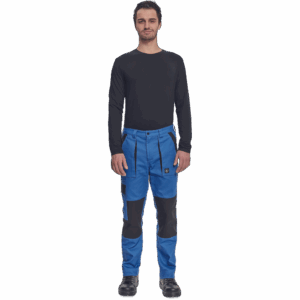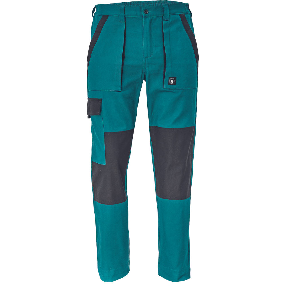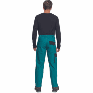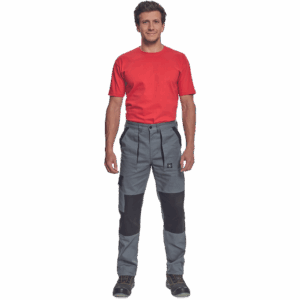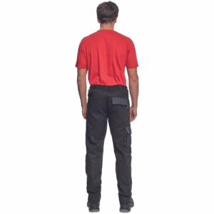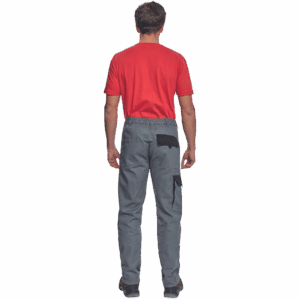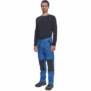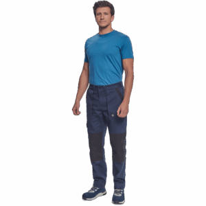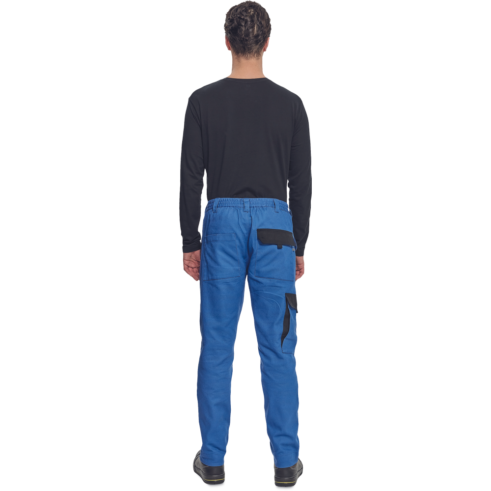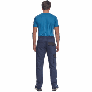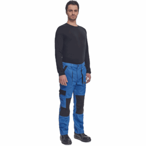 – moške delovne hlače z elastičnim pasom – 2 stranska žepa – 1 žep na stegnu – 2 zadnja žepa – ojačani deli kolen – podaljšana dolžina noge