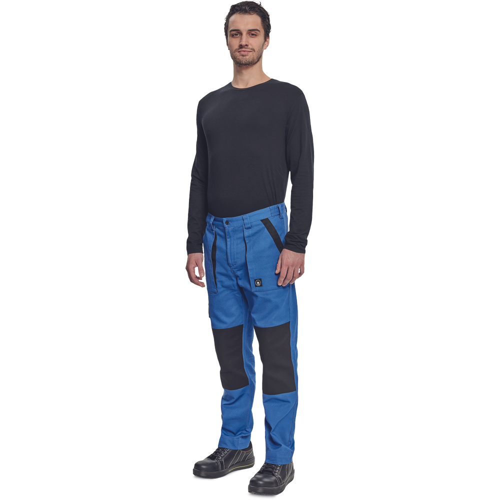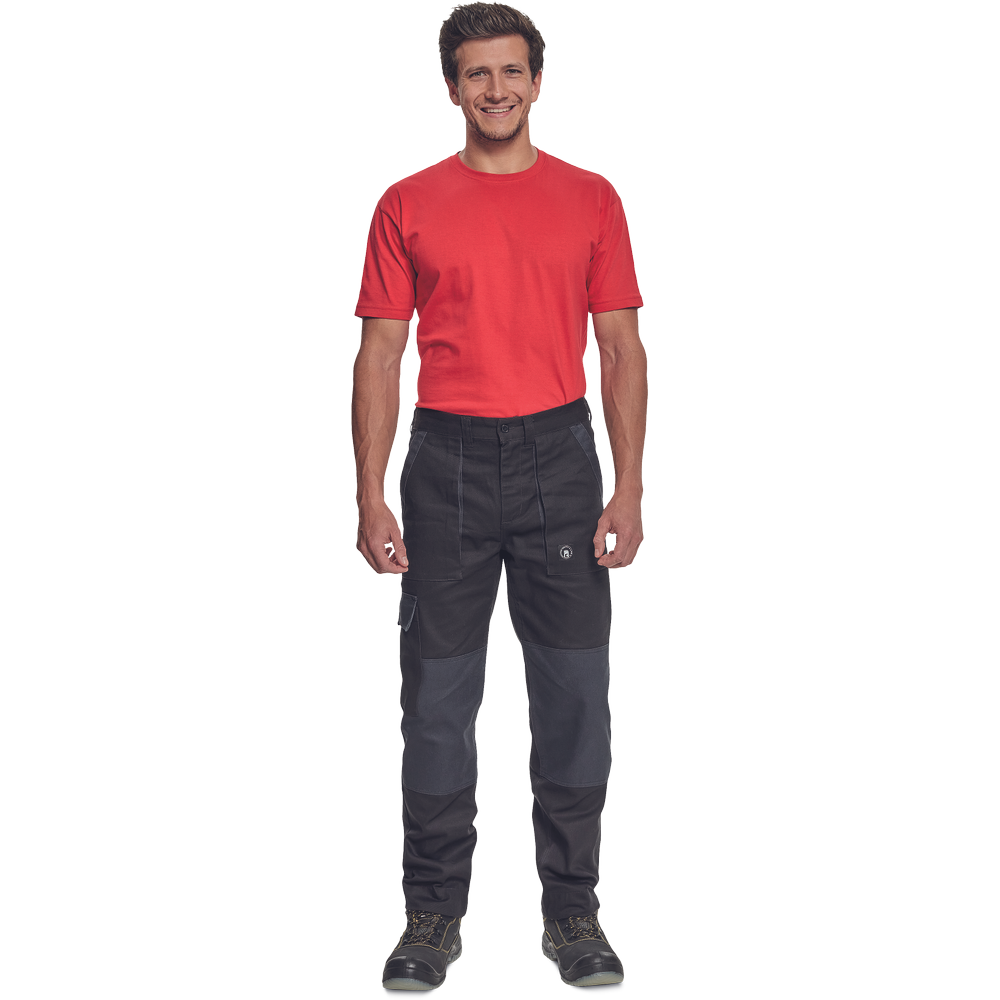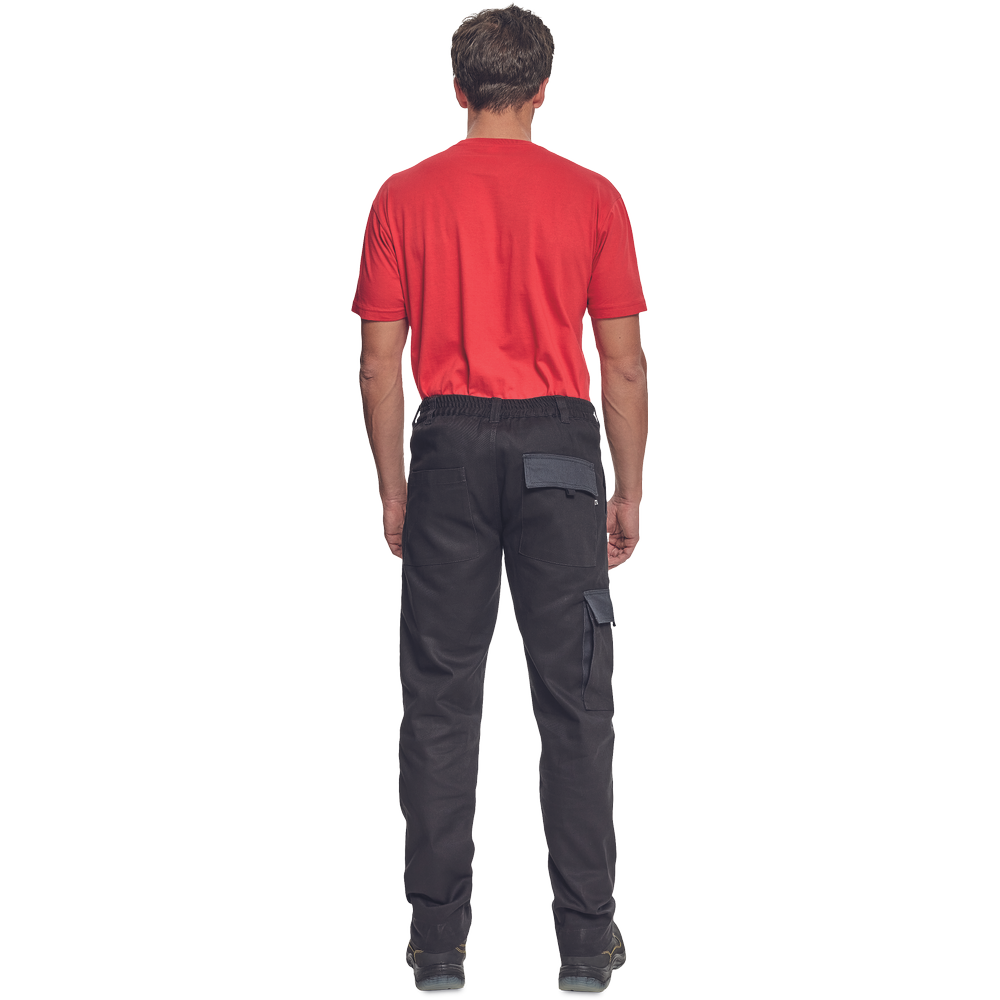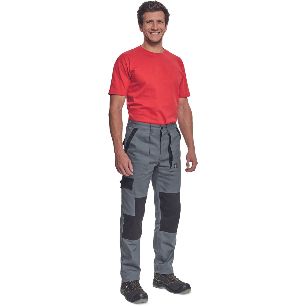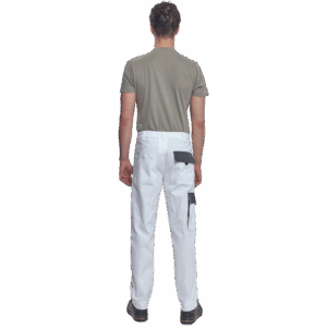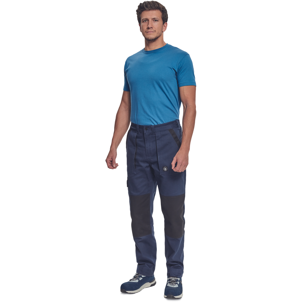 – moške delovne hlače z elastičnim pasom – 2 stranska žepa – 1 žep na stegnu – 2 zadnja žepa – ojačani deli kolen – podaljšana dolžina noge