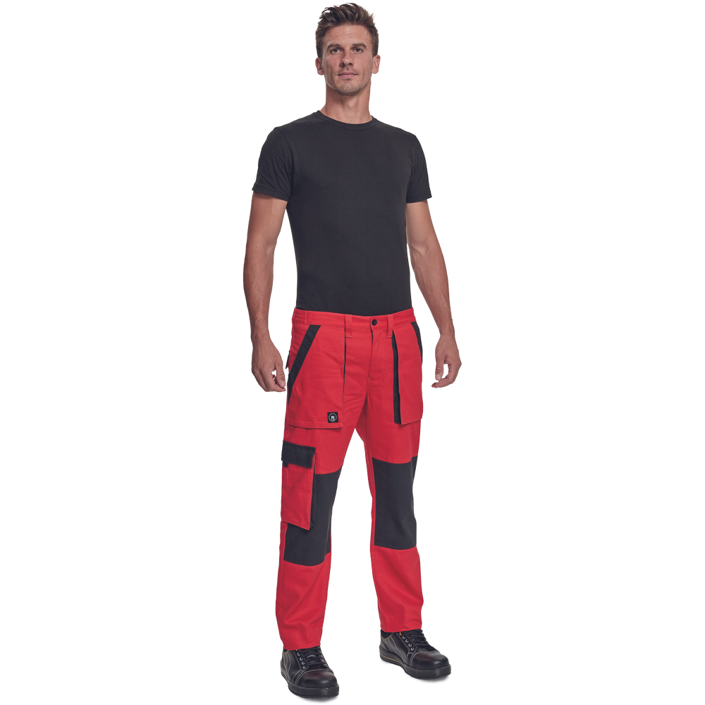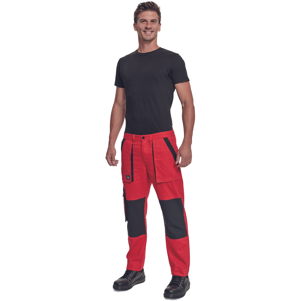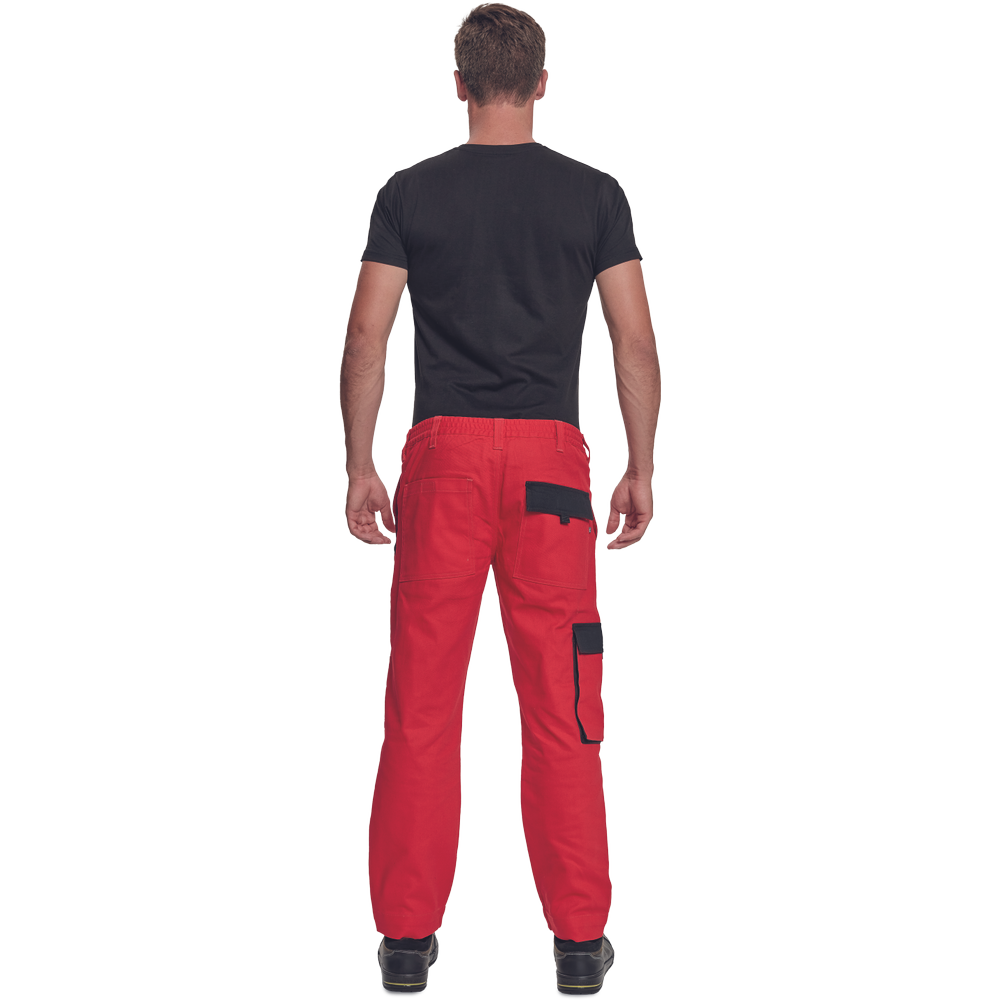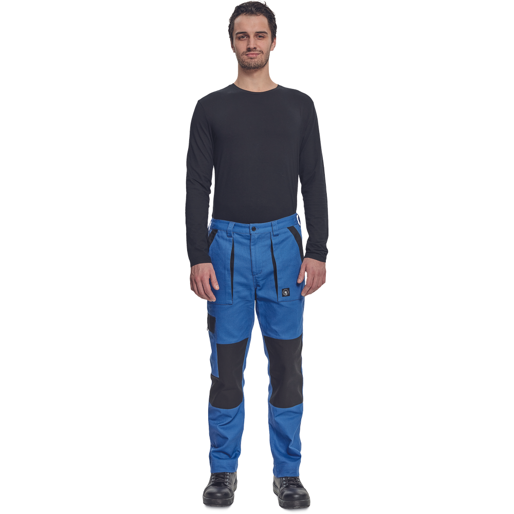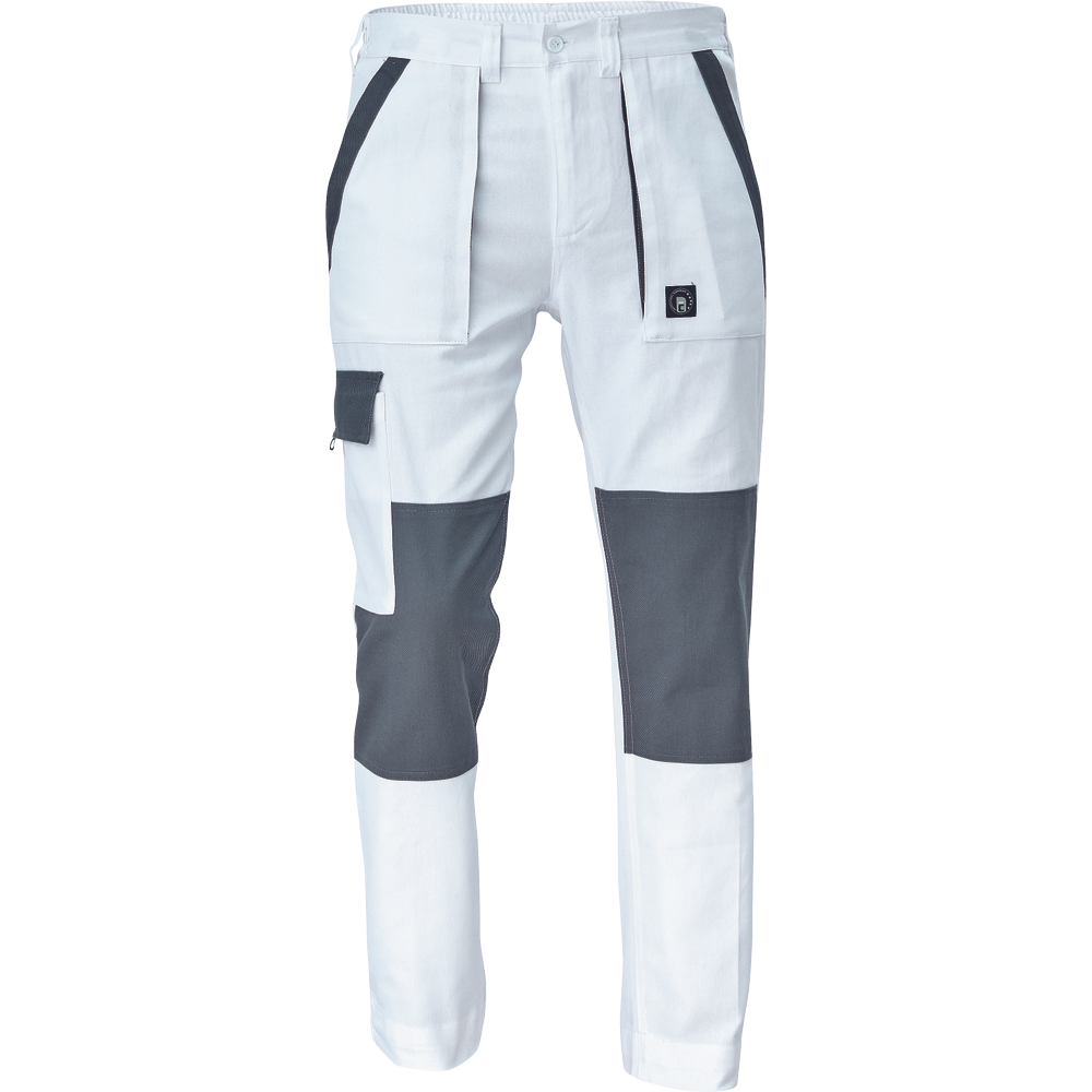 – moške delovne hlače z elastičnim pasom – 2 stranska žepa – 1 žep na stegnu – 2 zadnja žepa – ojačani deli kolen – podaljšana dolžina noge