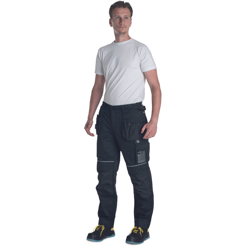 – moške delovne hlače z elastičnim pasom – 2 večnamenska žepa – ojačitev Oxford 600D na kolenih z možnostjo vstavitve kolenskih blazinic – nastavljiva dolžina noge