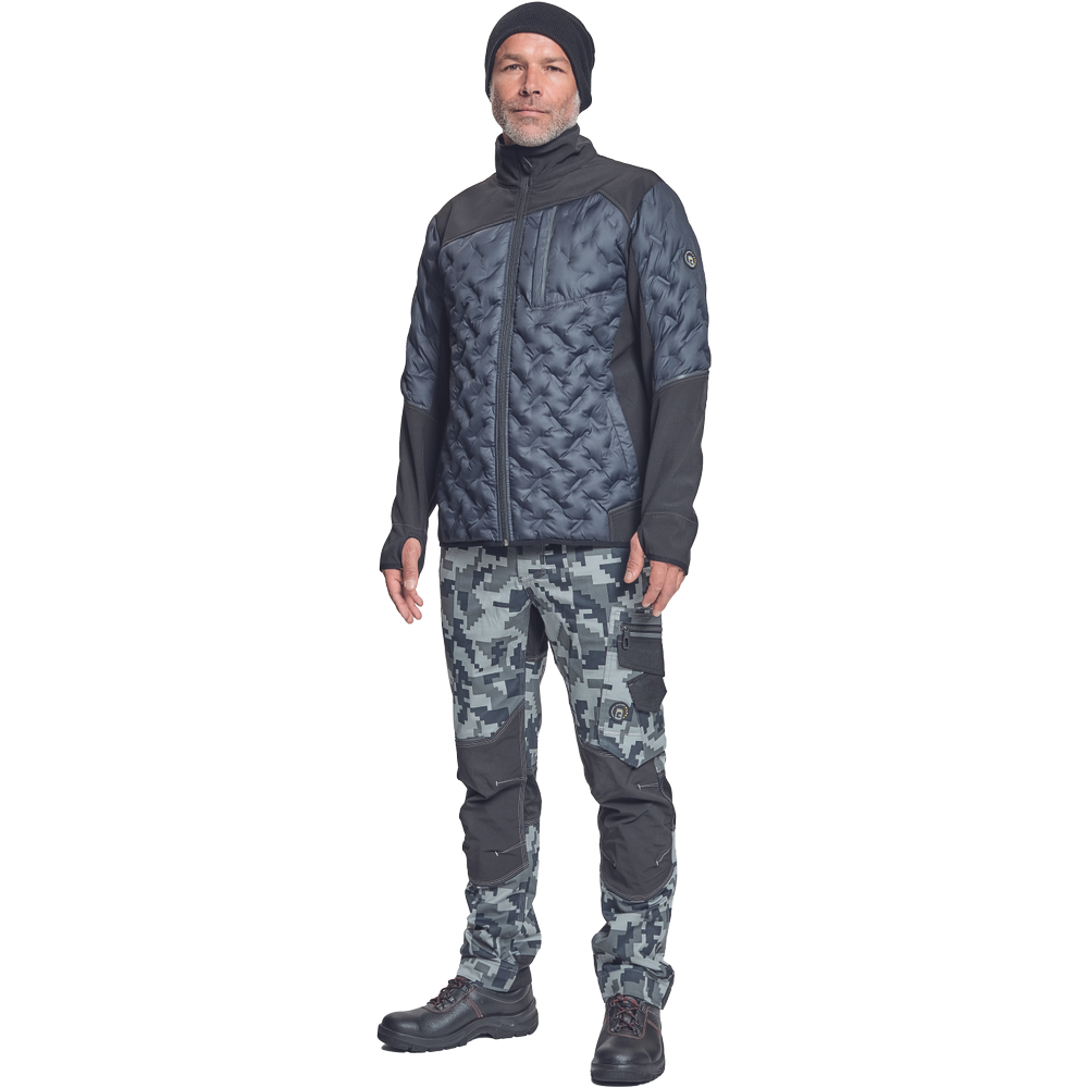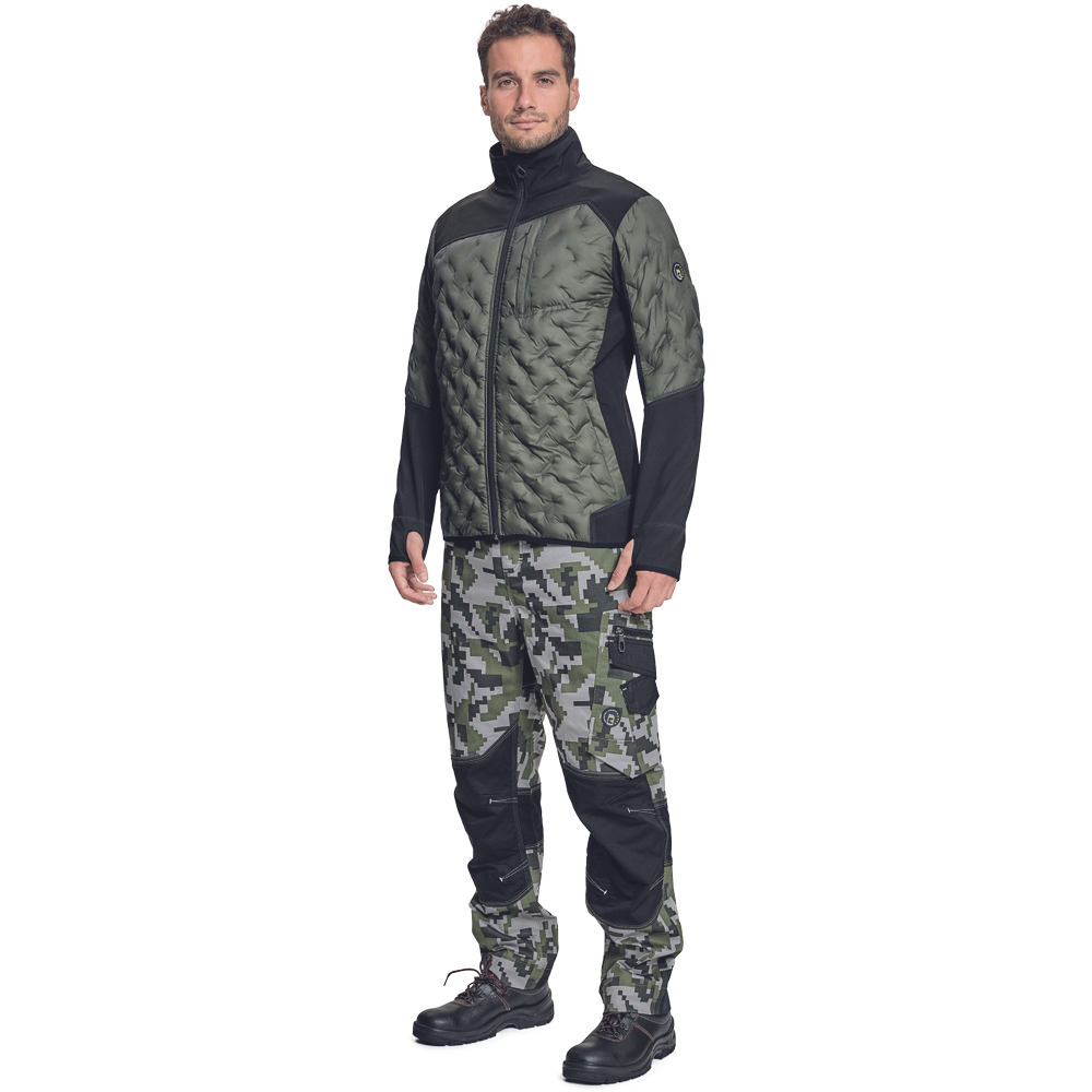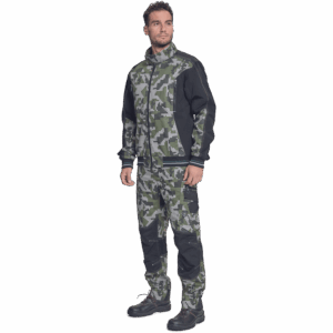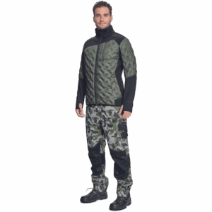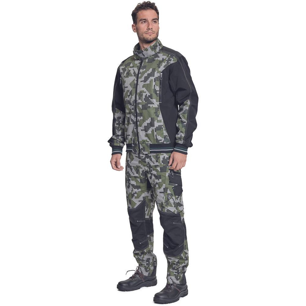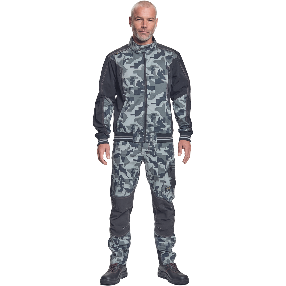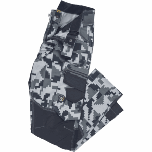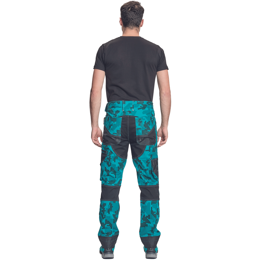 – moške delovne hlače z elastičnim pasom – elastičen inovativen material TRIFIBETEX® s trendovskim kamuflažnim potiskom – trpežen trojni šiv na nogah in mednožju – ojačitve CORDURA® na kolenih – prostorni večnamenski sprednji žepi s trakovi za orodje – odsevne podrobnosti ton v tonu – podaljšana dolžina nog