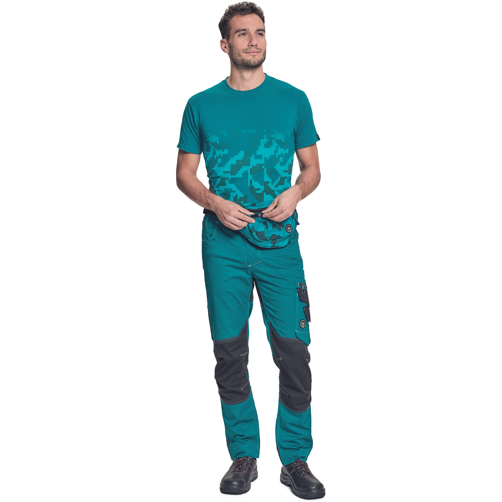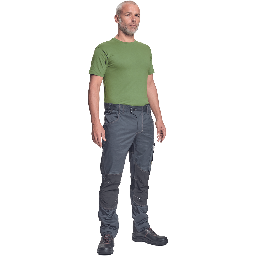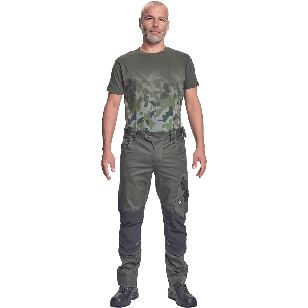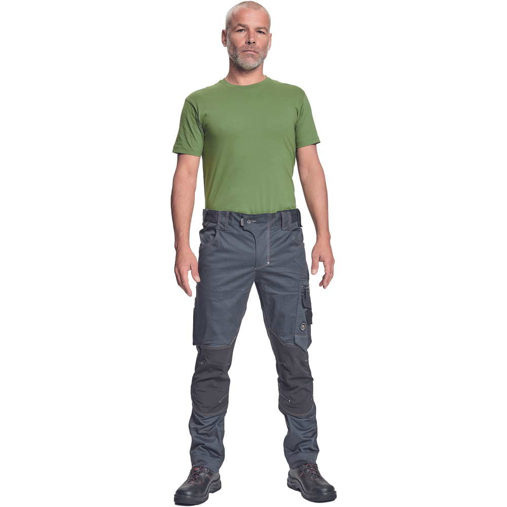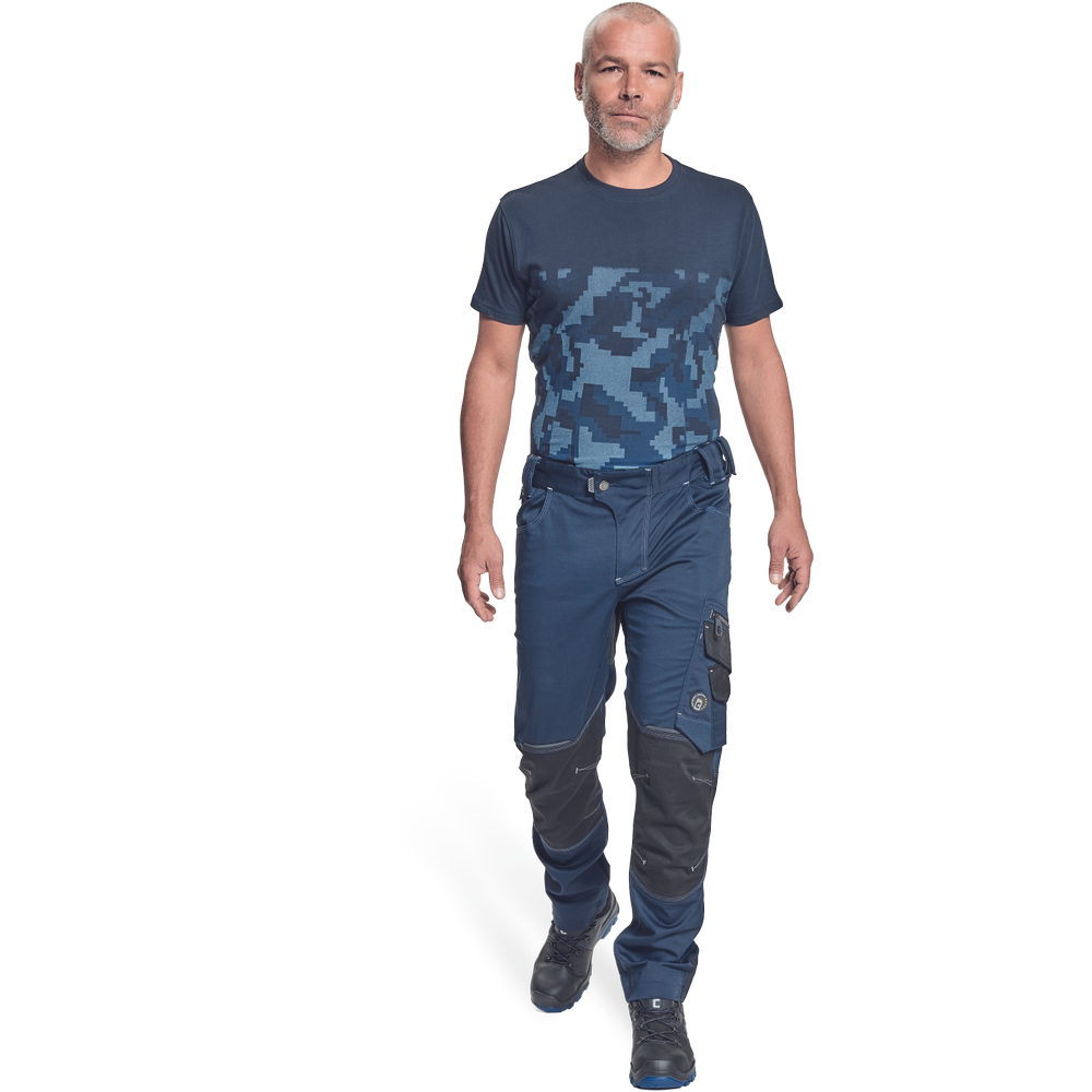 – moške delovne hlače z elastičnim pasom – elastičen inovativen material TRIFIBETEX® – trpežen trojni šiv na nogah in mednožju – ojačitve CORDURA® na kolenih – prostorni večnamenski sprednji žepi s trakovi za orodje – odsevne podrobnosti ton v tonu – podaljšana dolžina nog