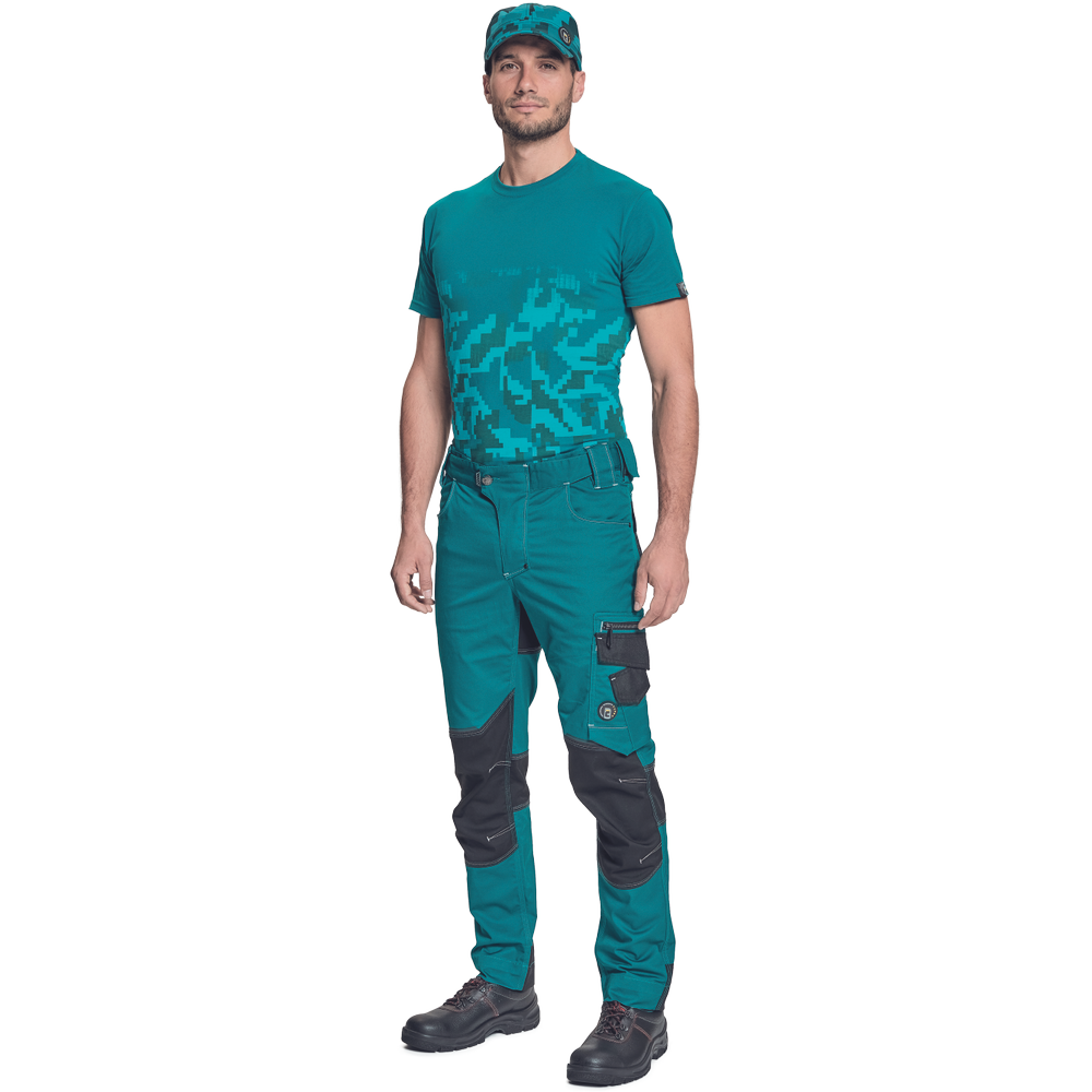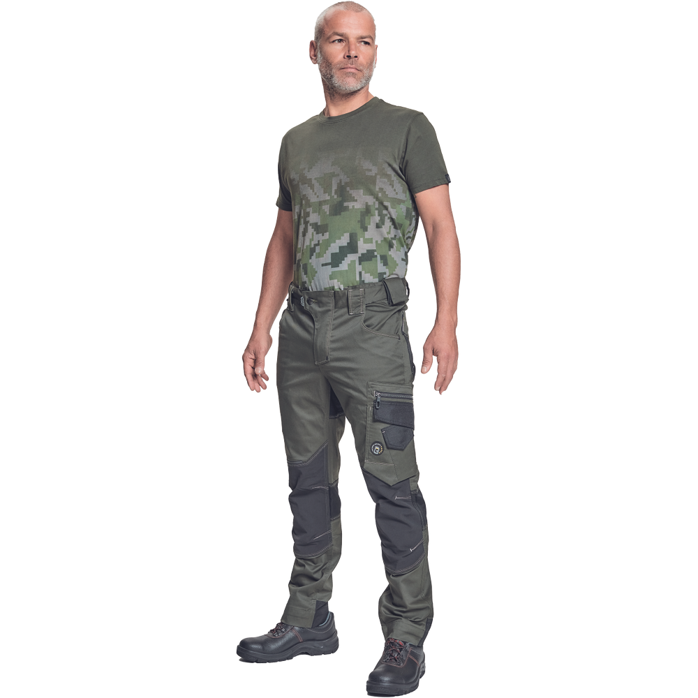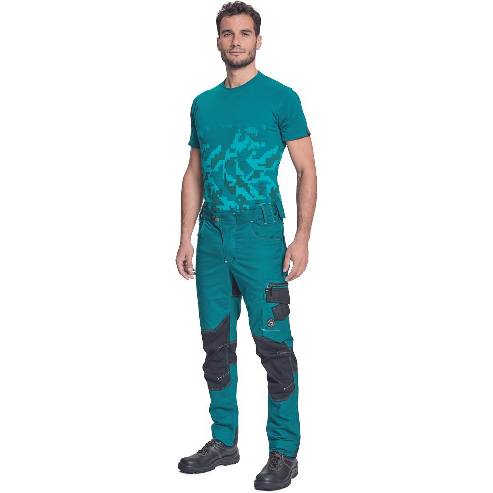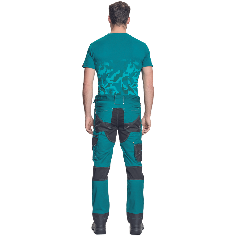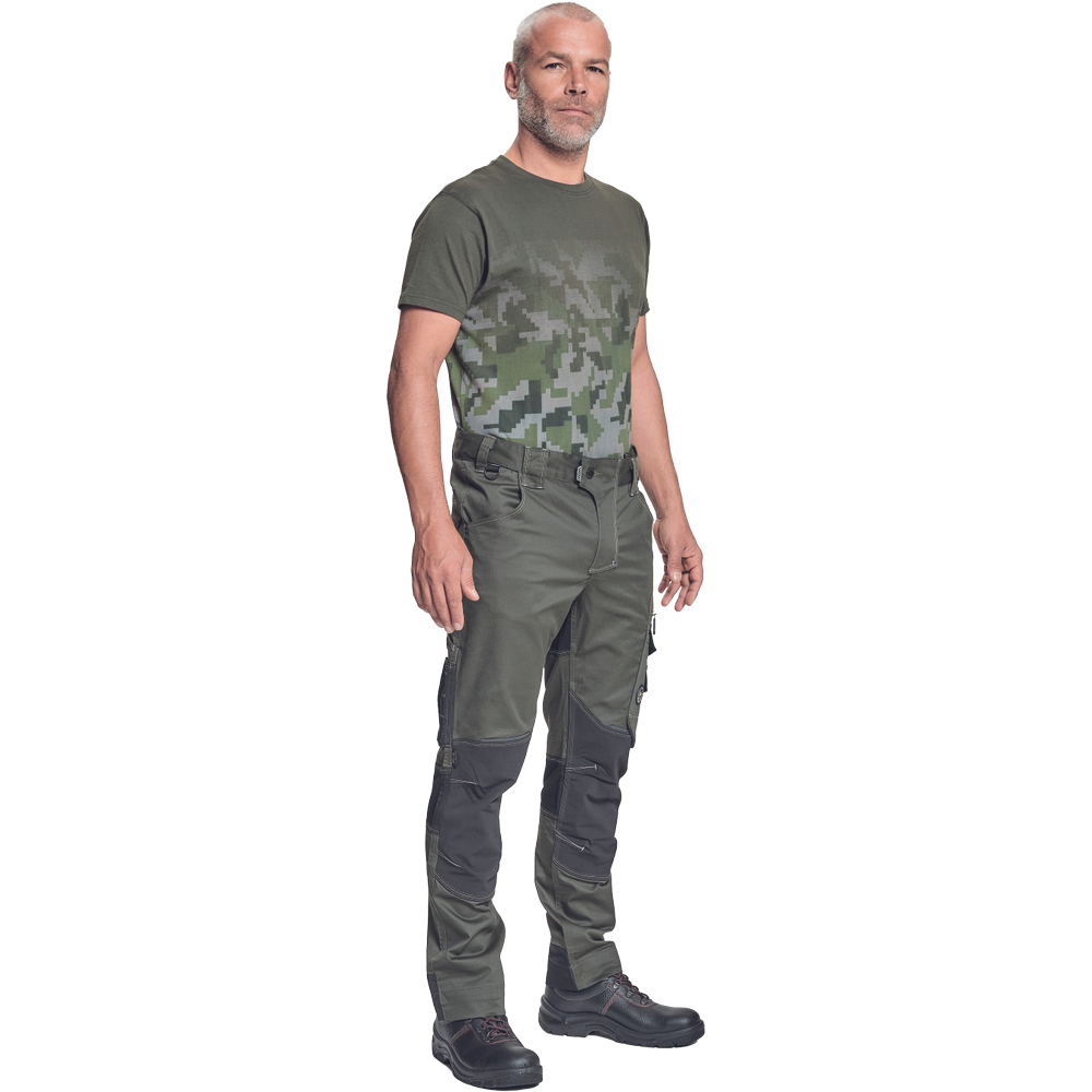 – moške delovne hlače z elastičnim pasom – elastičen inovativen material TRIFIBETEX® – trpežen trojni šiv na nogah in mednožju – ojačitve CORDURA® na kolenih – prostorni večnamenski sprednji žepi s trakovi za orodje – odsevne podrobnosti ton v tonu – podaljšana dolžina nog