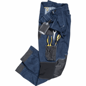 – moške delovne hlače – predhodno oprana tkanina Denim v kombinaciji z materialoma TRIFIBETEXPRO® in TRIFIBETEX® – trpežen trojni šiv na nogah in mednožju, ojačani kolenski deli CORDURA® in TRIFIBETEX® – prostorni večnamenski sprednji žepi s trakovi za orodje – podaljšana dolžina nog