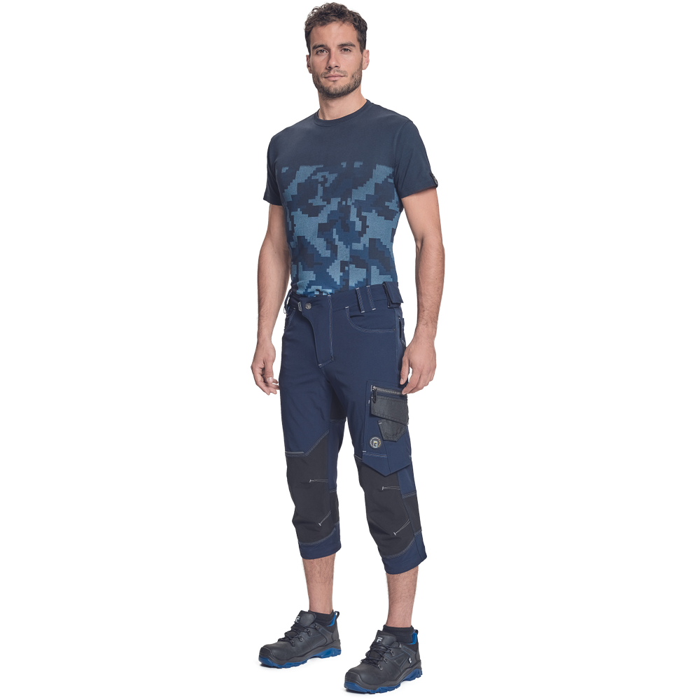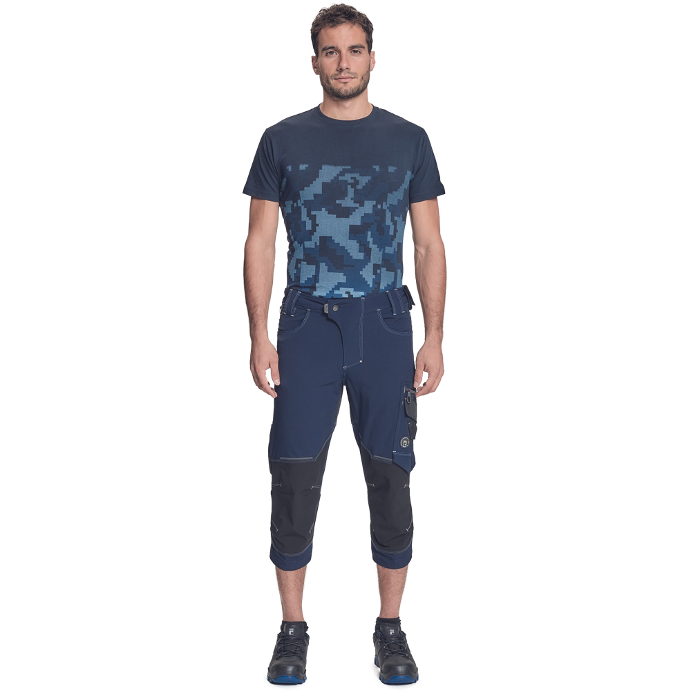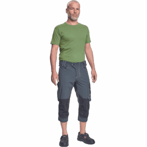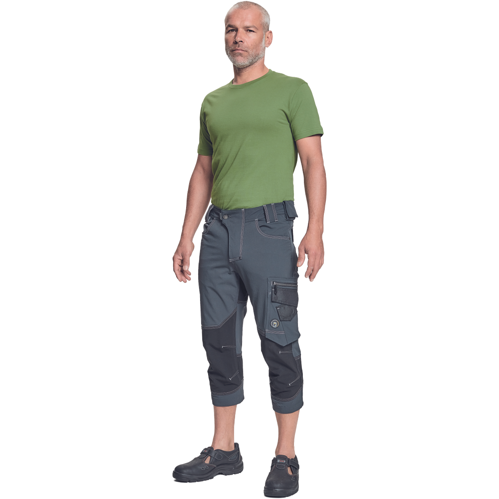– moške delovne 3/4 hlače z elastičnim pasom ” elastičen inovativen material TRIFIBETEX PRO® ” trpežen trojni šiv na nogah in mednožju ” ojačitve CORDURA na kolenih ” prostorni večnamenski sprednji žepi s trakovi za orodje ” odsevne podrobnosti ton v tonu