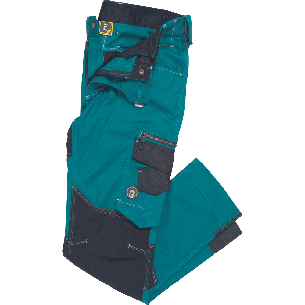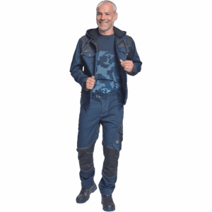 – moške delovne hlače z elastičnim pasom – elastičen inovativen material TRIFIBETEX PRO® – trpežen trojni šiv na nogah in mednožju – ojačitev CORDURA® na kolenih – prostorni večnamenski sprednji žepi s trakovi za orodje – odsevne podrobnosti ton v tonu, podaljšana dolžina nog