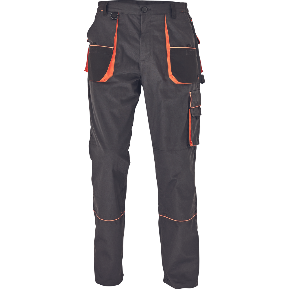 – moške delovne hlače – 2 sprednja žepa – 2 zadnja žepa – 1 žep na stegnu – ojačano koleno z možnostjo vstavitve kolenskih naramnic – elastičen pas – odsevni elementi