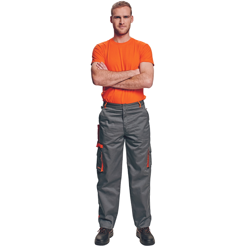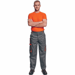 – udobno krojene moške delovne hlače – elastičen pas – 6 funkcionalnih žepov – nastavljiva širina spodnjega dela noge s trakom velcro