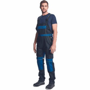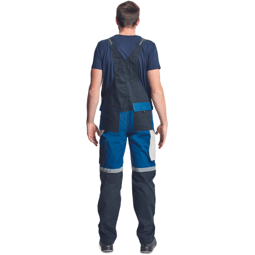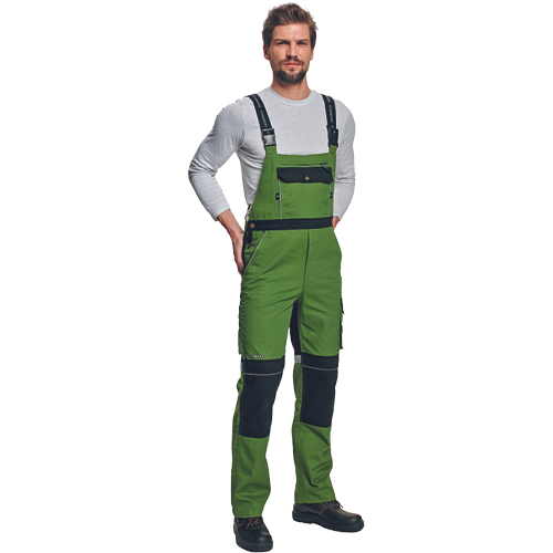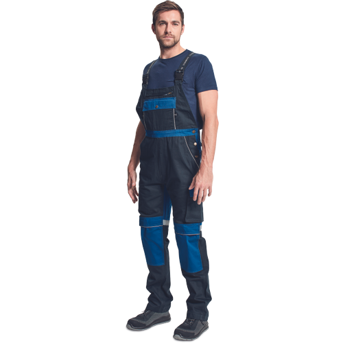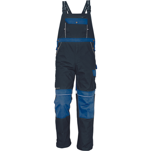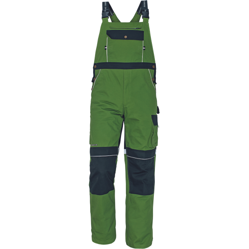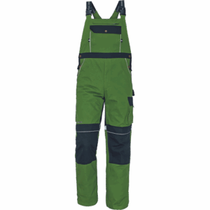 – zelo trpežne moške hlače z naramnicami s kovinsko zadrgo in popperji, elastičen pas – 6 funkcionalnih žepov – ojačani deli kolen z žepi za vstavljanje kolenskih blazinic – odsevni elementi