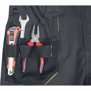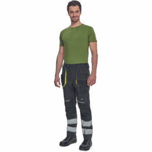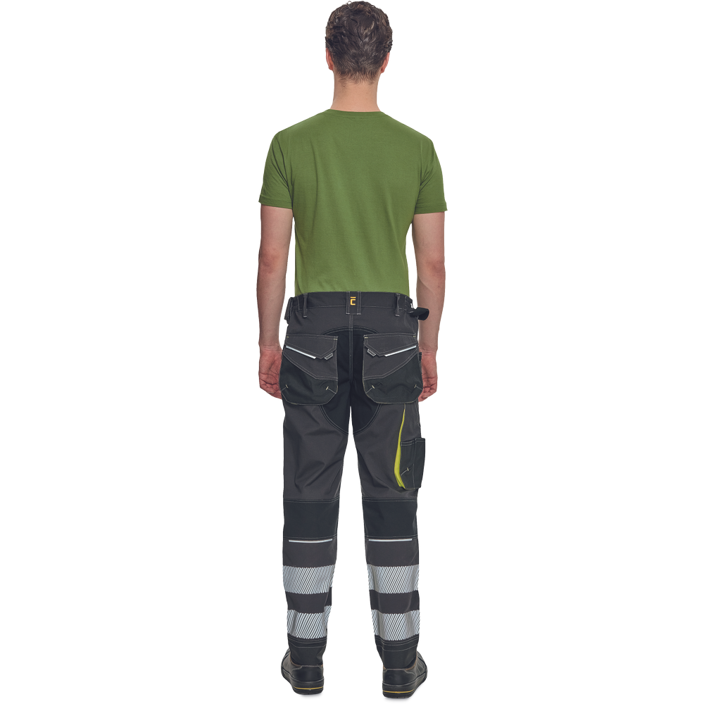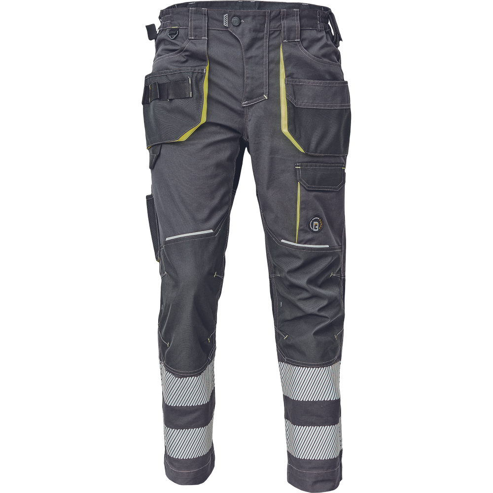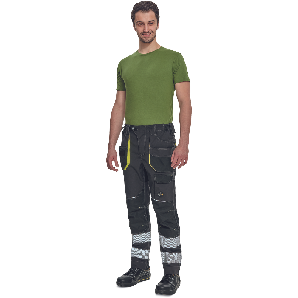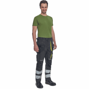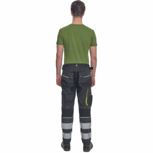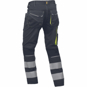 – moške delovne hlače z elastičnim pasom in večnamenskimi žepi – ojačitev kolenskih žepov Oxford 600D za vstavljanje kolenskih blazinic – trpežni trojni šivi na nogah in mednožju – odsevne cevi, spodnji del noge s 7 cm odsevnimi potiskanimi in segmentiranimi črtami – možnost podaljšanja dolžine nog