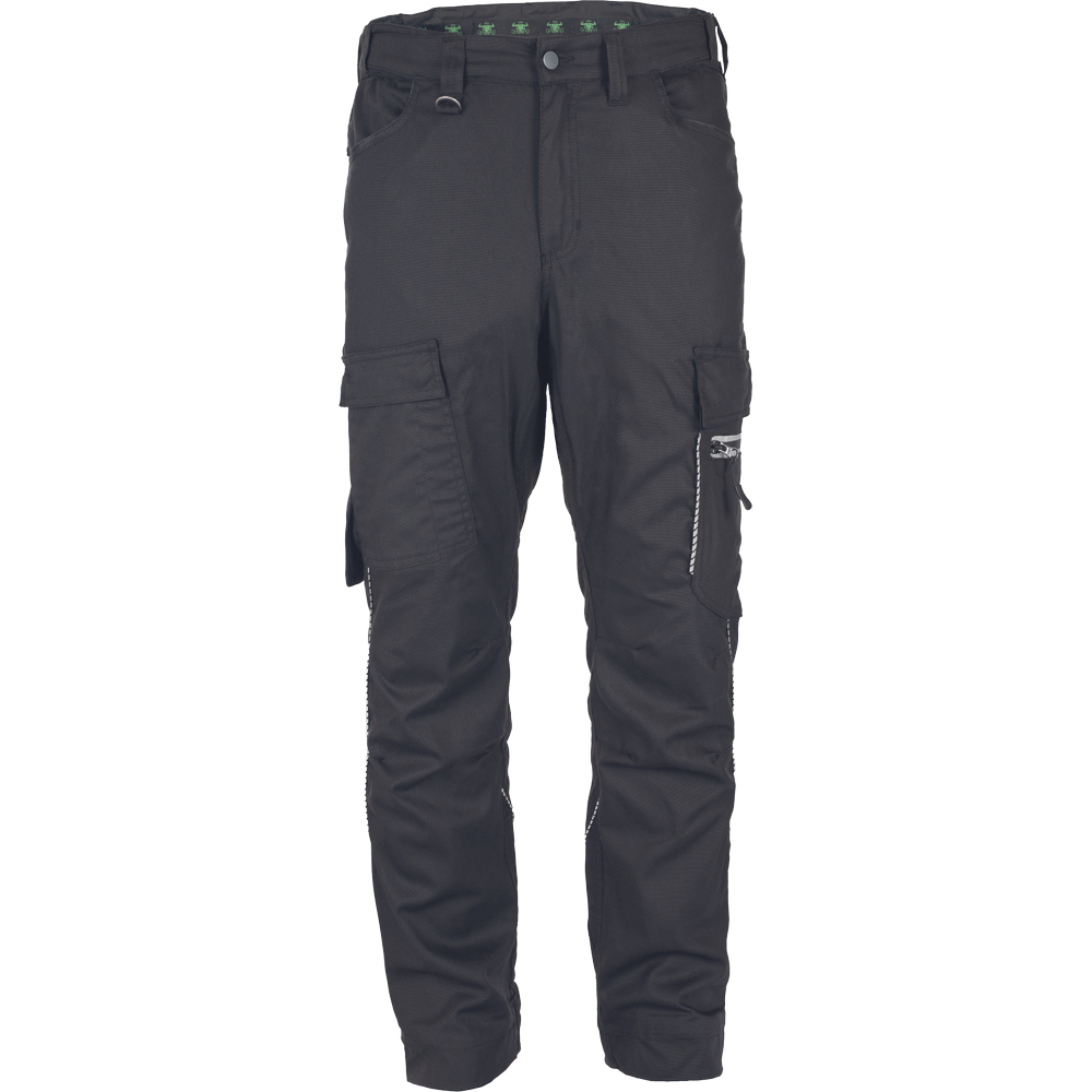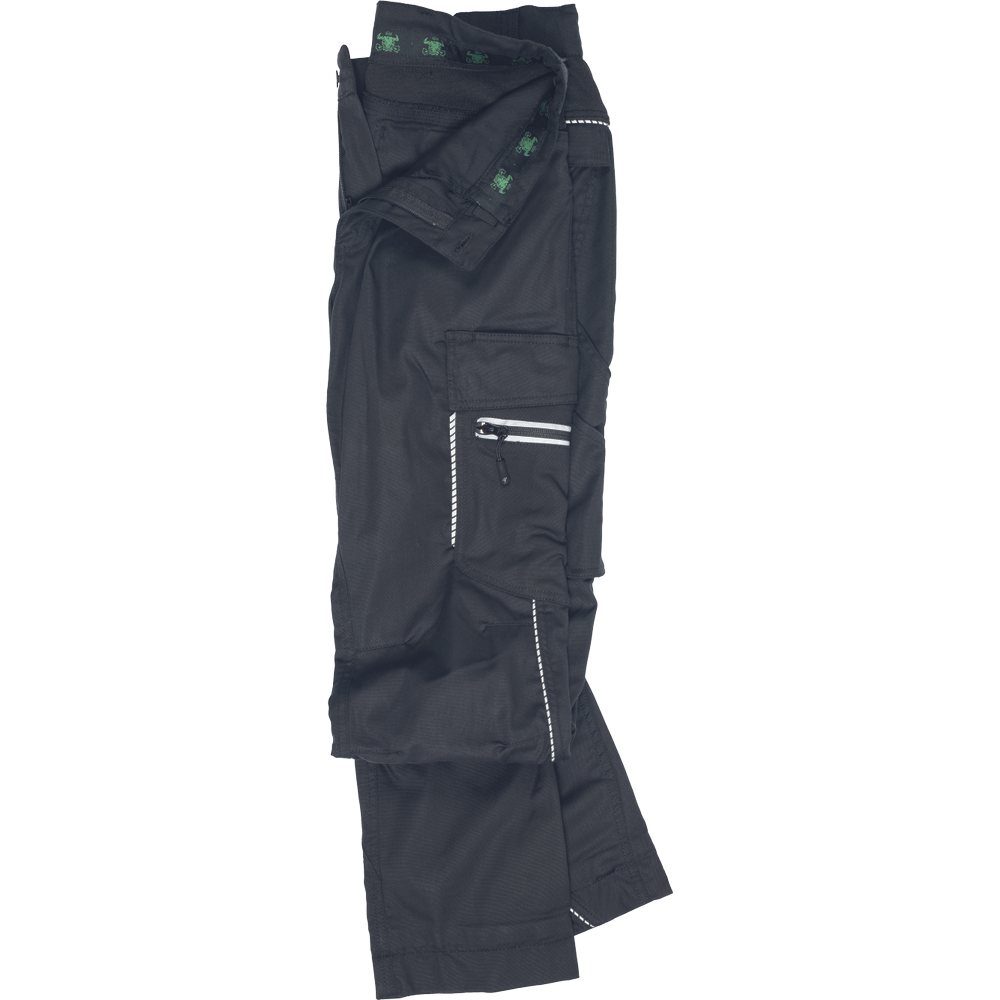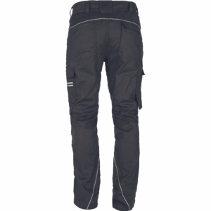 – moške hlače z elastičnim raztegljivim pasom – raztegljiv vložek na jermenu na hrbtni strani in tudi v razkoraku hlač – 2 kovinska obročka (brez niklja) na pasu – 2 žepa za vstavljanje – 2 zgornja stegenska žepa z zavihkom, dodatno na levi strani z žepom z zadrgo (refleksna zadrga) in žepom za vstavljanje zgoraj – večnamenski žep za metrsko palico – 2 žepa na bokih, na desni strani z zavihkom + Velcro zaponka