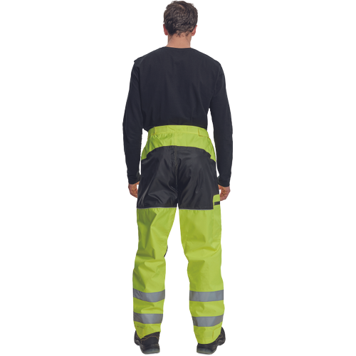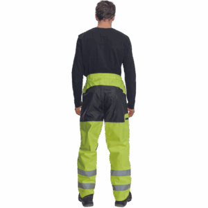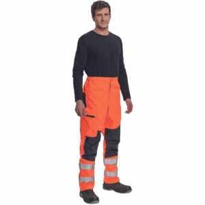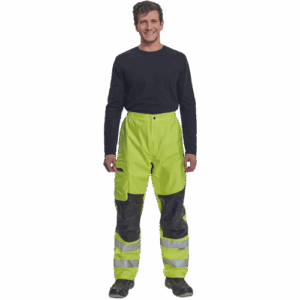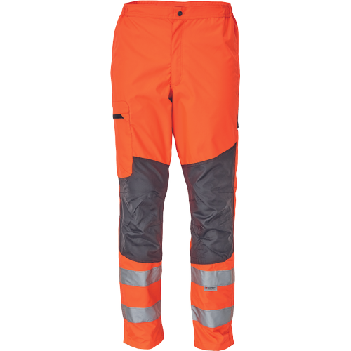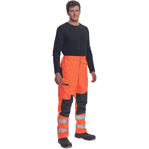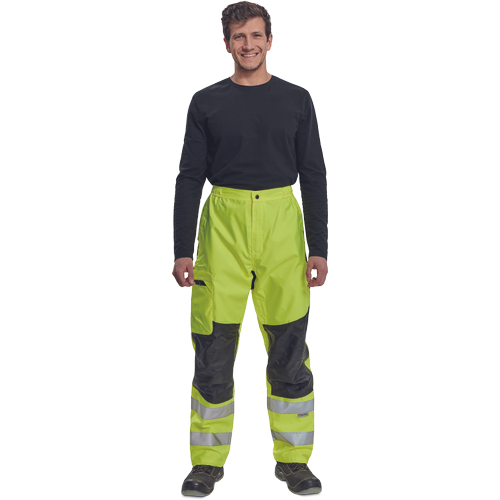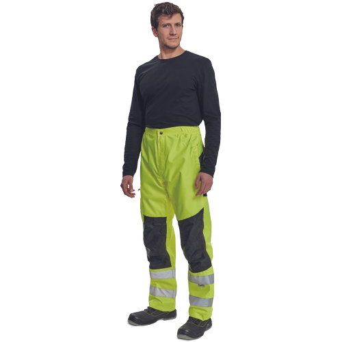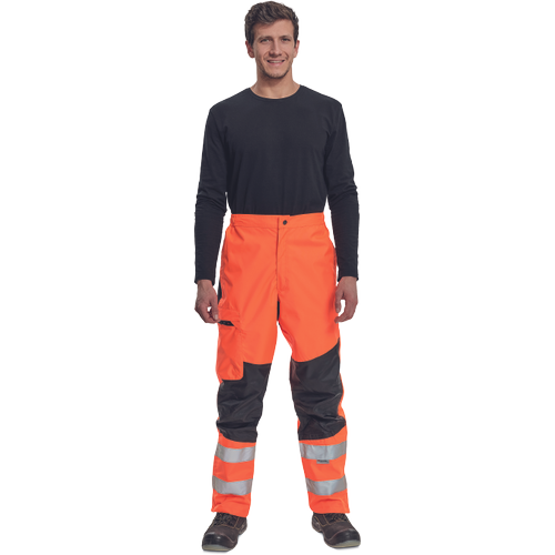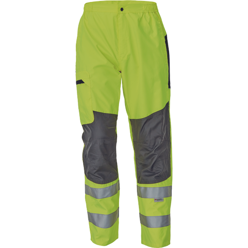 – moške nepremočljive hlače HI-VIS z odsevnimi črtami pod koleni – zatesnjeni šivi, prepustni – nastavljiv pas z velcro – spodnji robovi nog z odprtinami za zadrgo – ojačitev kolen in sedeža