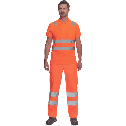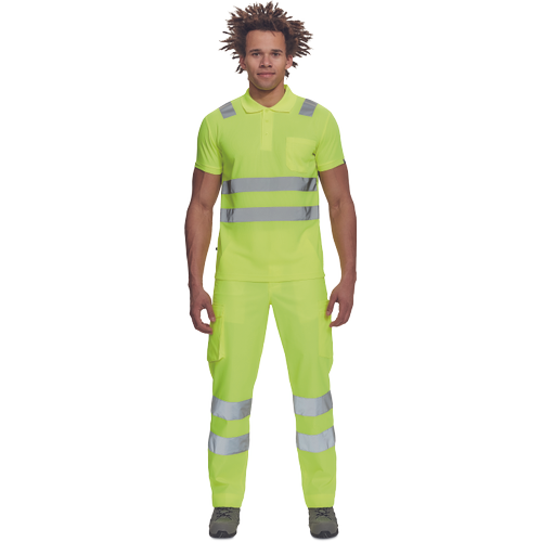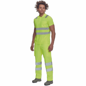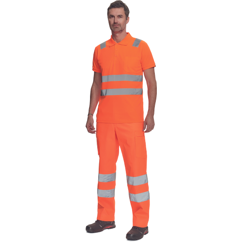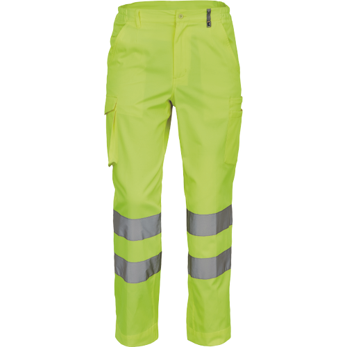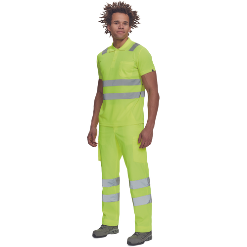 – moške delovne lahke hlače s popolnoma HI-VIS odsevnimi črtami – 2 stranska žepa – 1 žep za kovance – 2 žepa na stegnih – 2 zadnja žepa – elastičen pas na straneh – možnost podaljšanja dolžine nog