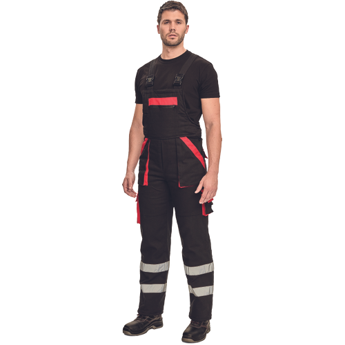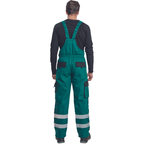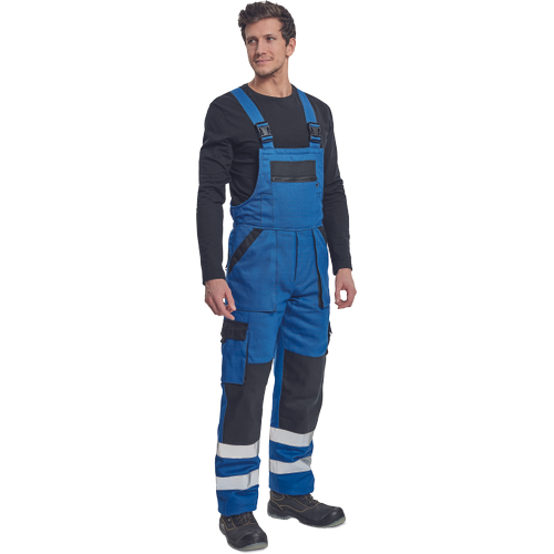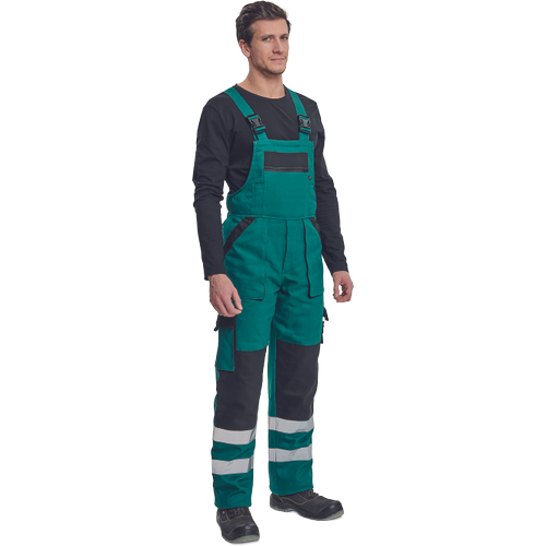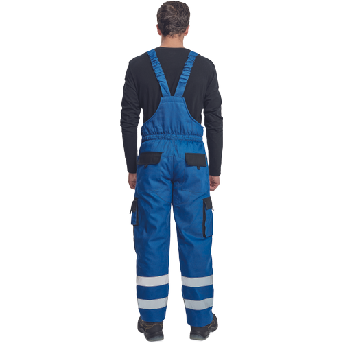 – moške izolirane delovne hlače z naprsnikom – široke naramnice s plastičnimi zaponkami – 2 stranska žepa, 2 žepa na stegnih – 1 velik prsni žep z zadrgo, 2 zadnja žepa – fleksibilne črte okoli spodnjega dela noge “, ojačitev kolenskih delov