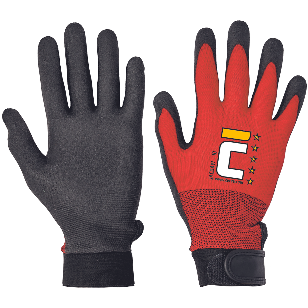 – pletene brezšivne rokavice iz najlona (15GG) – s plastjo HPT PVC na dlani in prstih – elastična manšeta na velcro