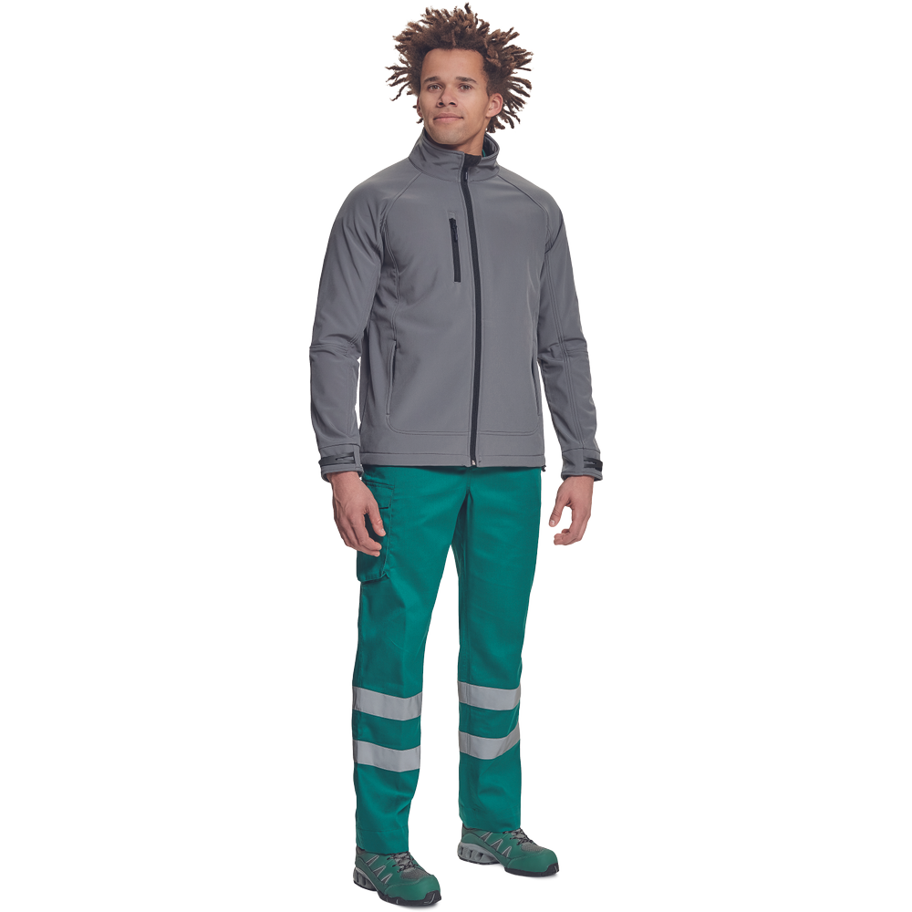 – moška softshell jakna z membrano in flisom v notranjosti – zapiranje na zadrgo – 1 prsni žep na zadrgo, 2 stranska žepa na zadrgo