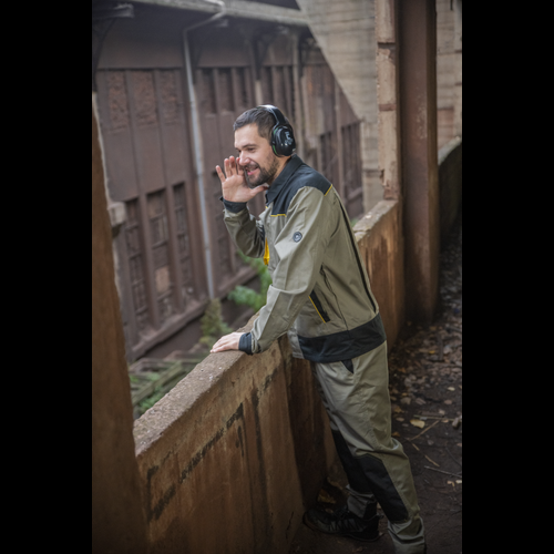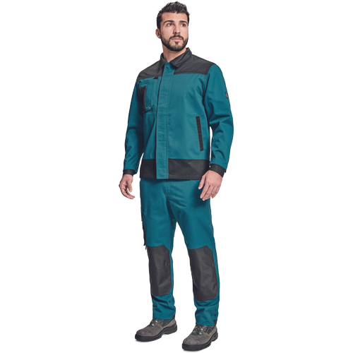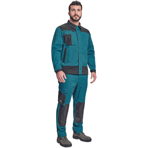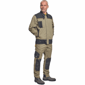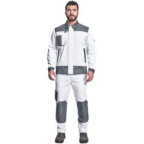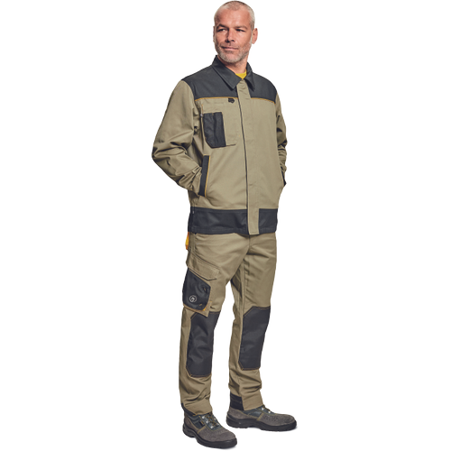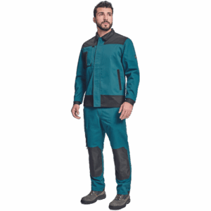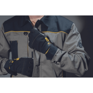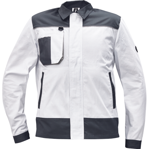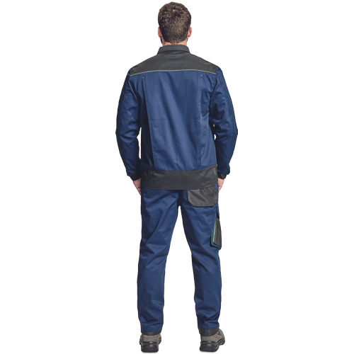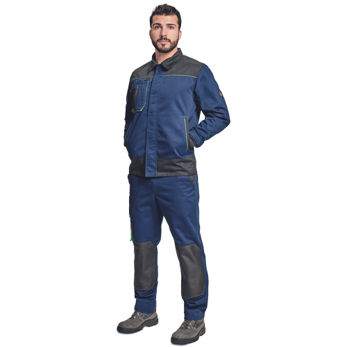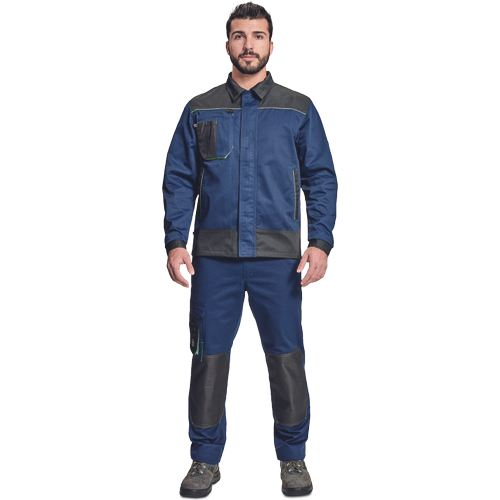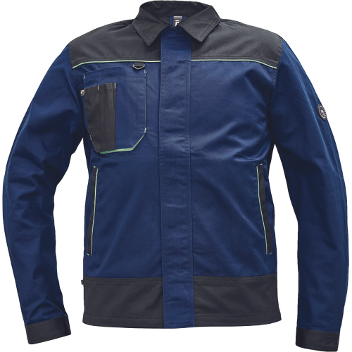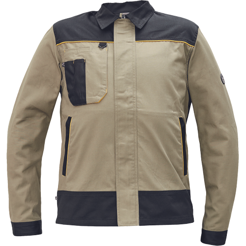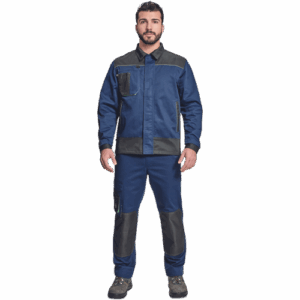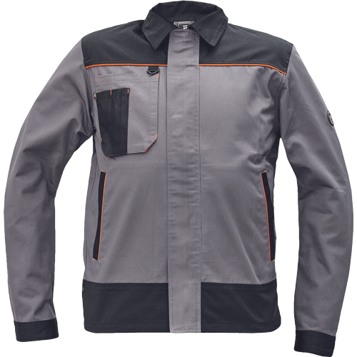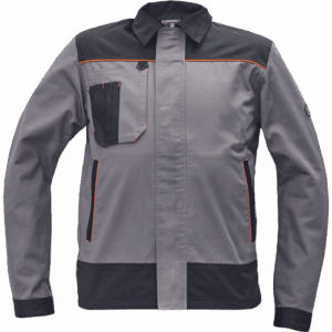 – moška delovna jakna – ojačene rame Oxford 600D – 2 stranska žepa – 1 večnamenski žep na prsih – kontrastne obrobe – velcro zapiranje robov rokavov