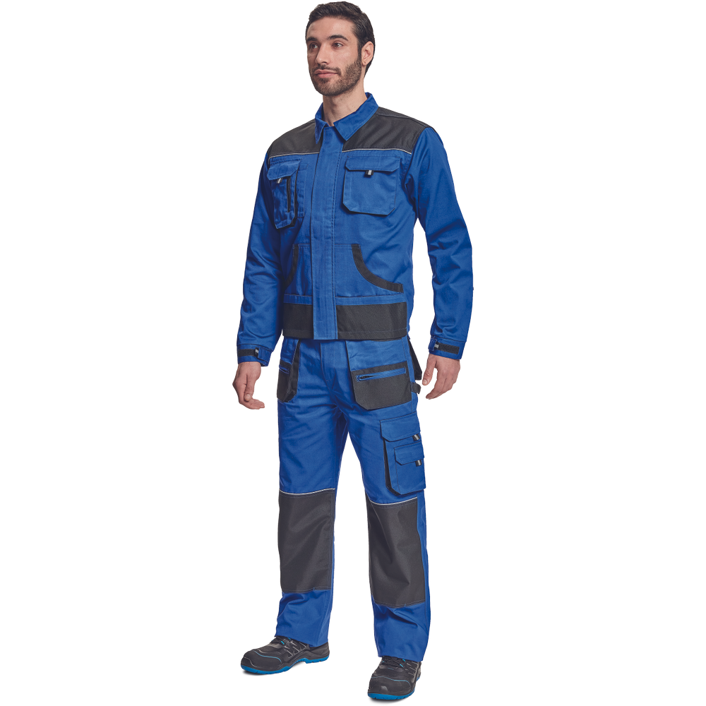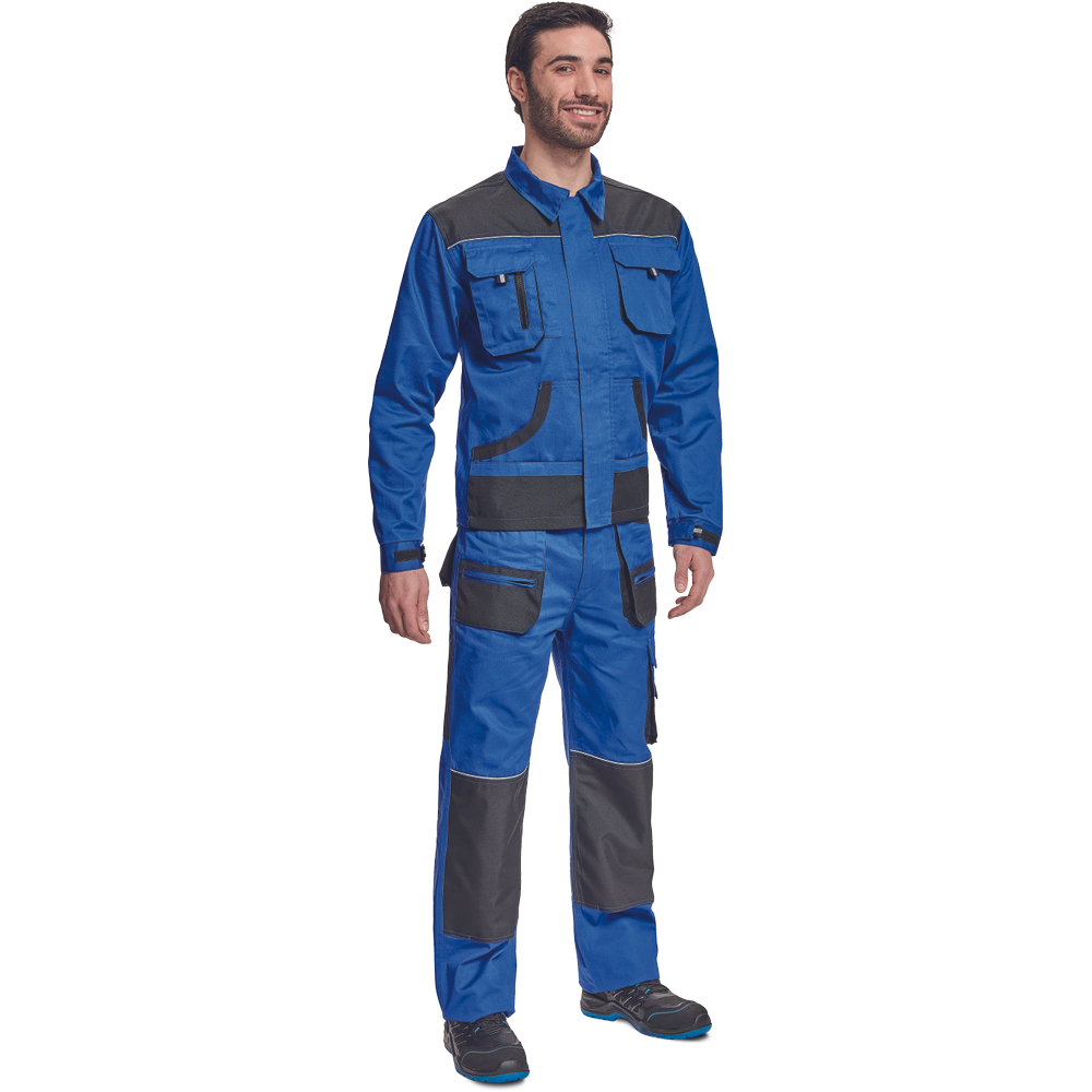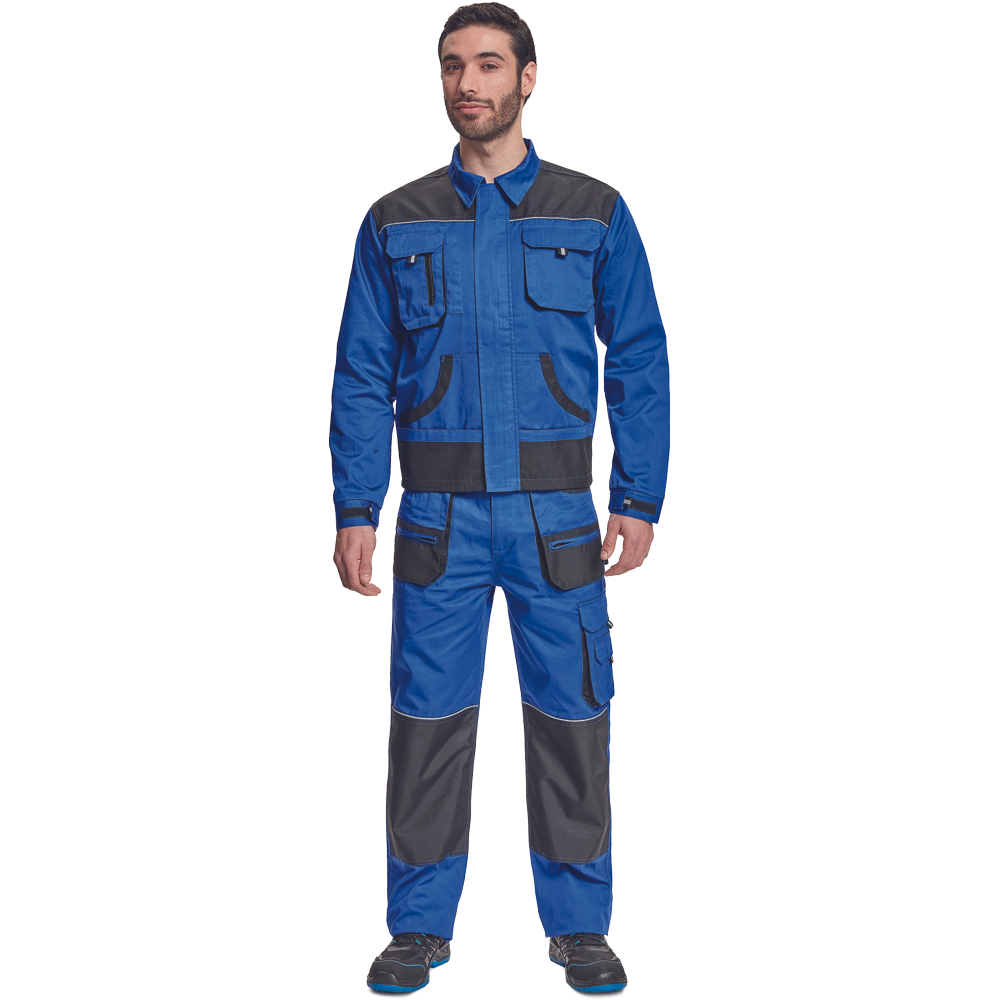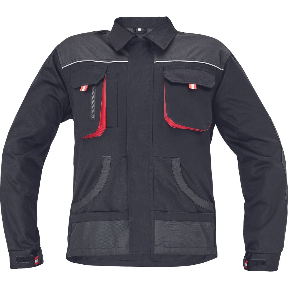 – moška delovna bombažna jakna – zapiranje na zadrgo z velcro zaponko – 2 prsna žepa z velcro zapenjanjem – 2 večnamenska stranska žepa – poliester Oxford z ojačanimi komolci in rameni