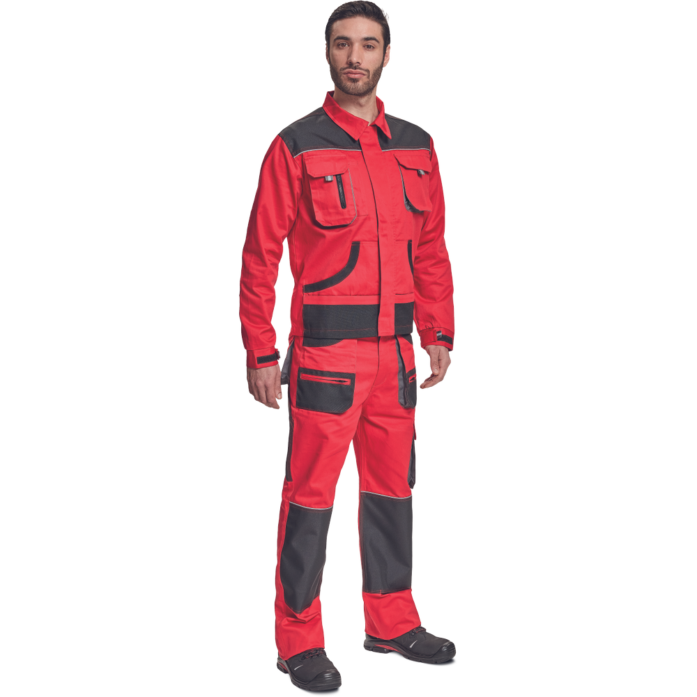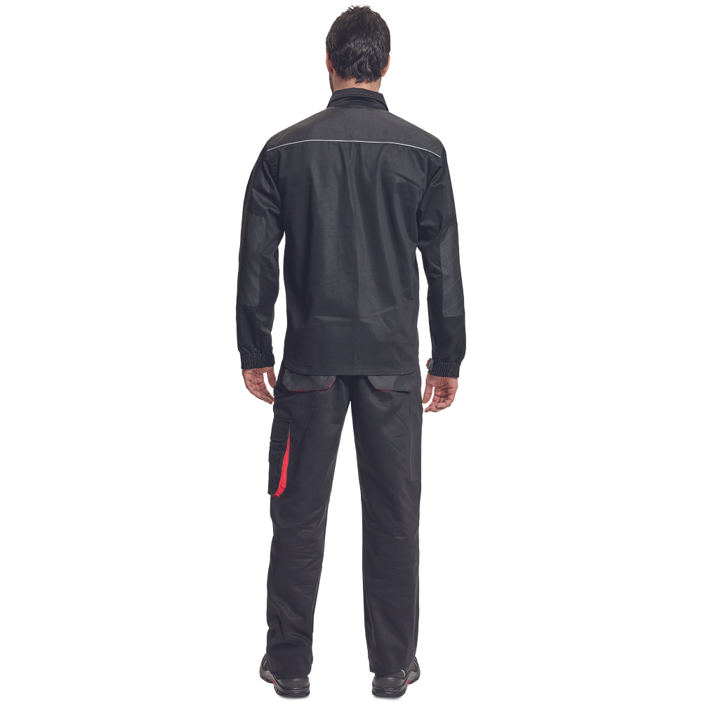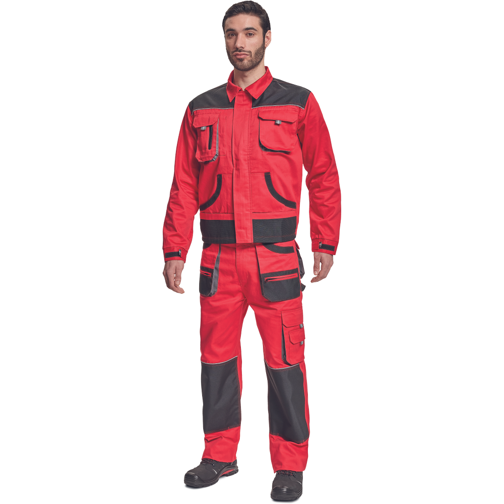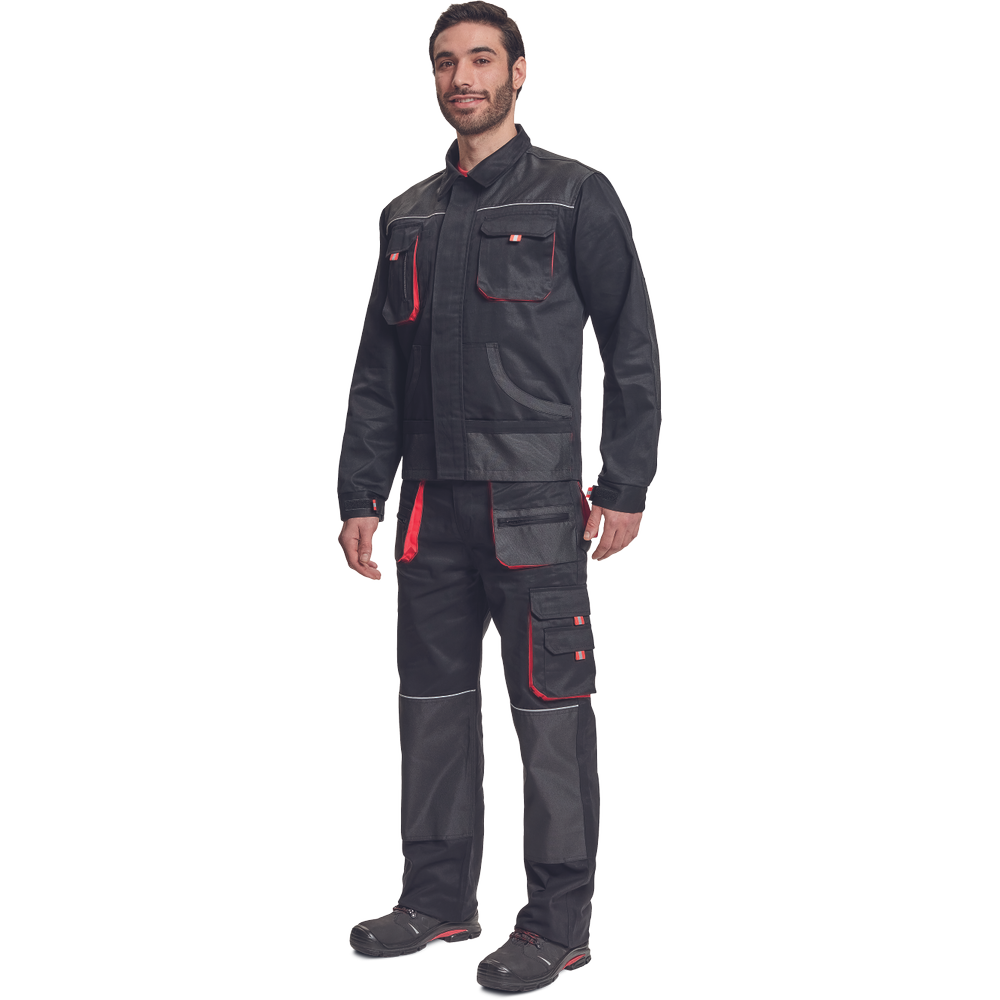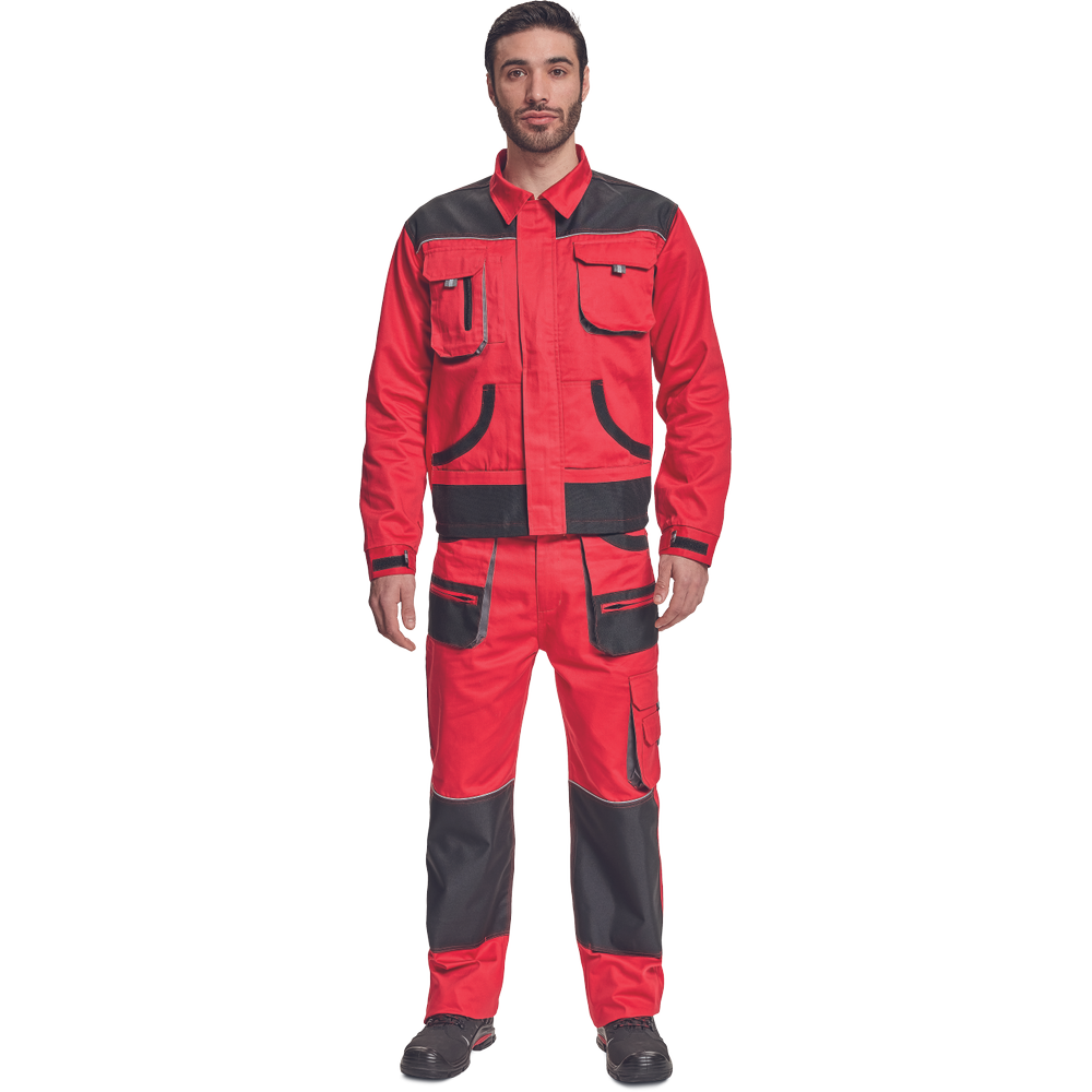– moška delovna bombažna jakna – zapiranje na zadrgo z velcro zaponko – 2 prsna žepa z velcro zapenjanjem – 2 večnamenska stranska žepa – poliester Oxford z ojačanimi komolci in rameni