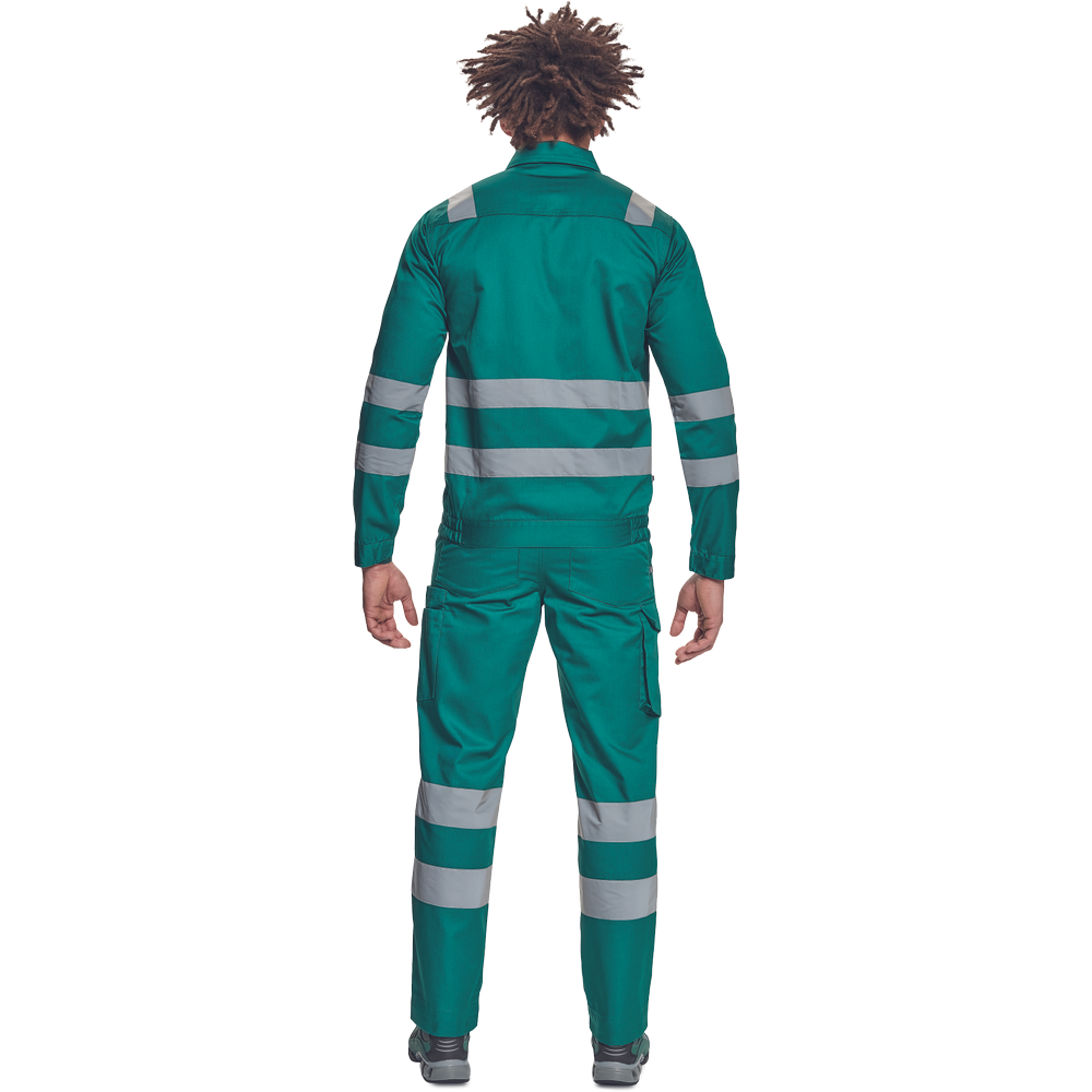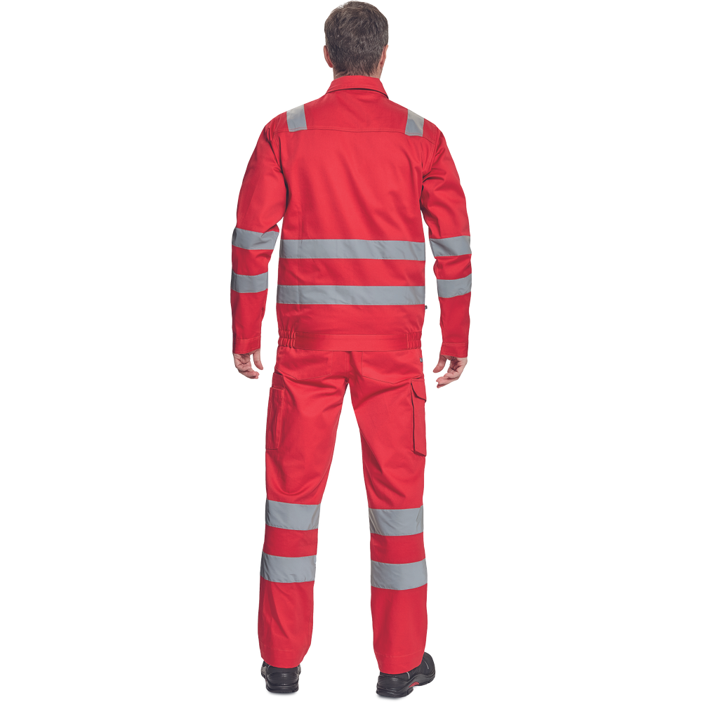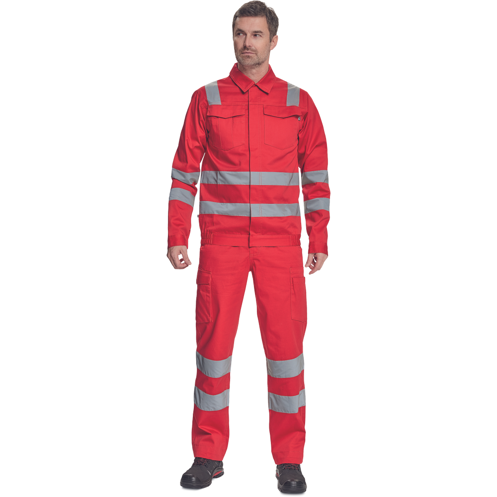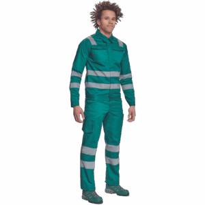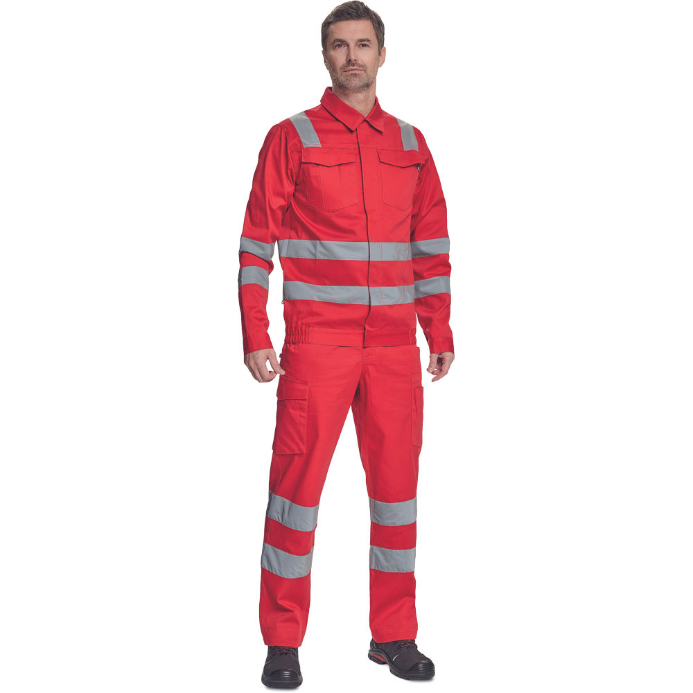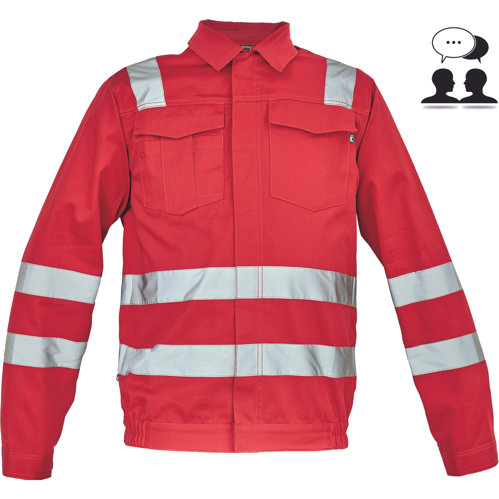 – moška lahka delovna jakna z odsevnimi črtami na ramenih, rokavih in spodnjem delu – zapiranje na zadrgo, prekrito z velcro zaponko – 2 velika prsna žepa z zavihkom – elastičen spodnji del na straneh – manšeta na rokavu z velcro zaponko