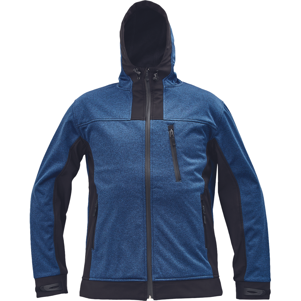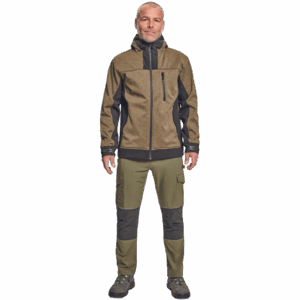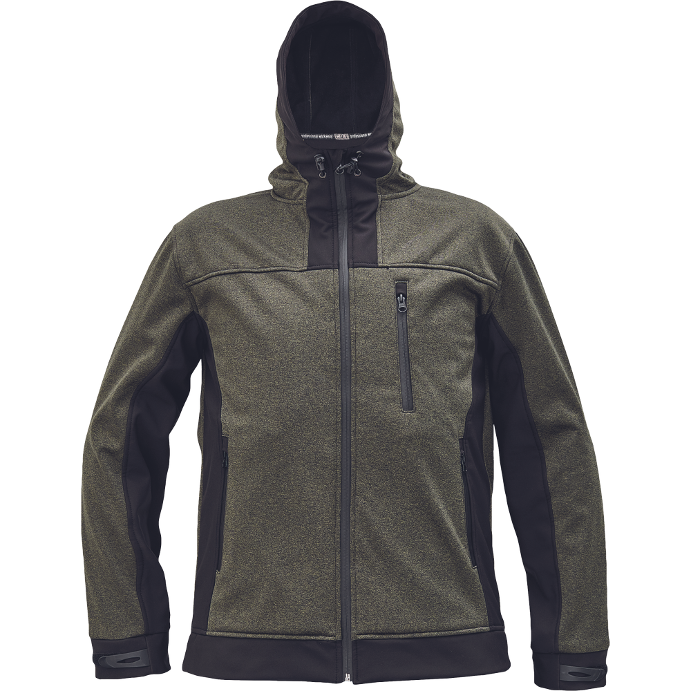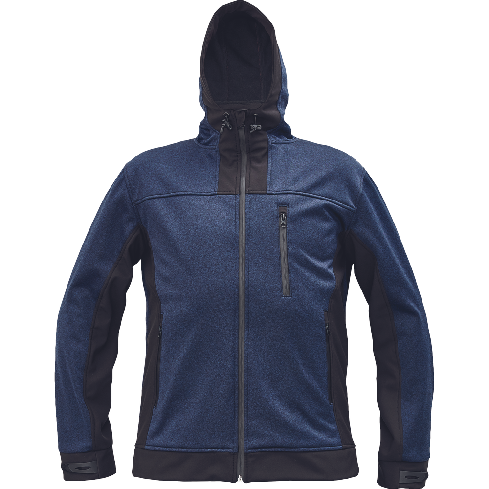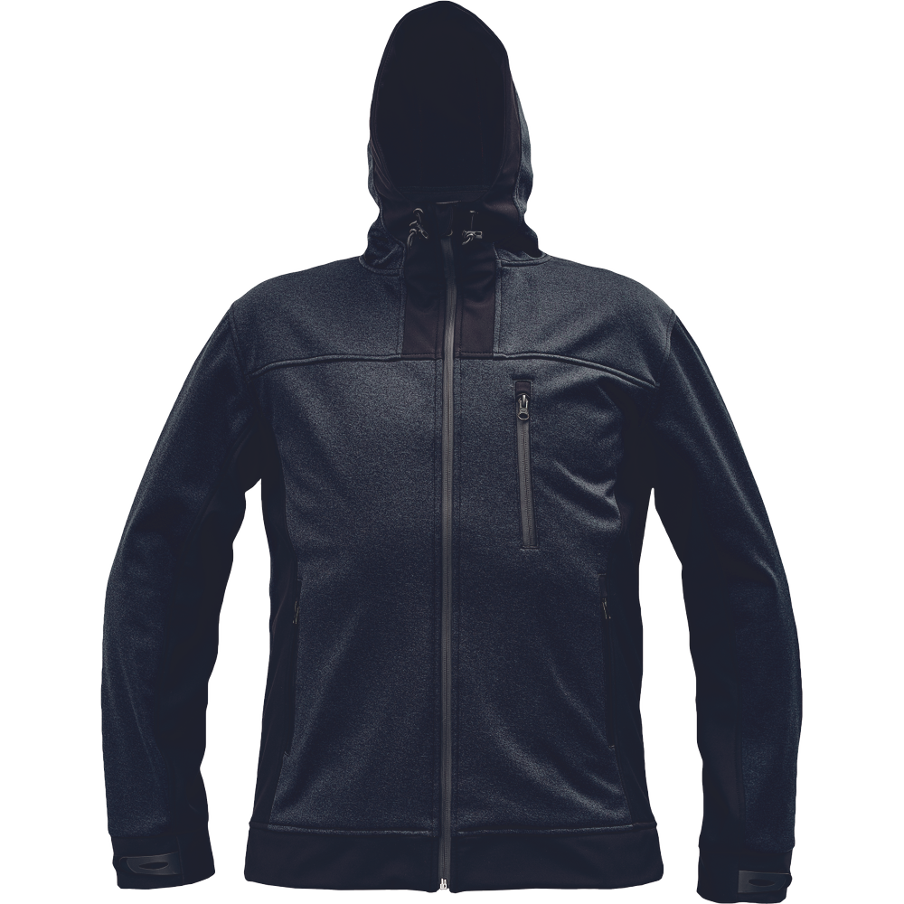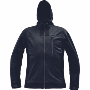 – moška softshell jakna z zadrgo in kapuco – vodoodporna membrana, zračna – 2 stranska žepa na zadrgo – 1 prsni žep na zadrgo – velcro nastavitev manšete – elastična vrvica v kapuci