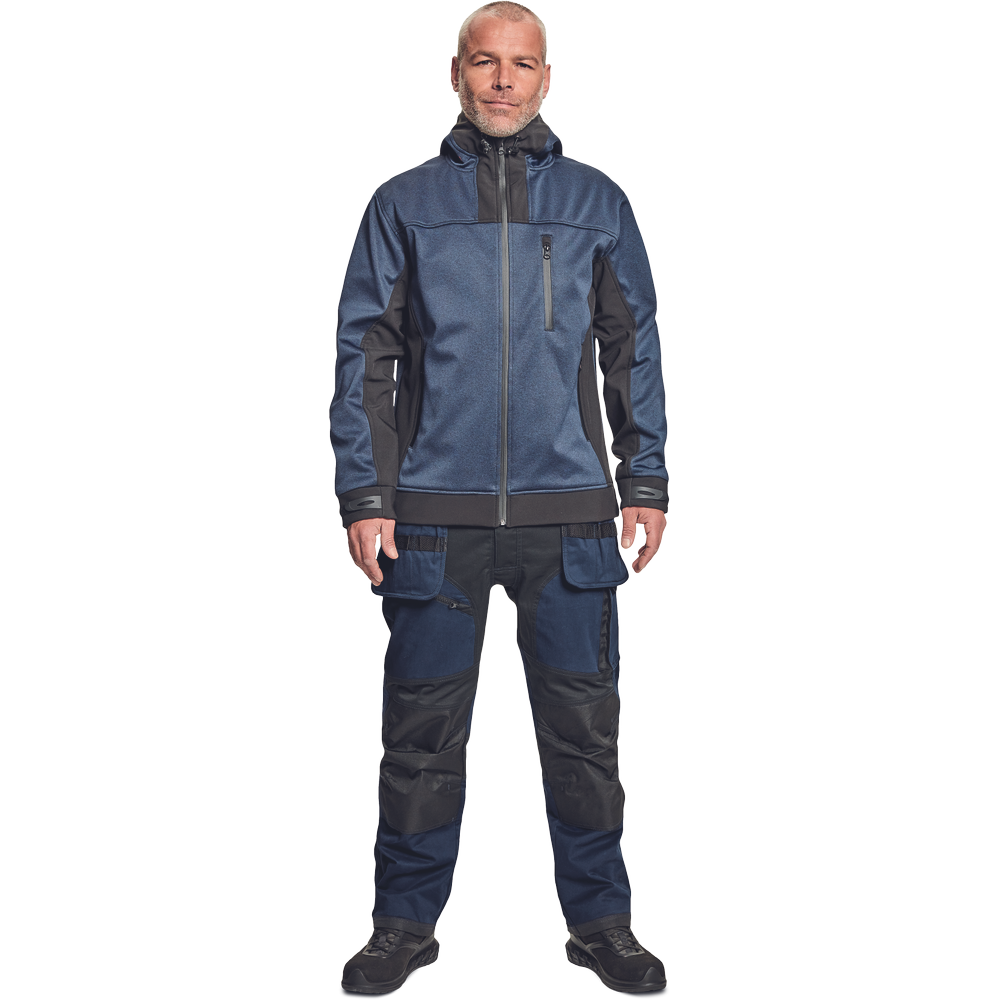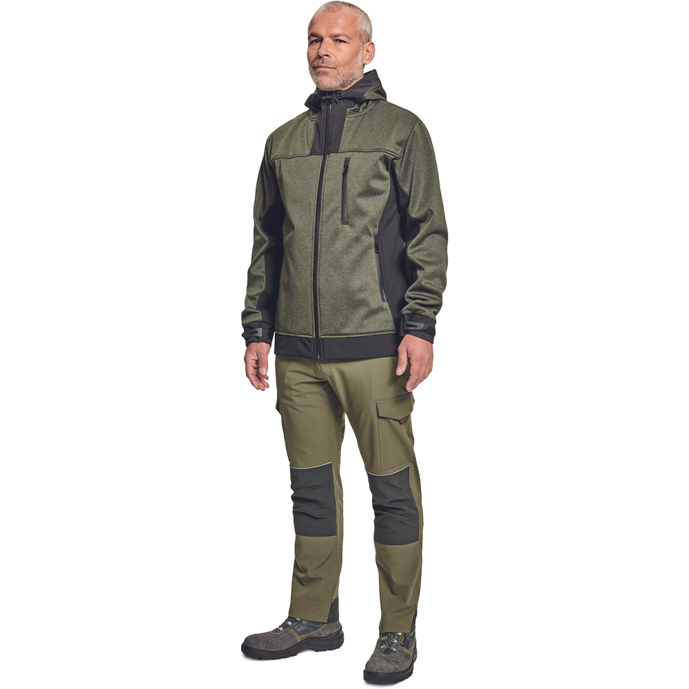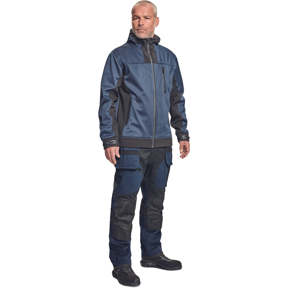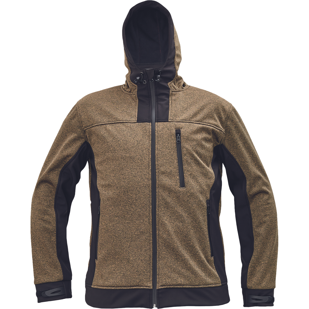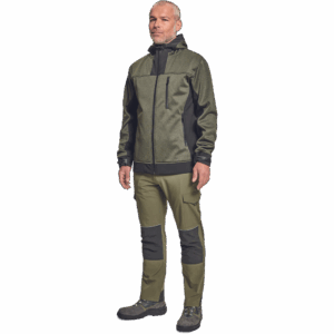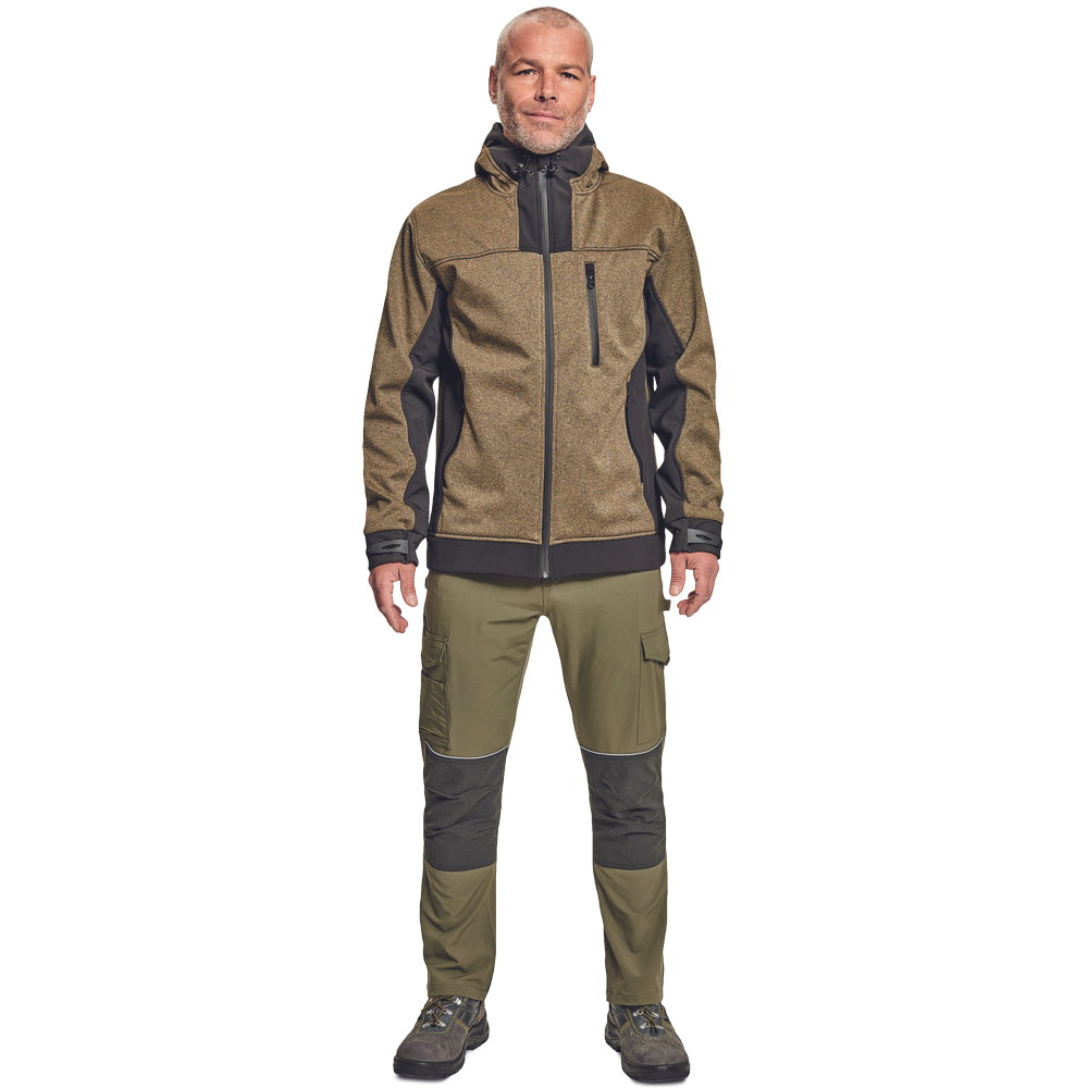 – moška softshell jakna z zadrgo in kapuco – vodoodporna membrana, zračna – 2 stranska žepa na zadrgo – 1 prsni žep na zadrgo – velcro nastavitev manšete – elastična vrvica v kapuci