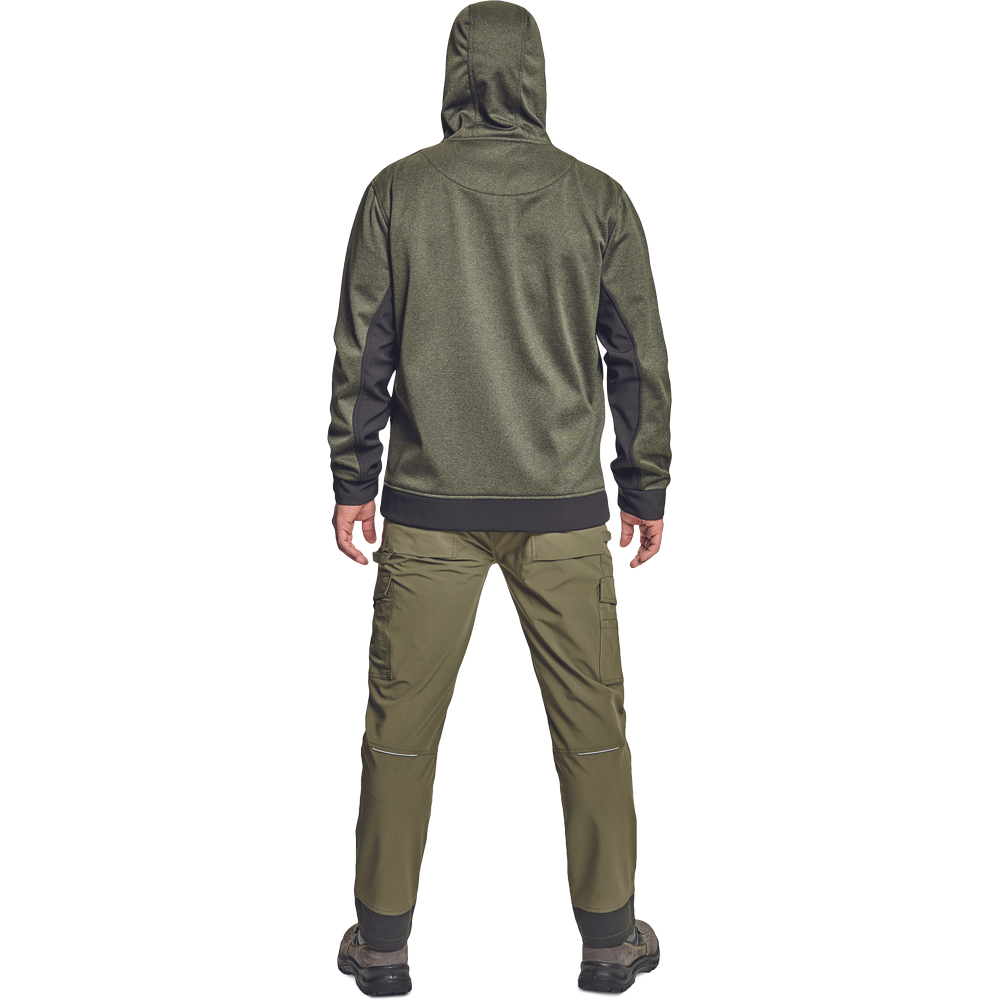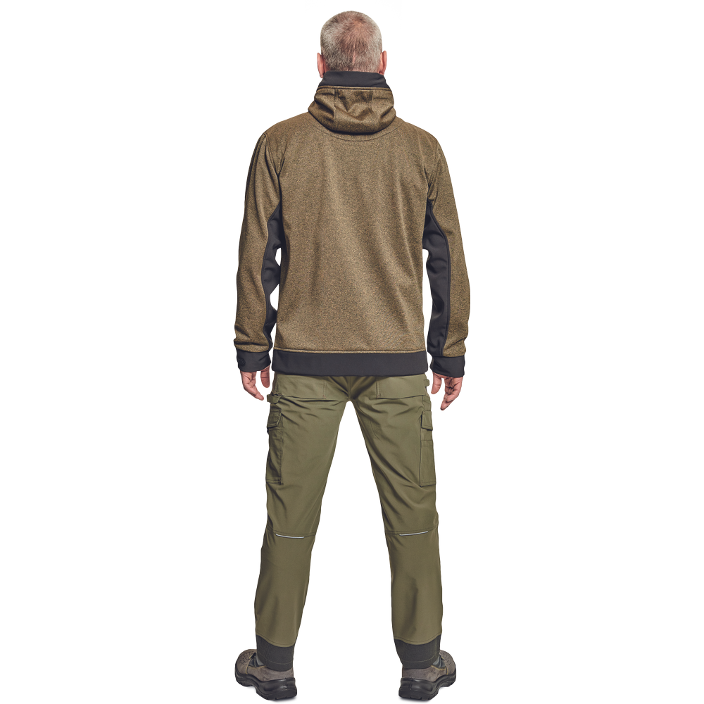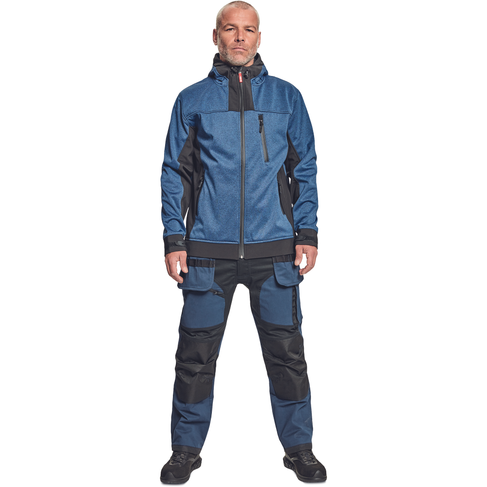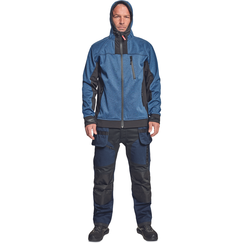 – moška softshell jakna z zadrgo in kapuco – vodoodporna membrana, zračna – 2 stranska žepa na zadrgo – 1 prsni žep na zadrgo – velcro nastavitev manšete – elastična vrvica v kapuci