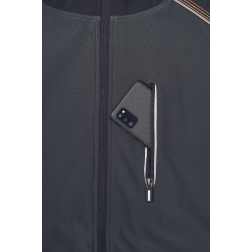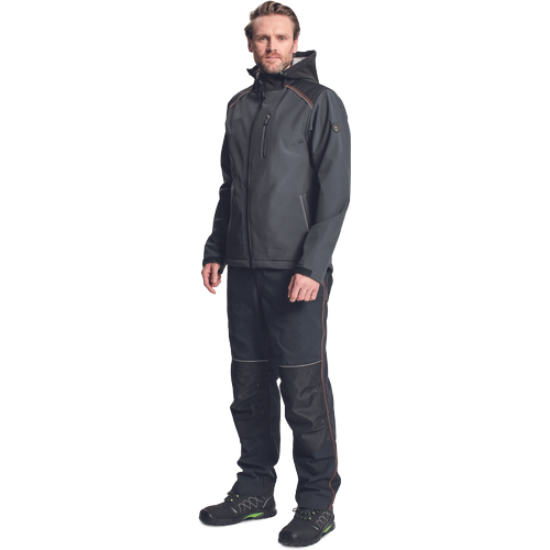 – moška softshell jakna s PU membrano, ki zagotavlja vodoodpornost in zračnost – ojačana ramena in komolci – 1 prsni žep z zadrgo, 2 stranska žepa – 2 notranja žepa z zapiranjem – sedlo in žepi so obrobljeni z odsevnimi trakovi – prilagodljiv spodnji del in rokavi