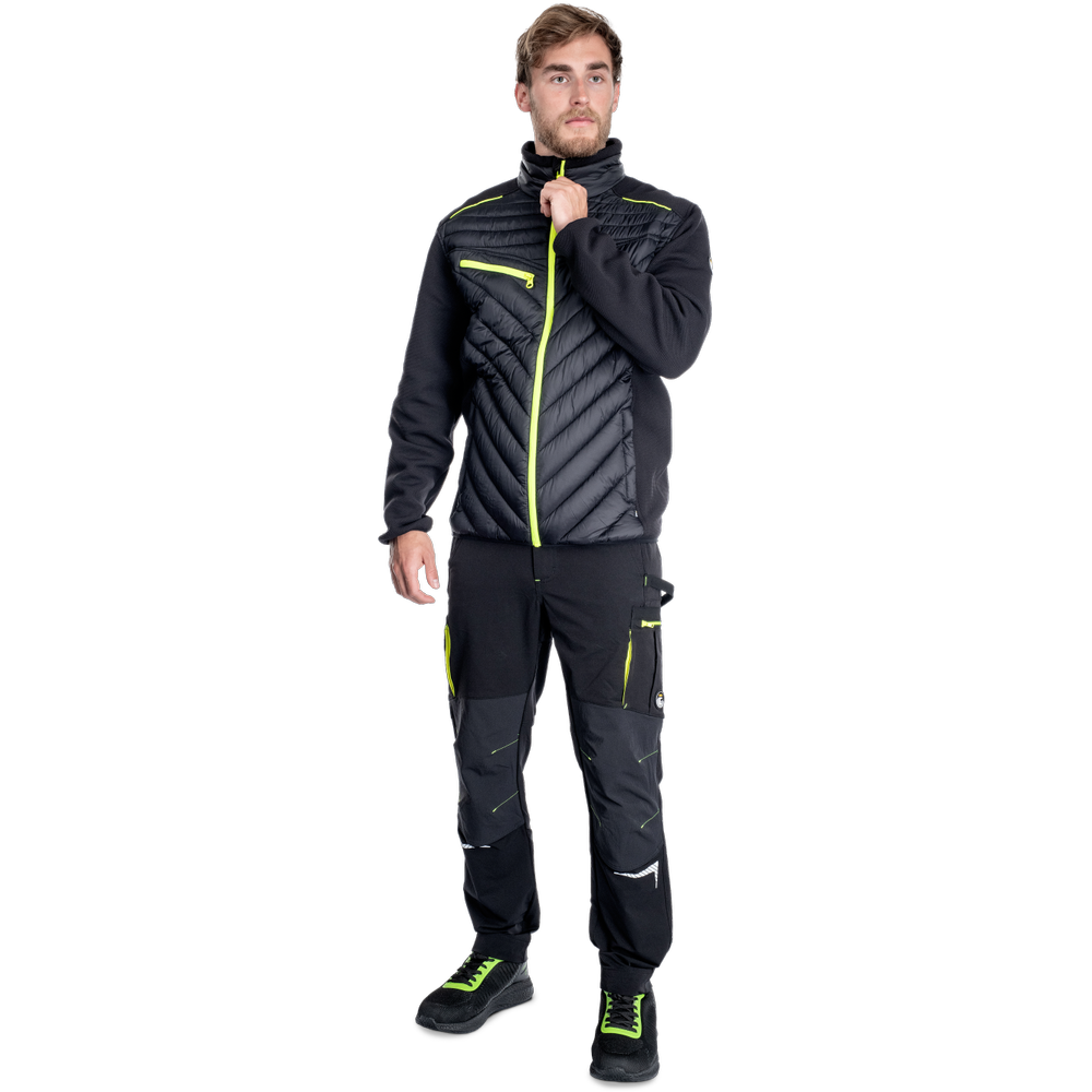 – moška jakna s kombinacijo prešite tkanine in pletenimi rokavi – odsevni elementi – 2 stranska žepa – prsni žep z zadrgo