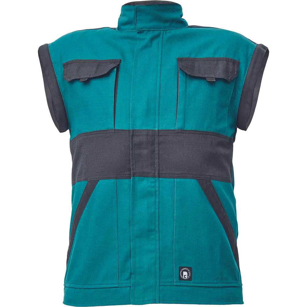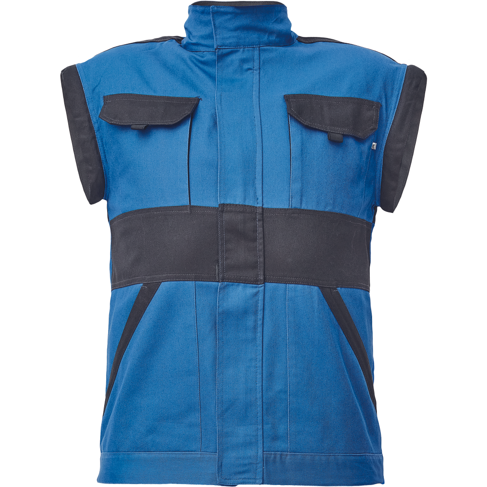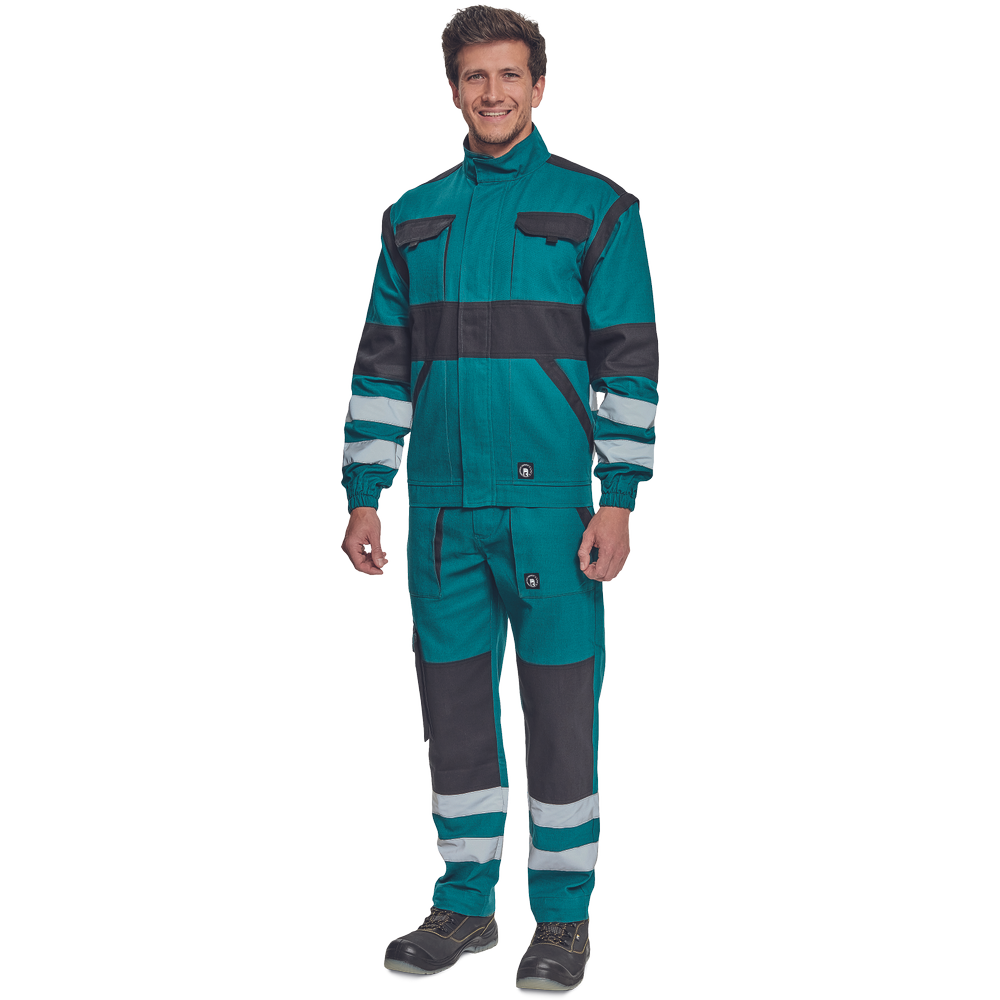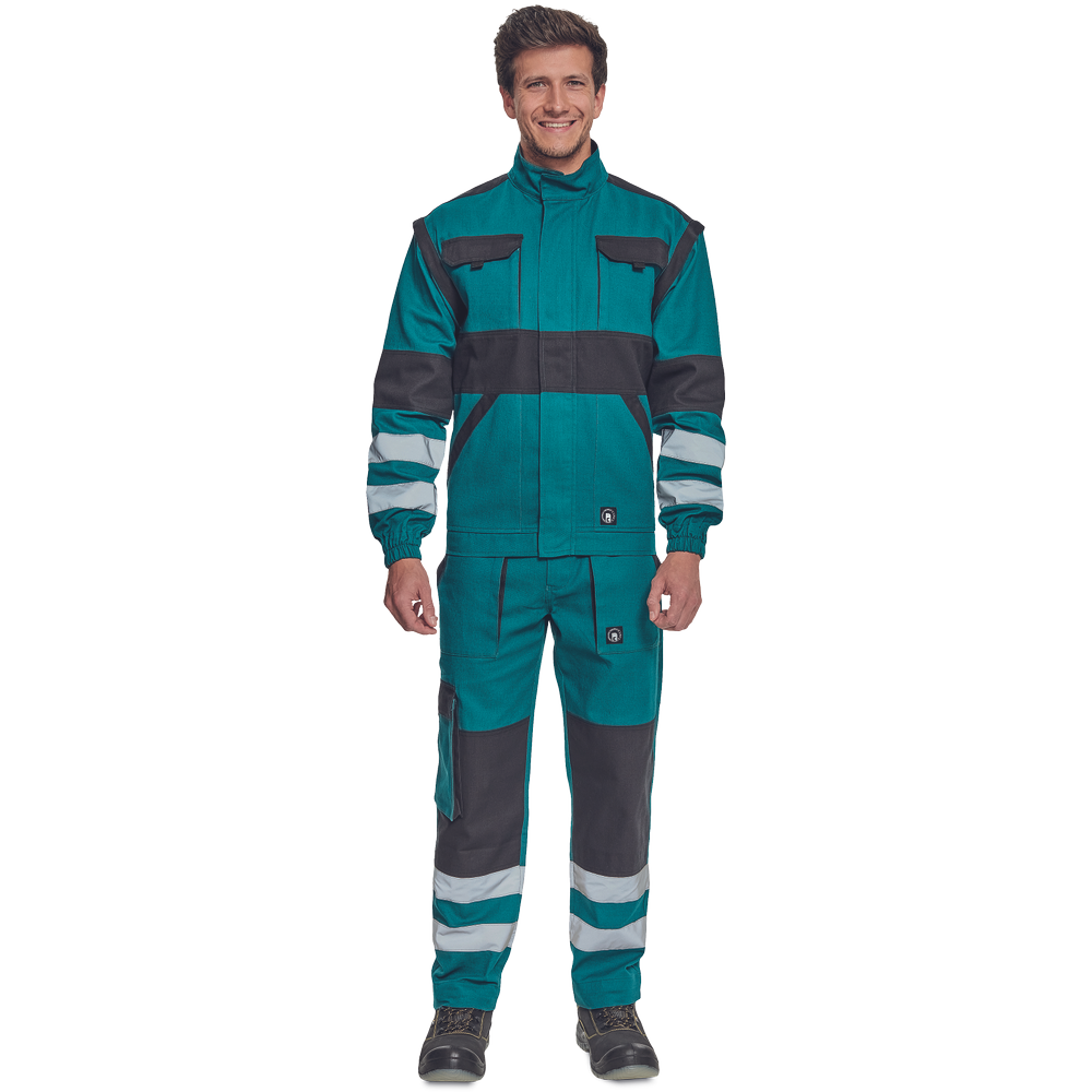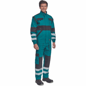 – moška delovna jakna z zadrgo in prevleko za plašč – snemljivi rokavi – 2 sprednja žepa – 2 prsna žepa – ojačitve na poudarjenih delih ramen in komolcev – odsevne črte okoli rokavov in na spodnjem delu hrbtne strani – elastične manšete in spodnji rob pasu