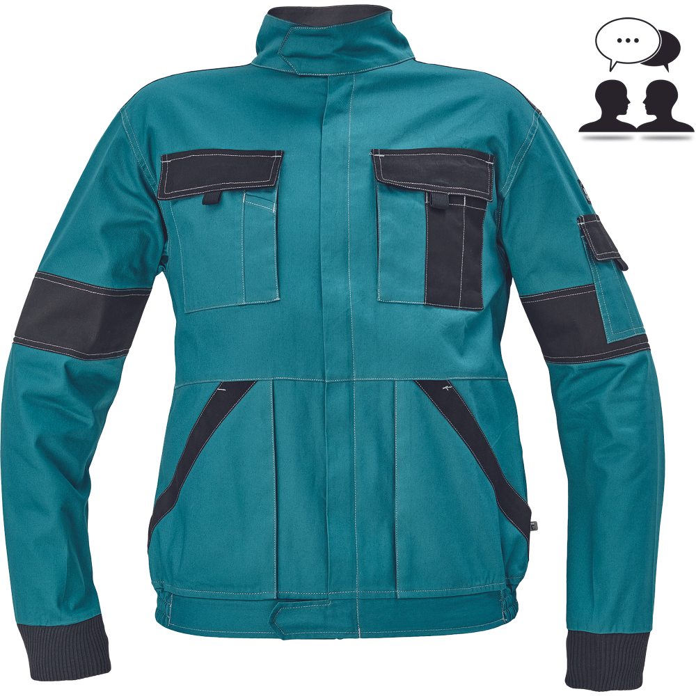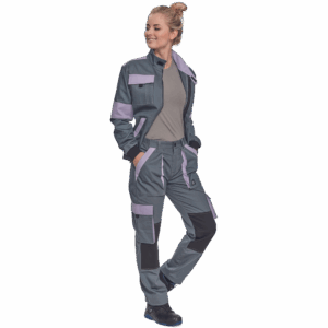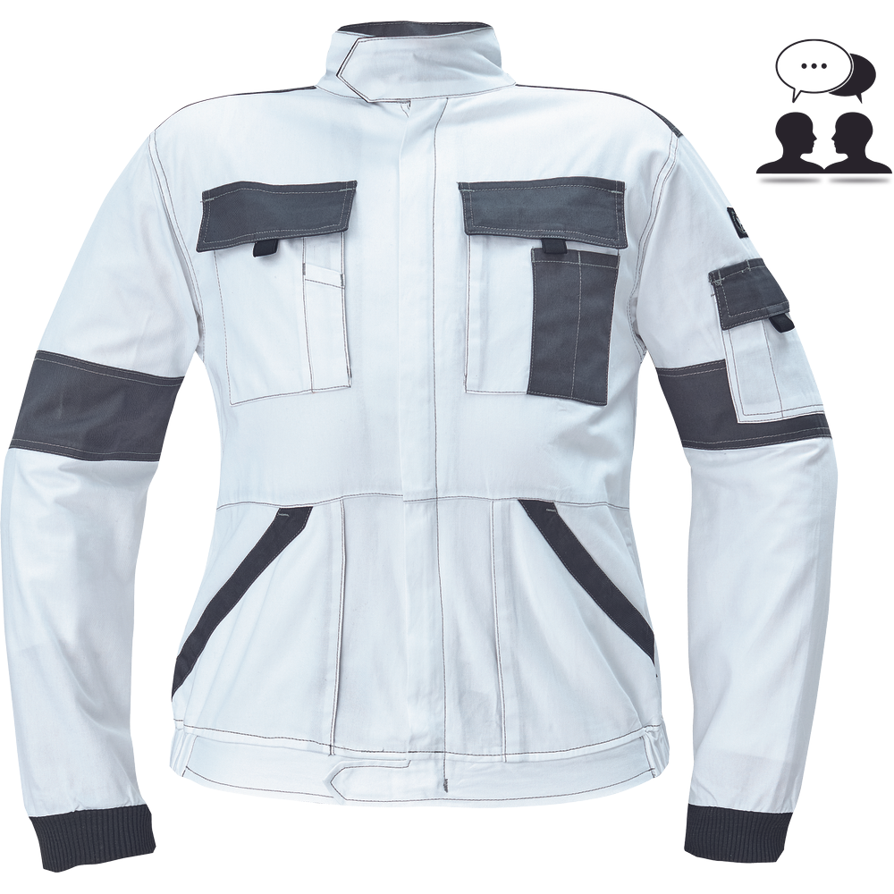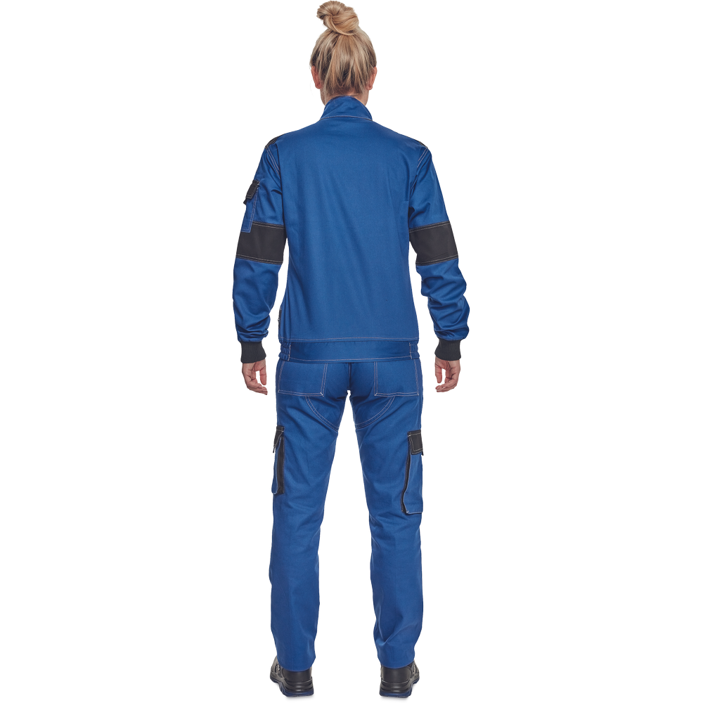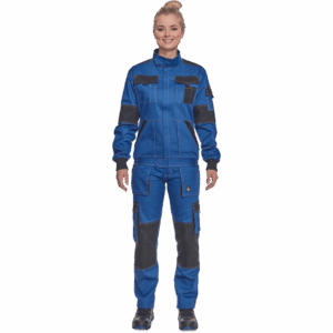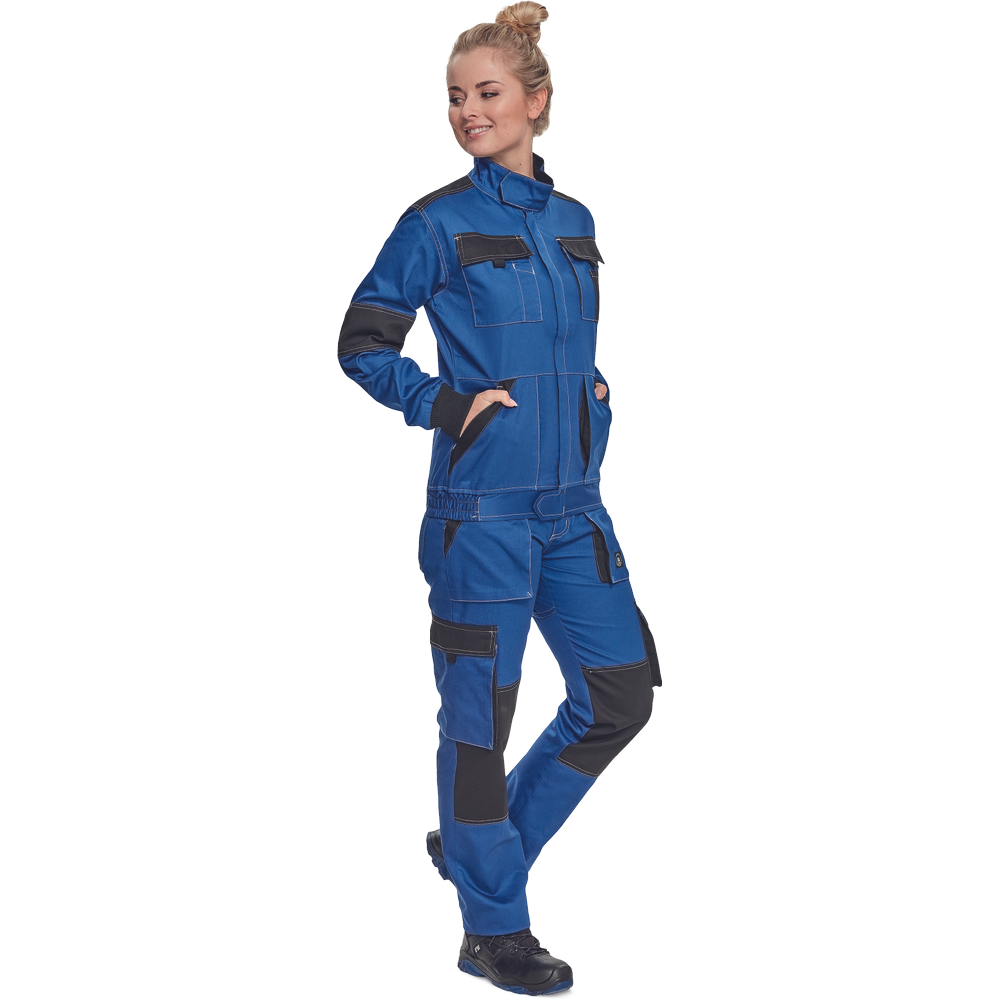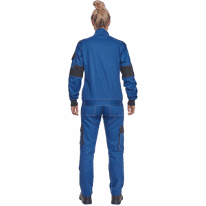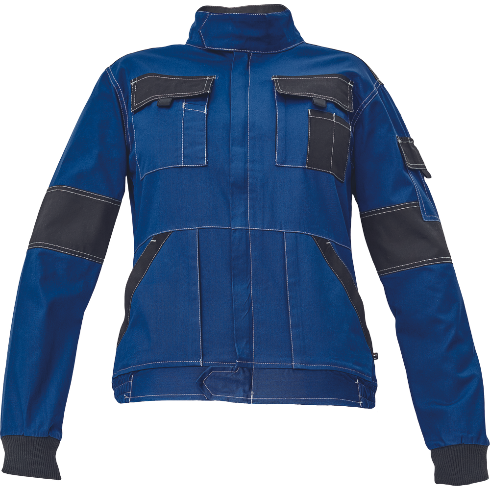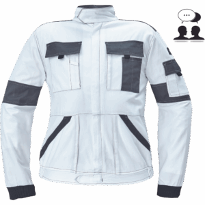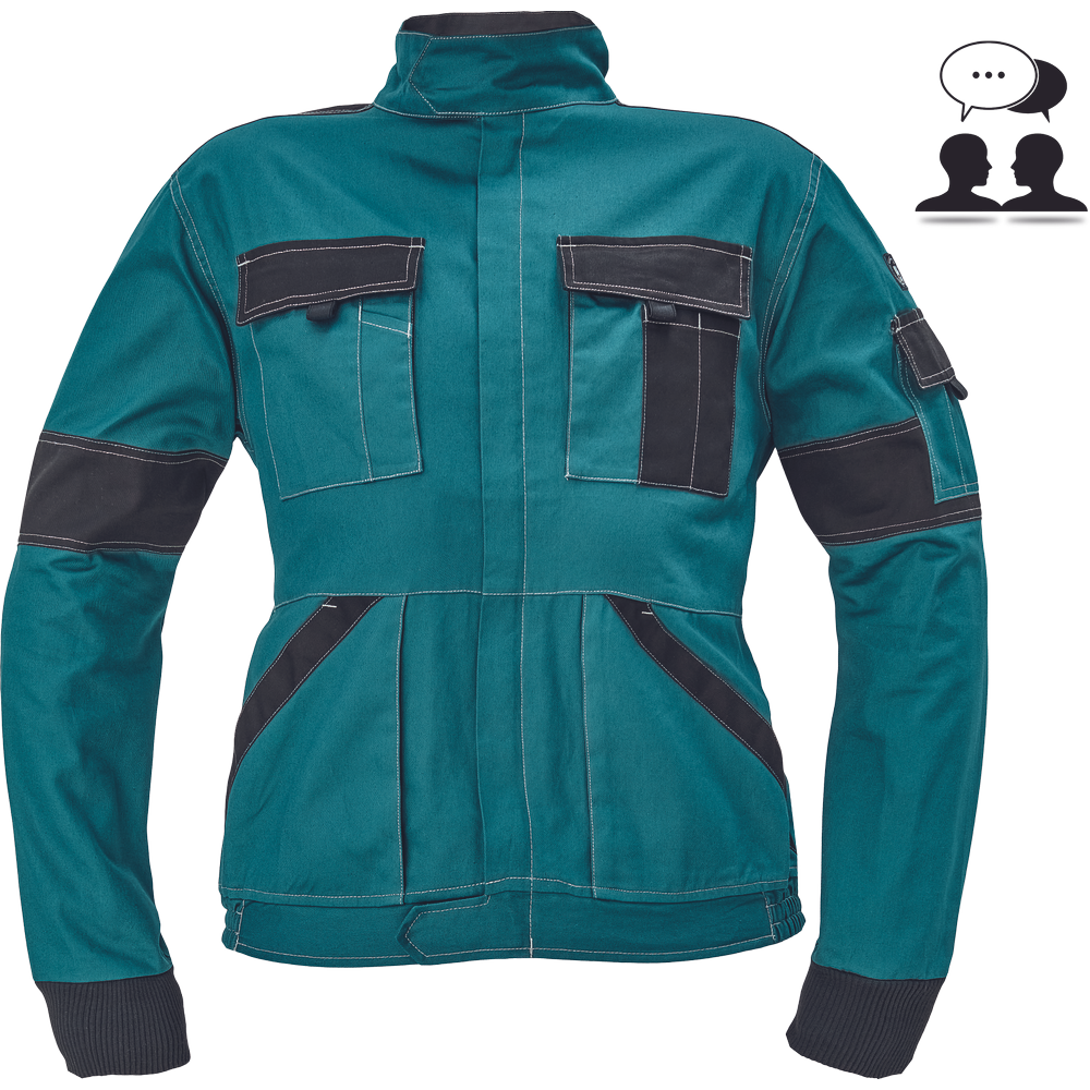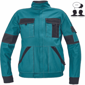 – lahka delovna jakna za ženske z zadrgo in pokrovom za plaketi – 2 sprednja žepa – 2 dvojna prsna žepa s poklopci – 1 majhen žep na levem rokavu – ojačitev na poudarjenih delih ramen in komolcev – elastične manšete in spodnji rob pasu