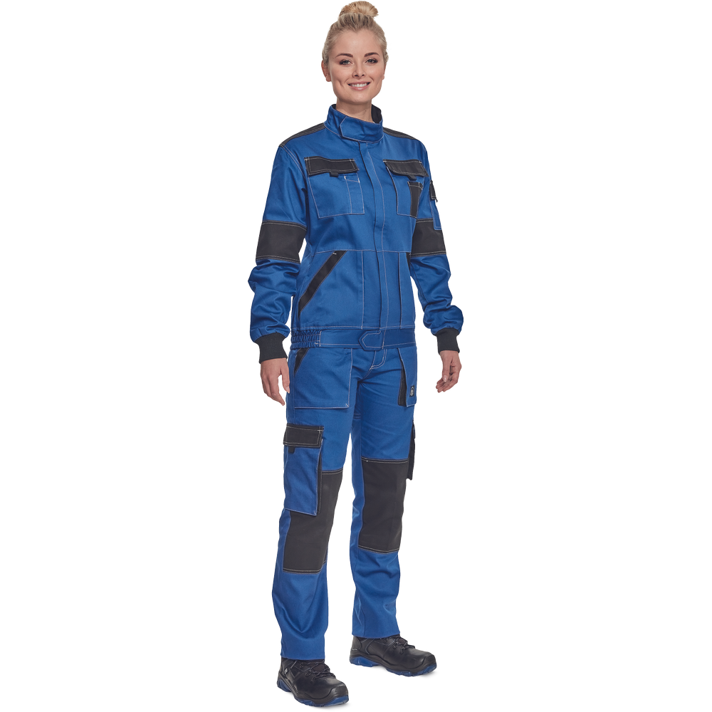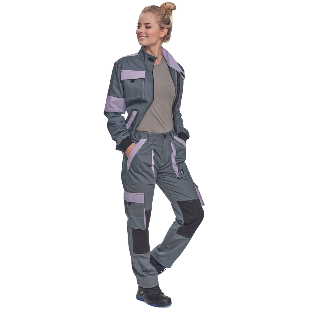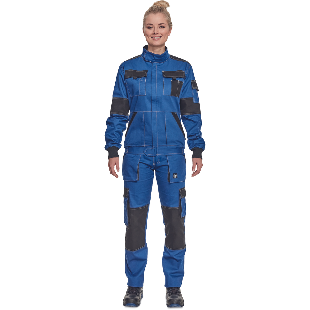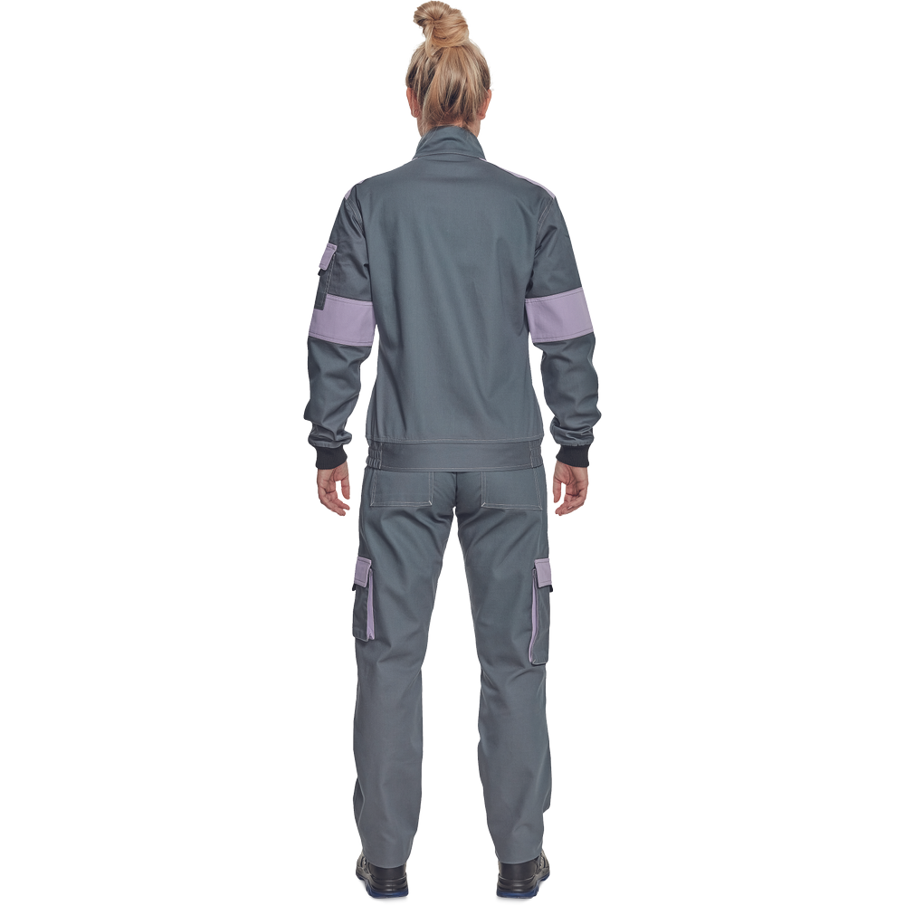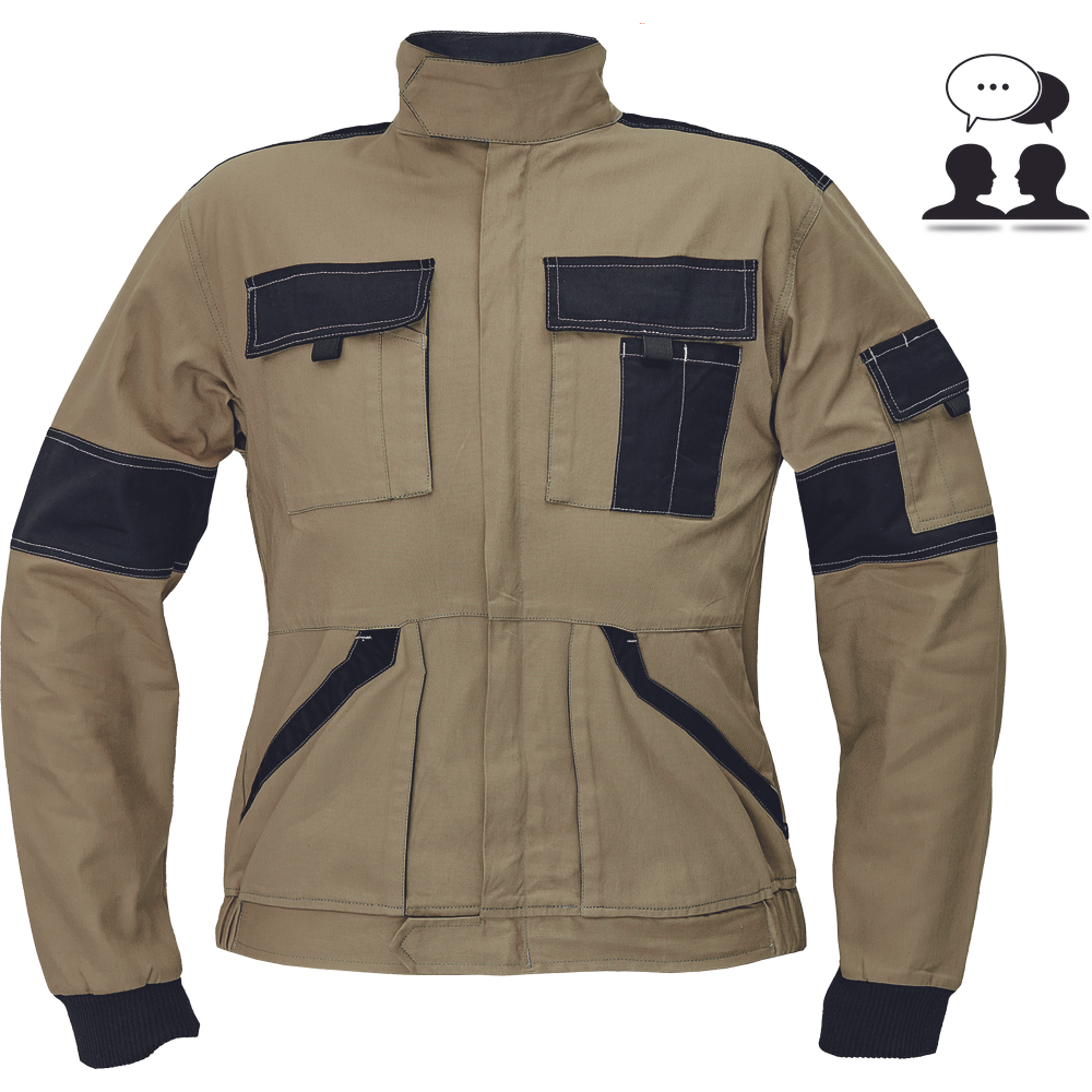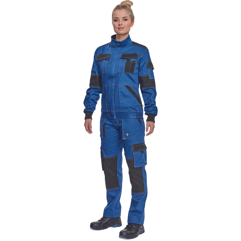 – lahka delovna jakna za ženske z zadrgo in pokrovom za plaketi – 2 sprednja žepa – 2 dvojna prsna žepa s poklopci – 1 majhen žep na levem rokavu – ojačitev na poudarjenih delih ramen in komolcev – elastične manšete in spodnji rob pasu