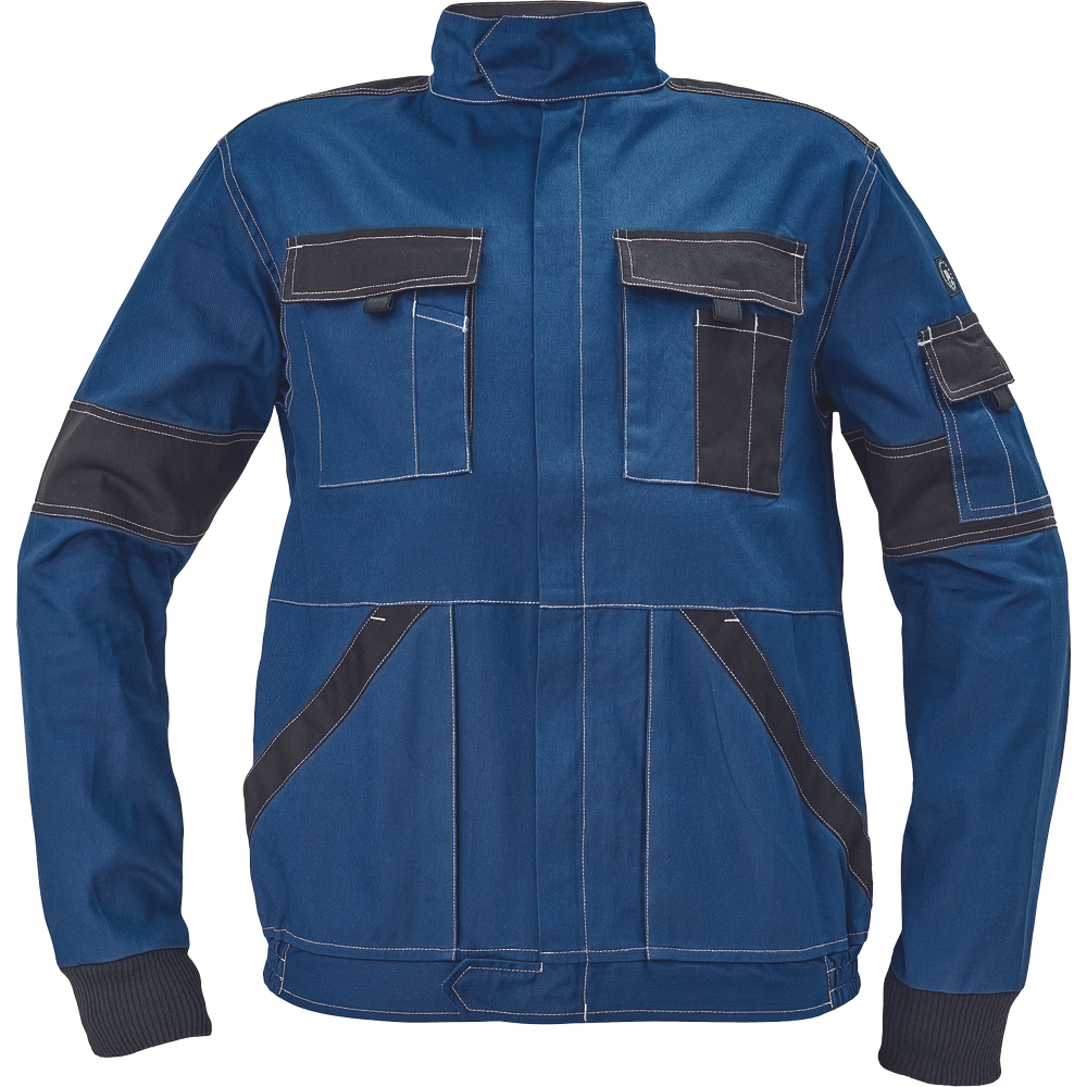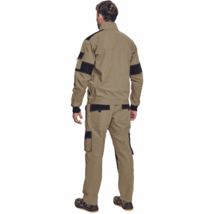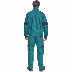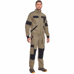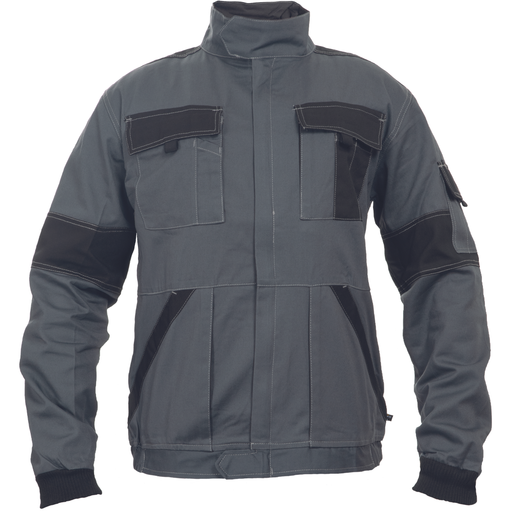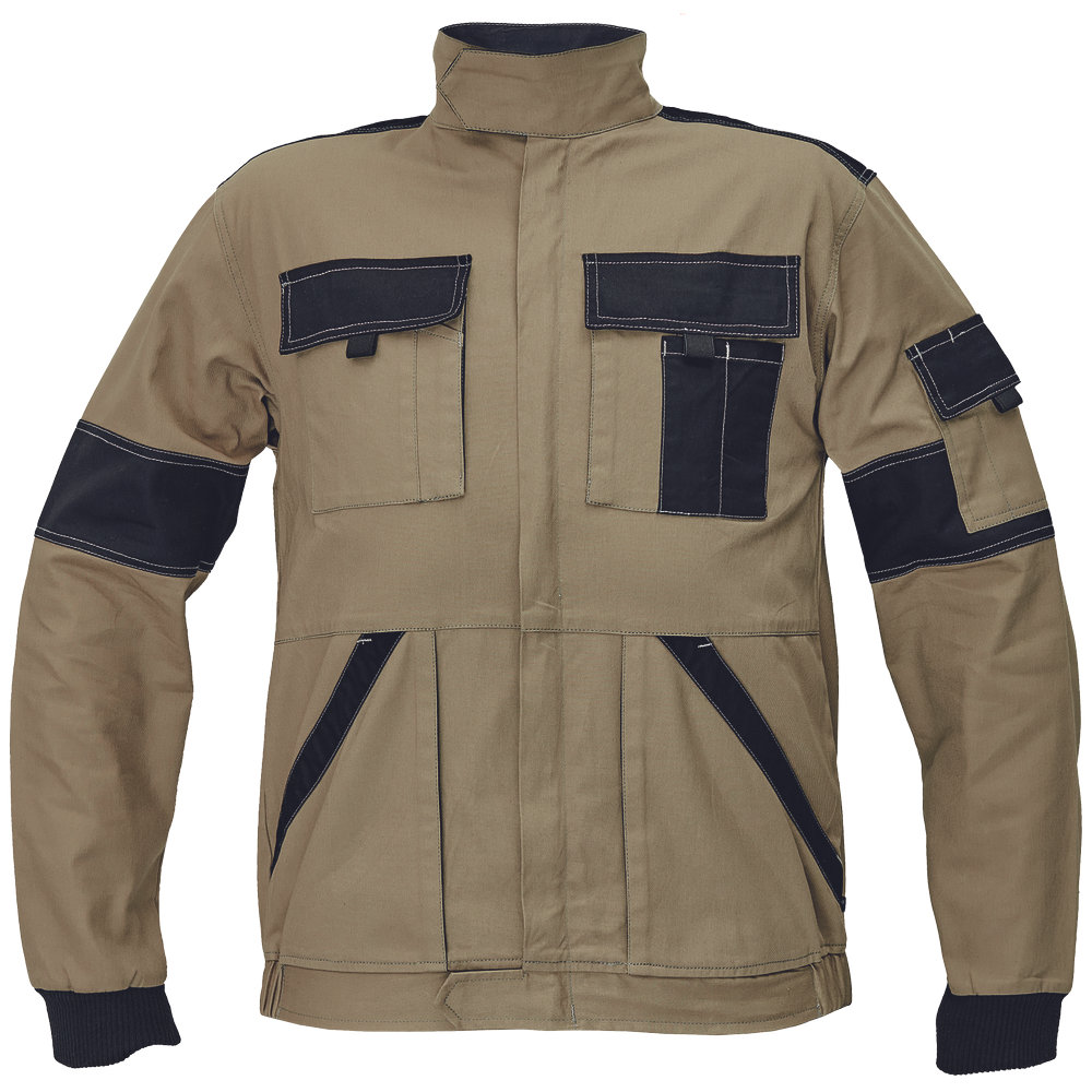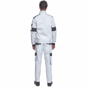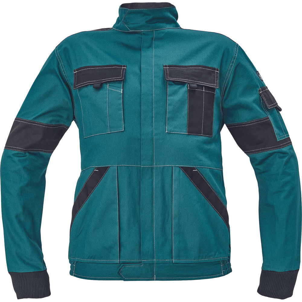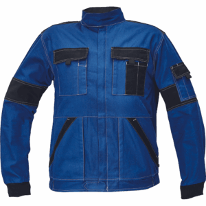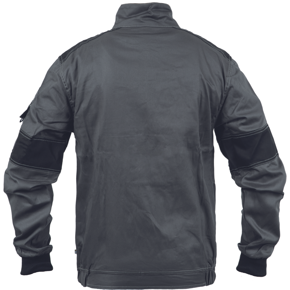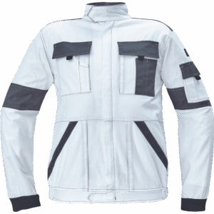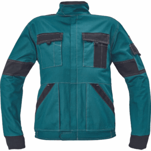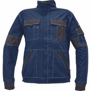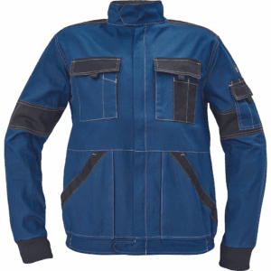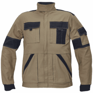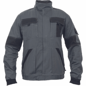 – moška lahka delovna jakna z zadrgo in pokrovom za plašč – 2 sprednja žepa – 2 dvojna prsna žepa s poklopci – 1 majhen žep na levem rokavu – ojačitev na poudarjenih delih ramen in komolcev – elastične manšete in spodnji rob pasu
