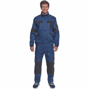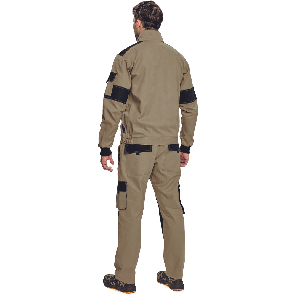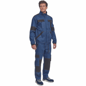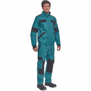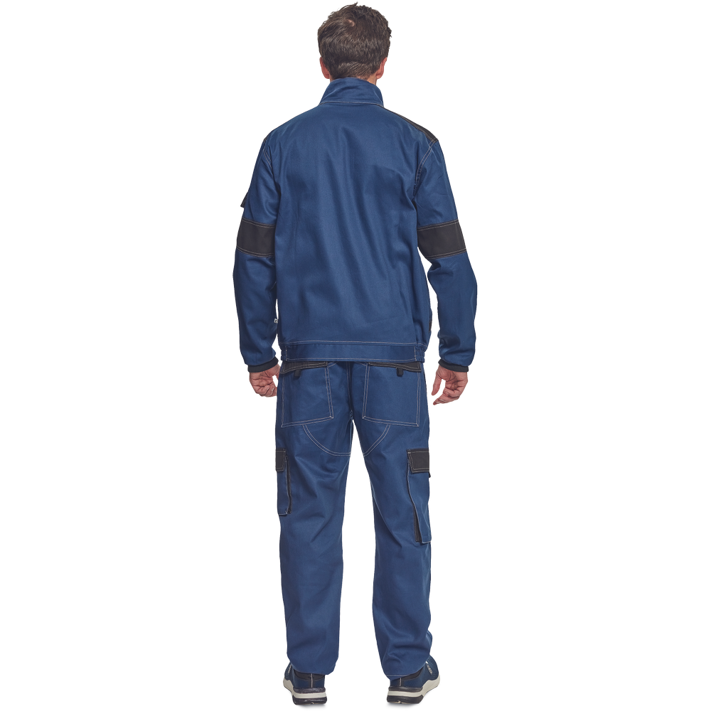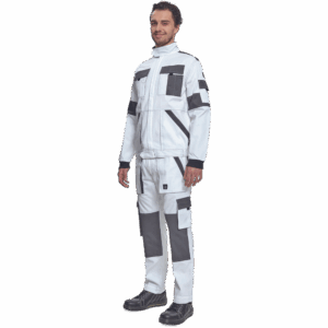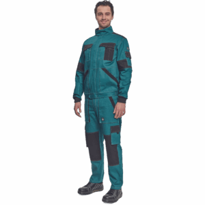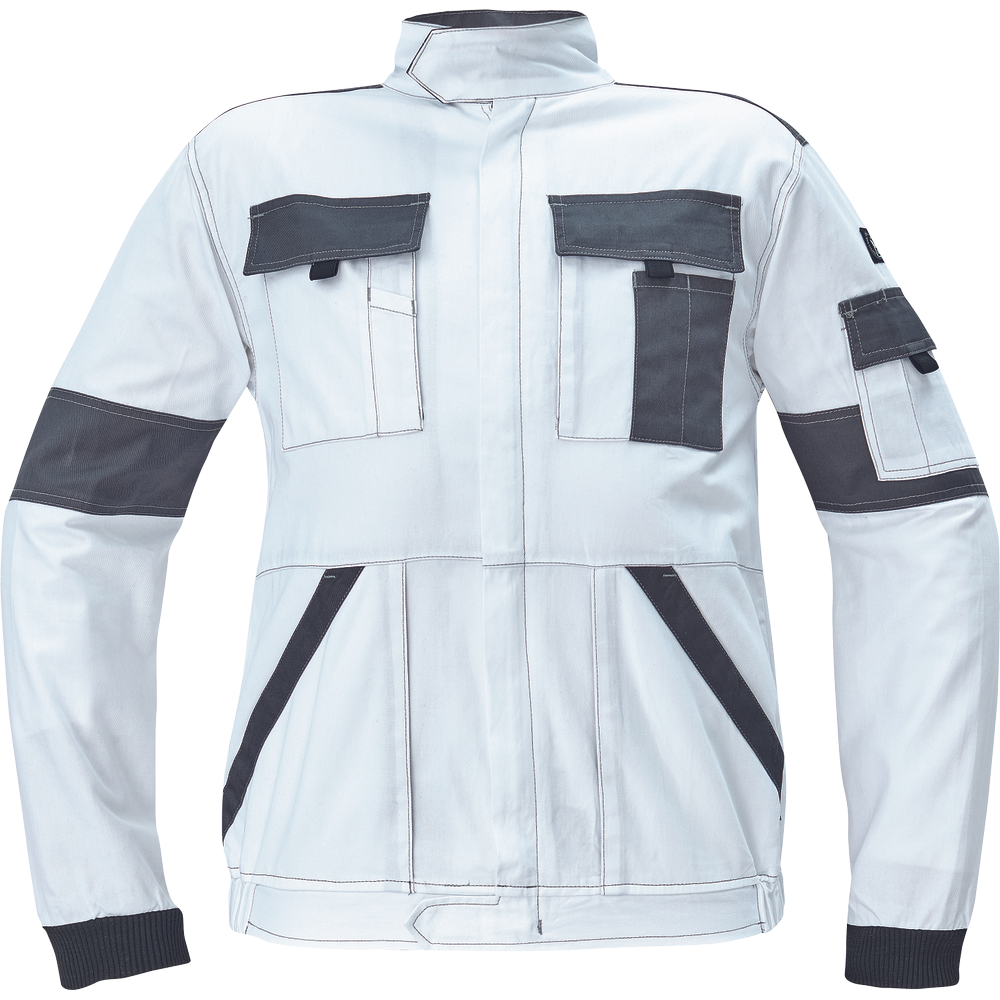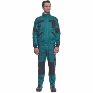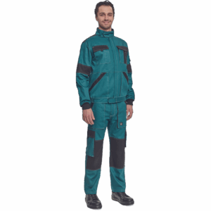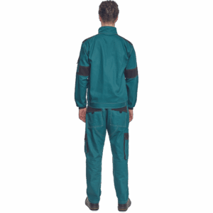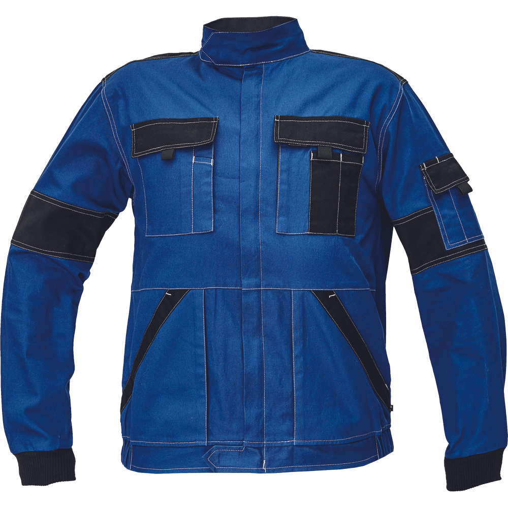 – moška lahka delovna jakna z zadrgo in pokrovom za plašč – 2 sprednja žepa – 2 dvojna prsna žepa s poklopci – 1 majhen žep na levem rokavu – ojačitev na poudarjenih delih ramen in komolcev – elastične manšete in spodnji rob pasu