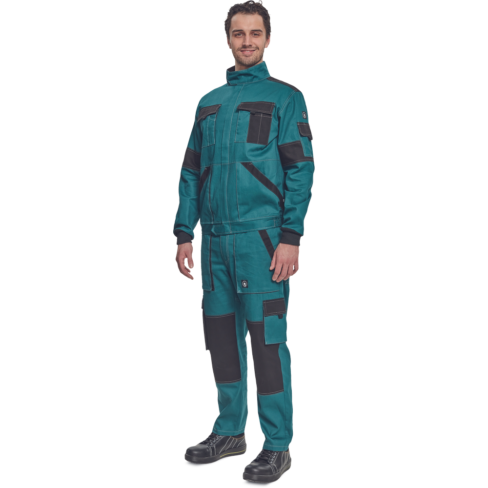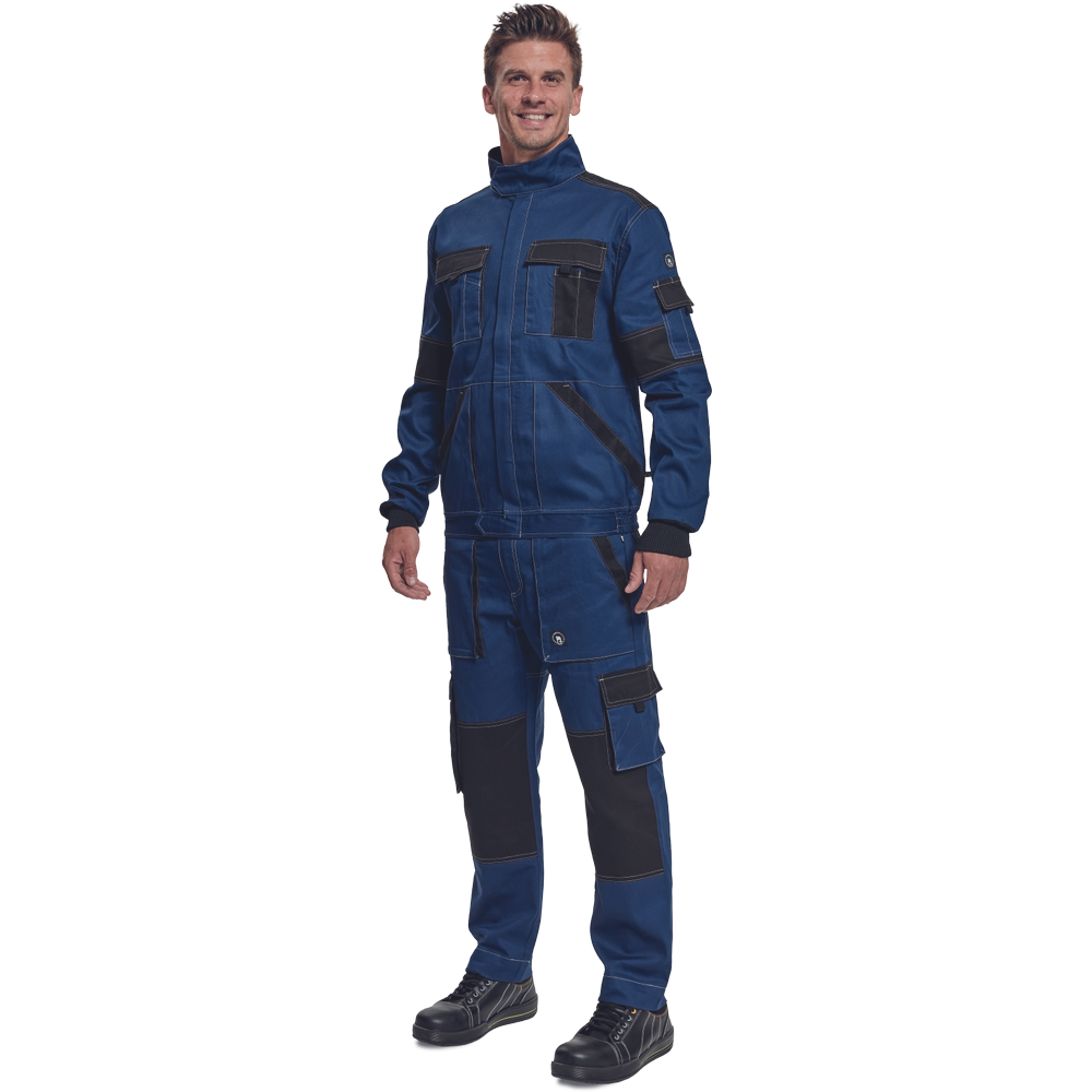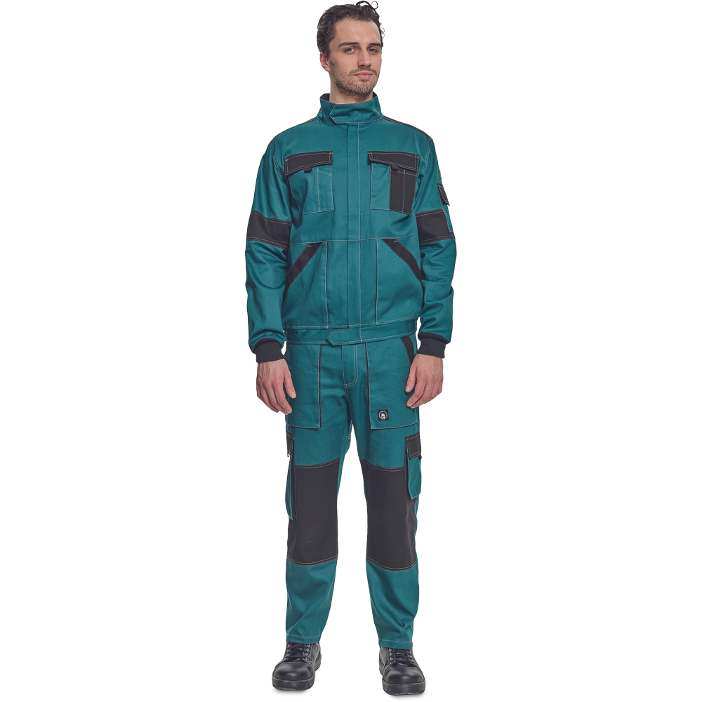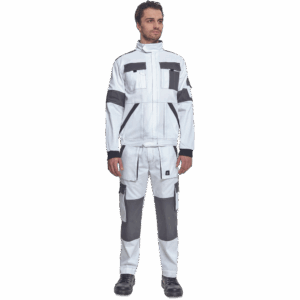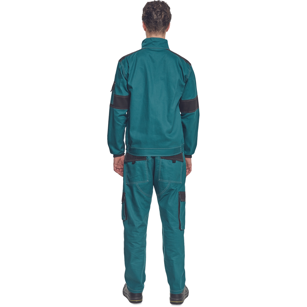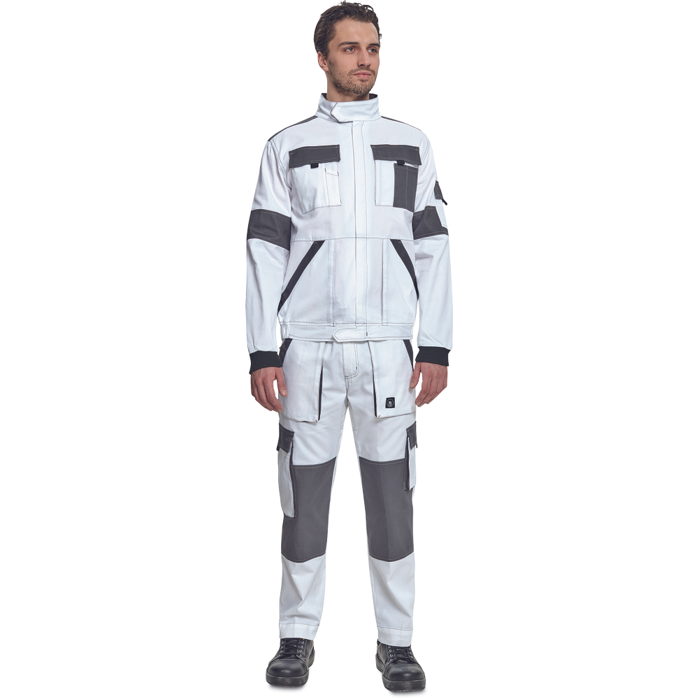 – moška lahka delovna jakna z zadrgo in pokrovom za plašč – 2 sprednja žepa – 2 dvojna prsna žepa s poklopci – 1 majhen žep na levem rokavu – ojačitev na poudarjenih delih ramen in komolcev – elastične manšete in spodnji rob pasu