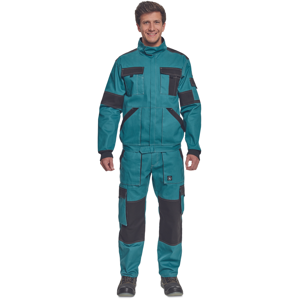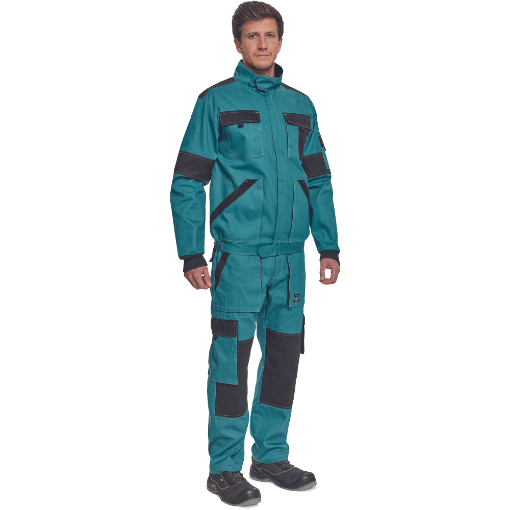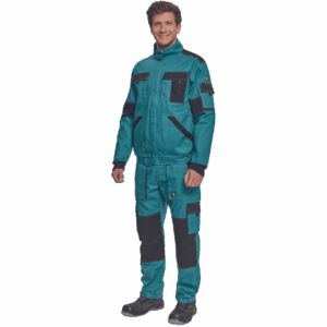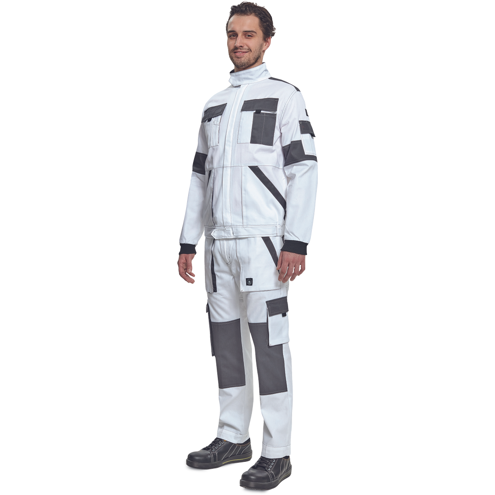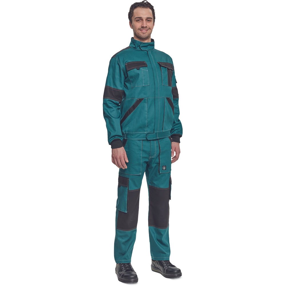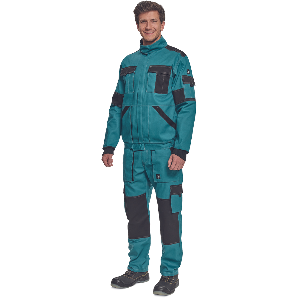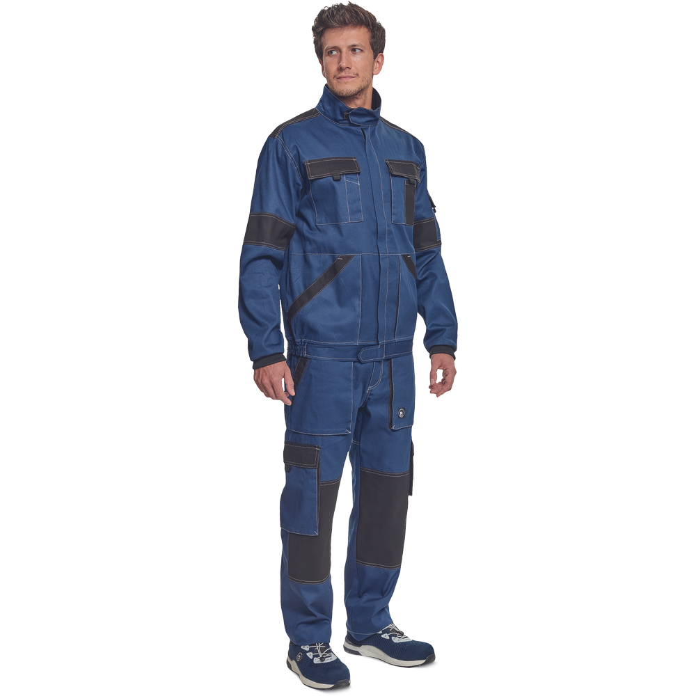 – moška lahka delovna jakna z zadrgo in pokrovom za plašč – 2 sprednja žepa – 2 dvojna prsna žepa s poklopci – 1 majhen žep na levem rokavu – ojačitev na poudarjenih delih ramen in komolcev – elastične manšete in spodnji rob pasu