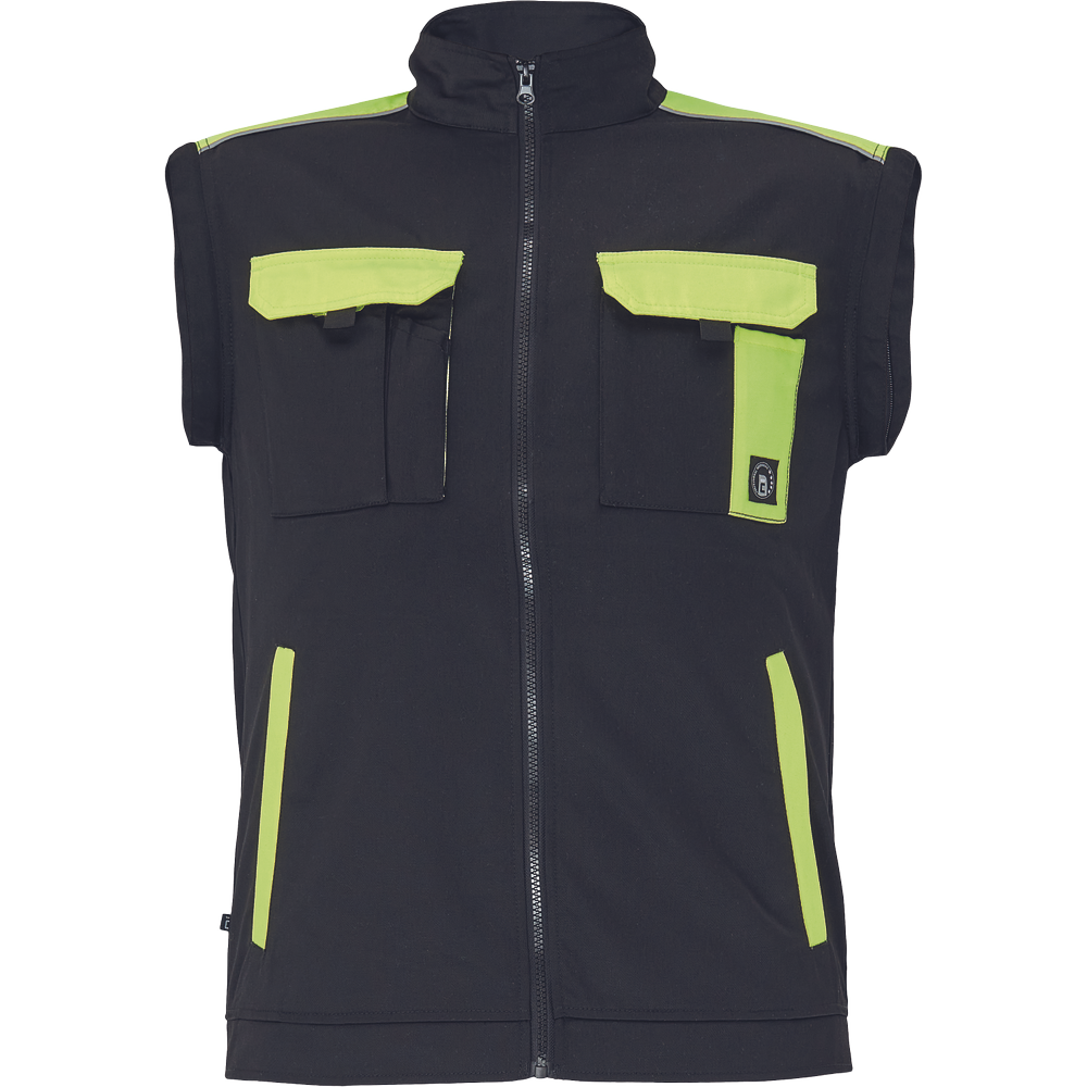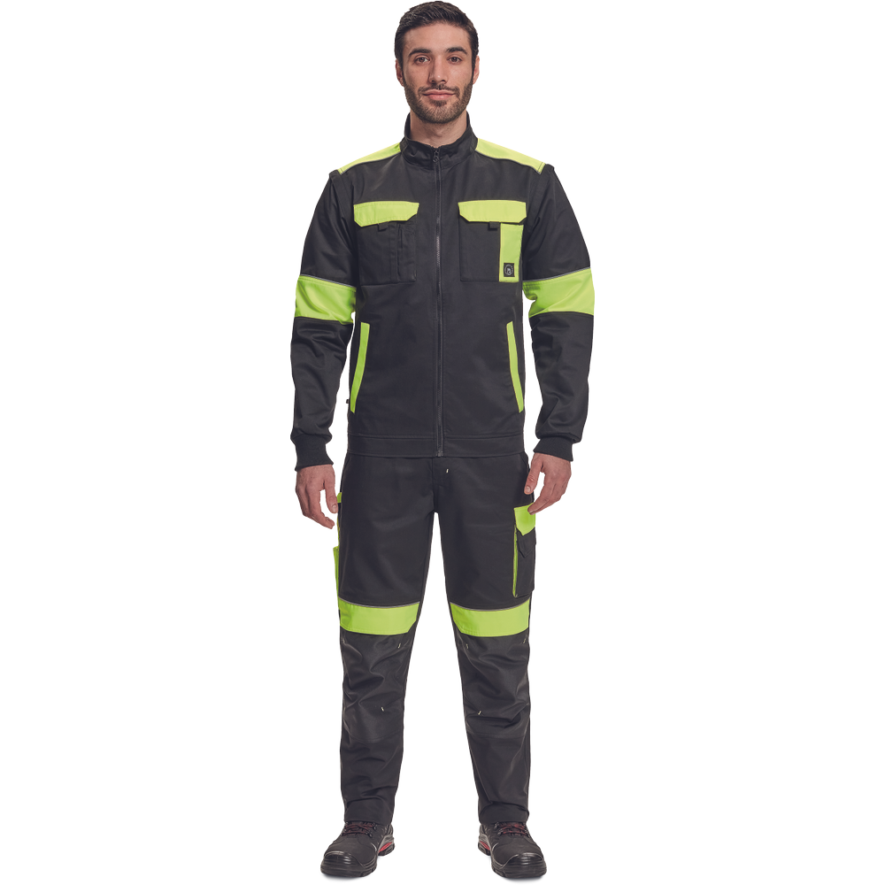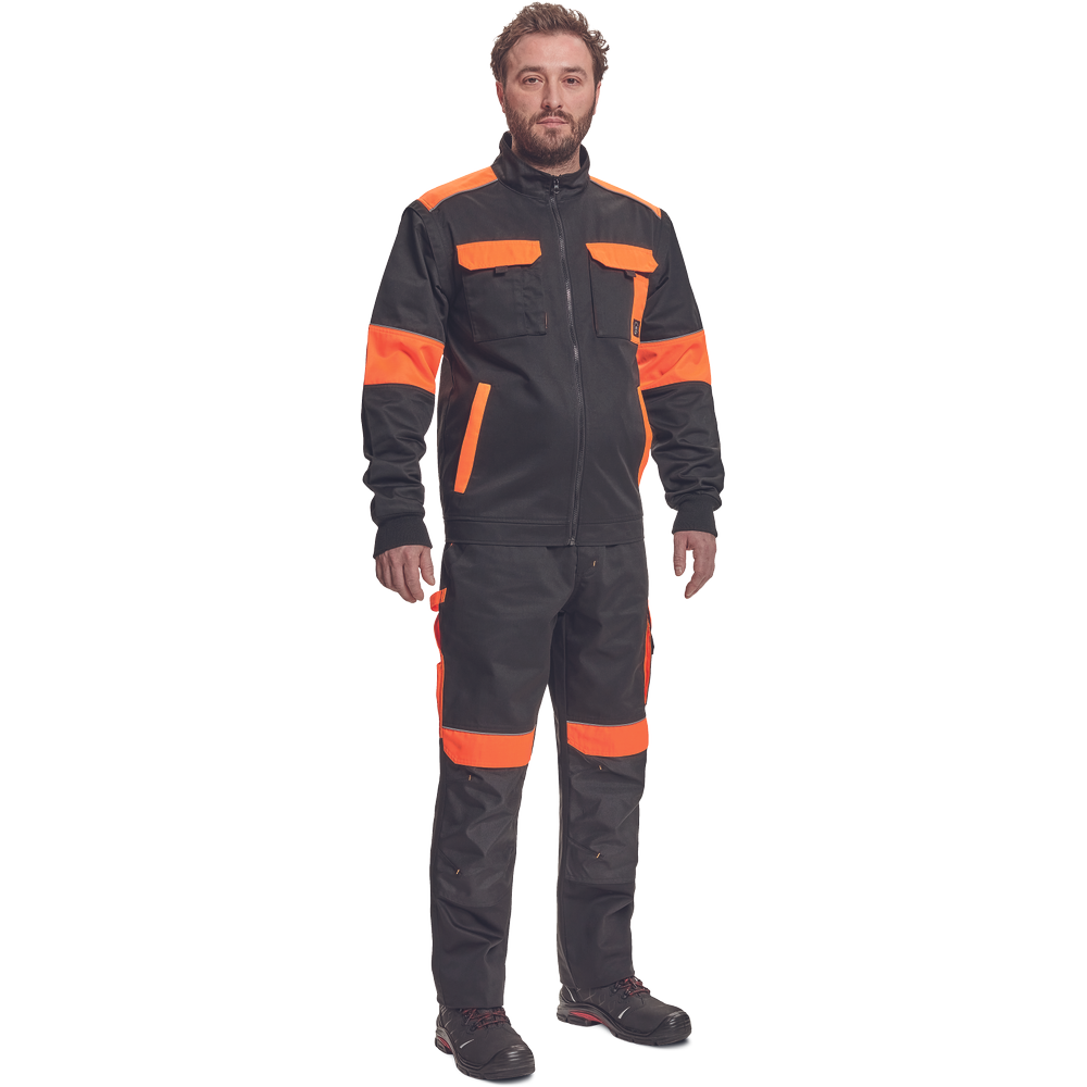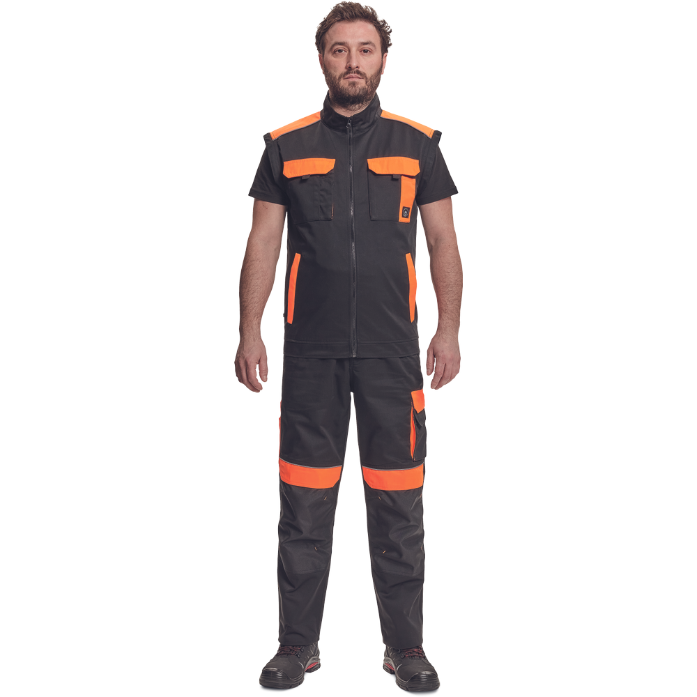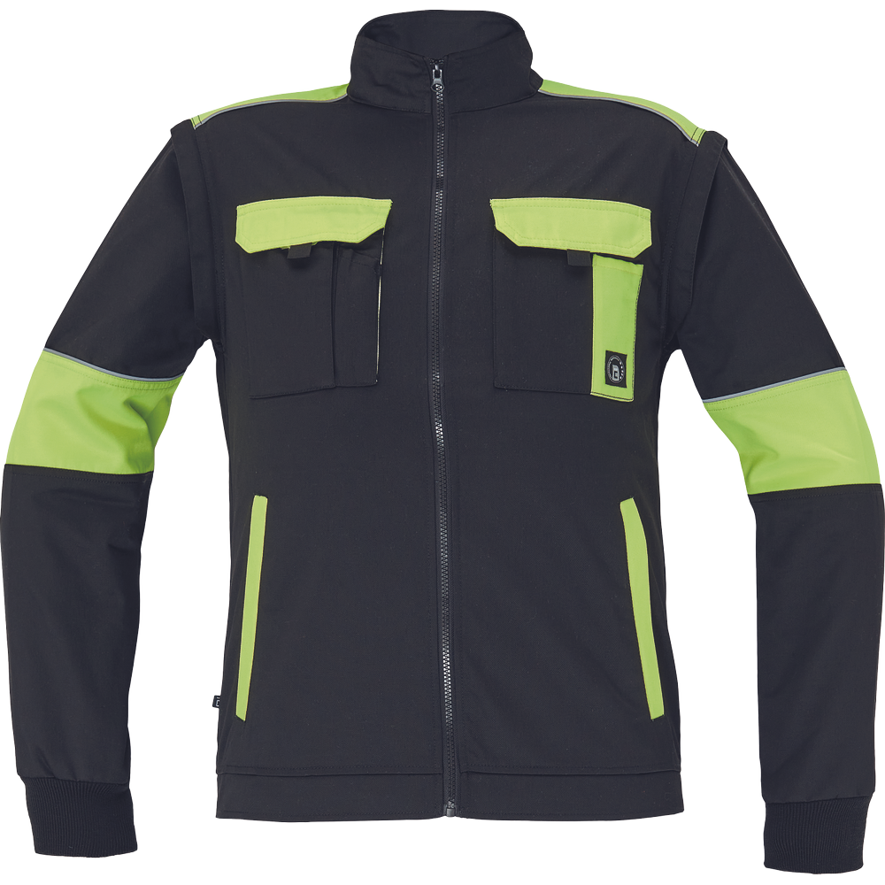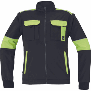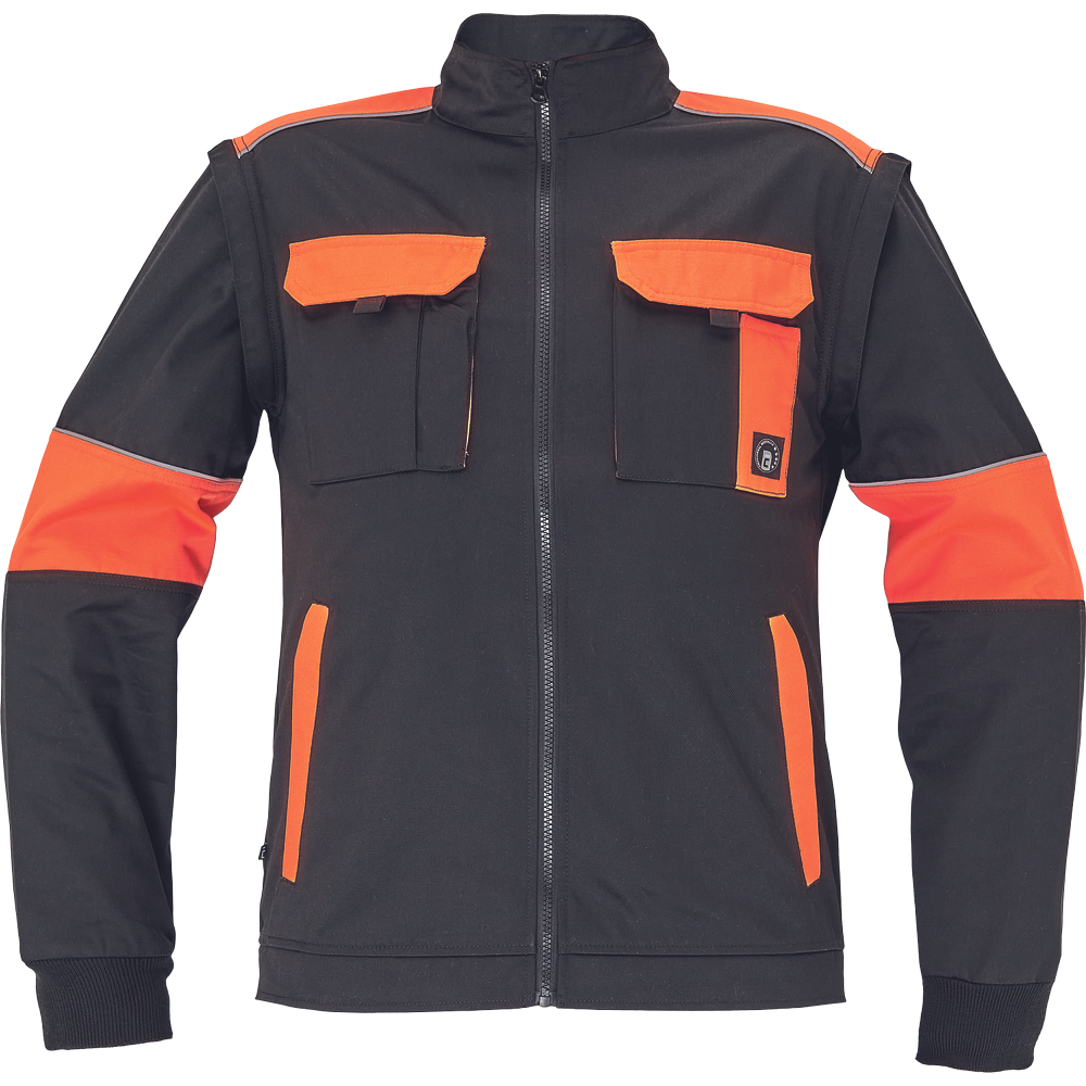 – moška delovna jakna z zadrgo – snemljivi rokavi – 2 sprednja žepa – 2 prsna žepa – ojačitve na poudarjenih delih ramen in komolcev – odsevne cevi – elastične rebraste manšete in spodnji rob pasu