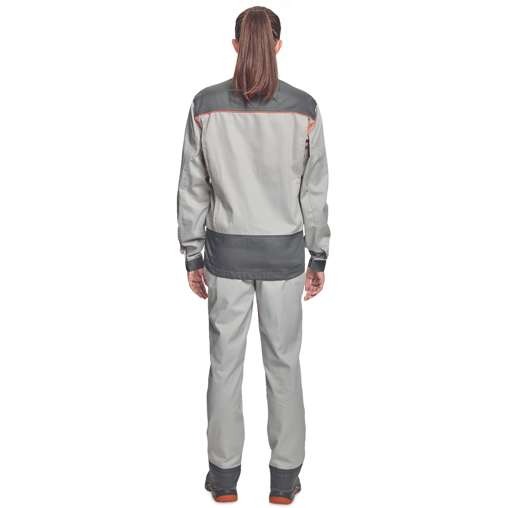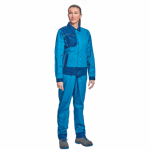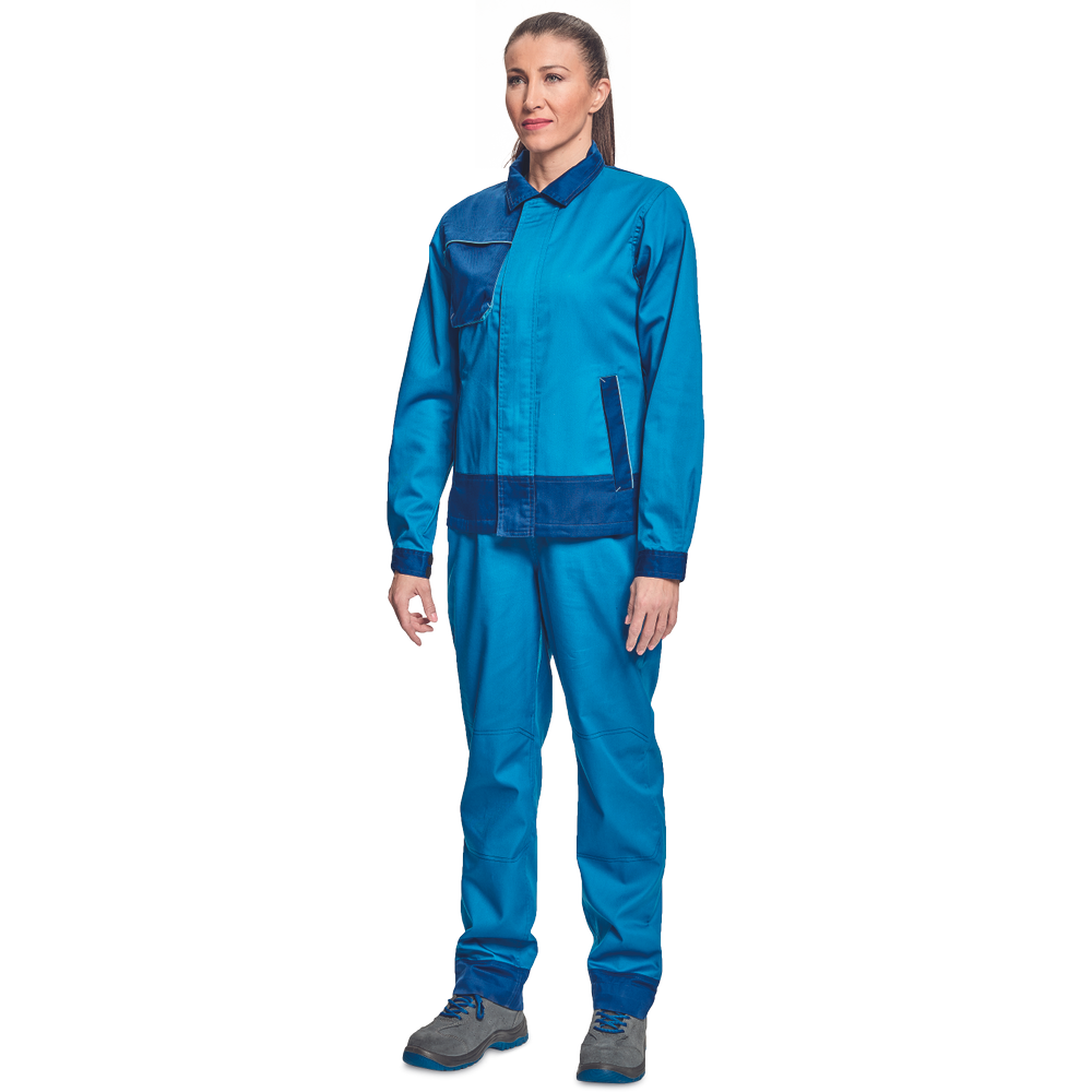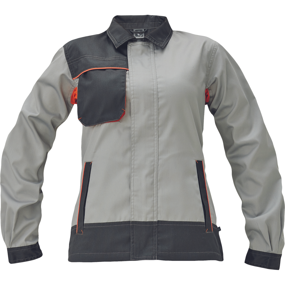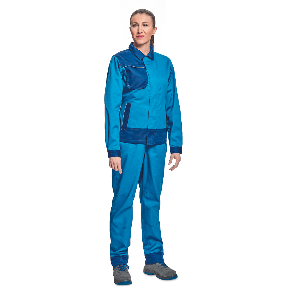 – lahka ženska delovna jakna, certificirana za industrijsko pranje – diha zaradi uporabe mrežastih delov – popolnoma pokrita zadrga in zapiranje rokavov – dostop za identifikacijski čip v notranjosti – okrasne cevi v kontrastni barvi