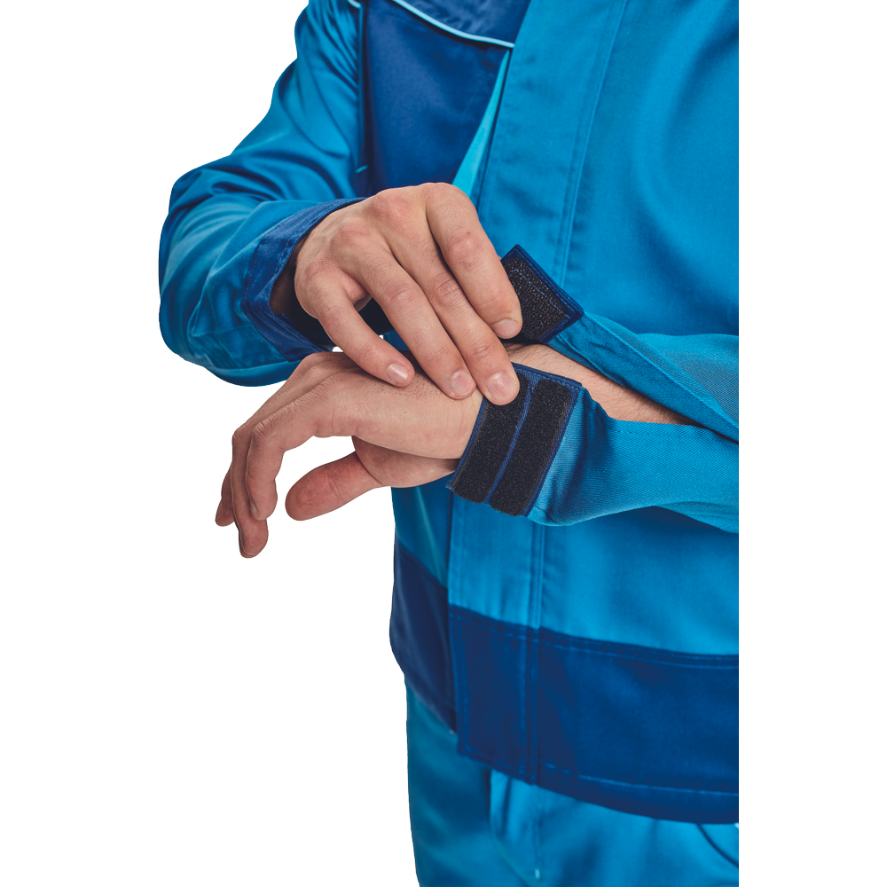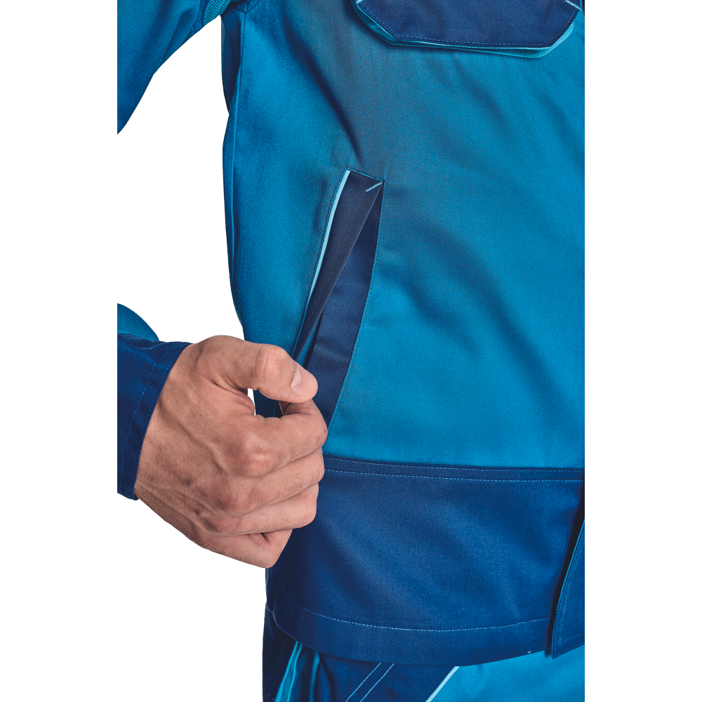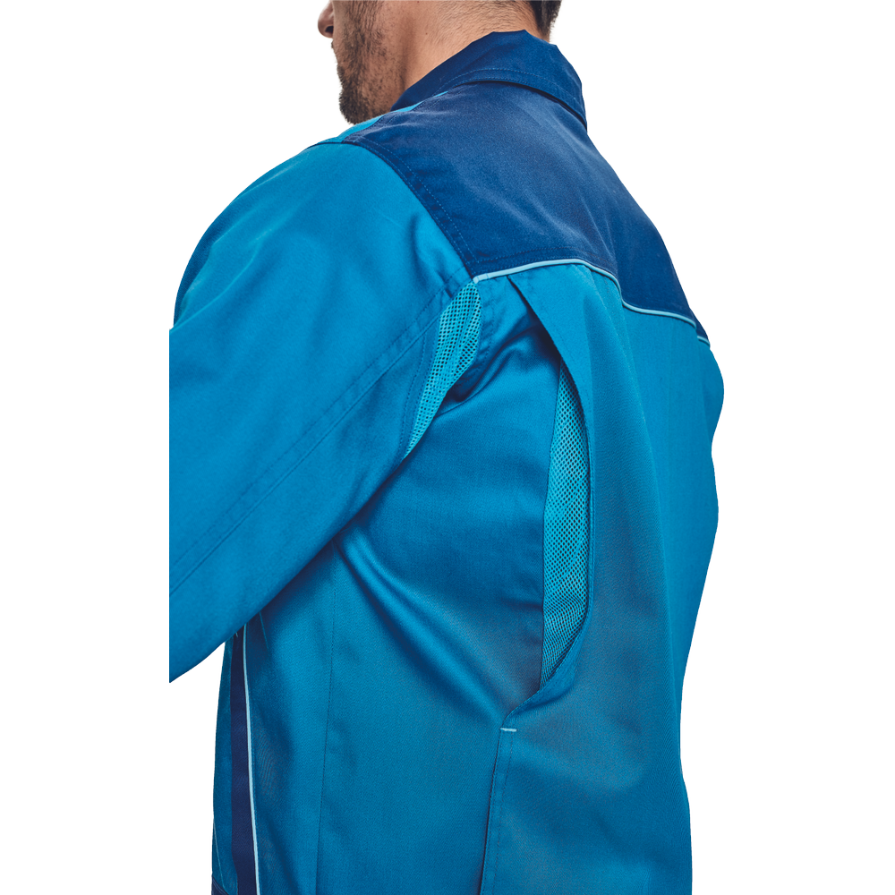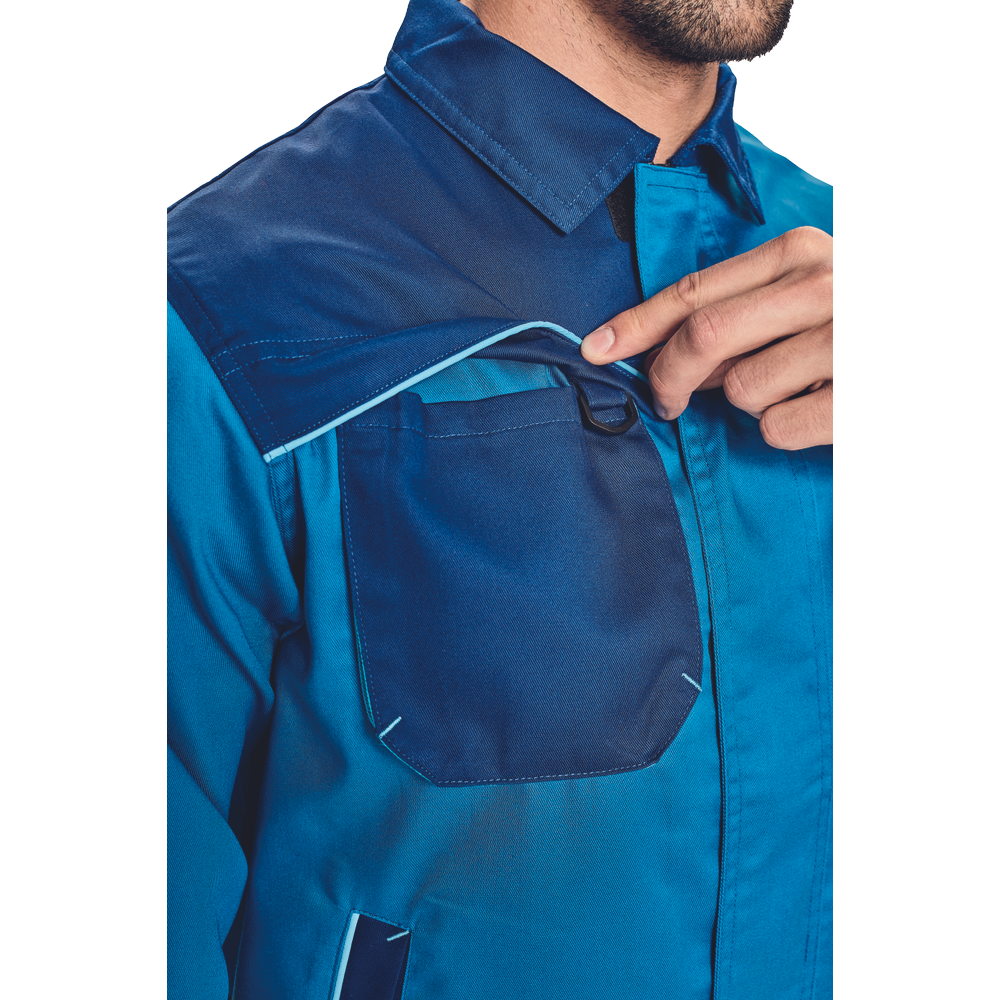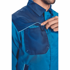 – moška lahka delovna jakna, certificirana za industrijsko pranje – zračna zaradi uporabe mrežastega dela – popolnoma pokrita zadrga in zapiranje rokavov – dostop za identifikacijski čip v notranjosti – okrasne cevi v kontrastni barvi