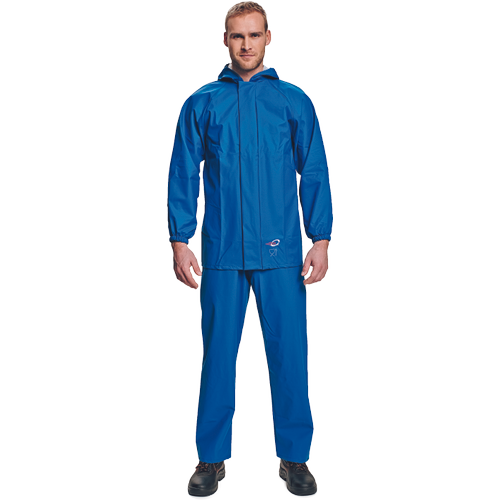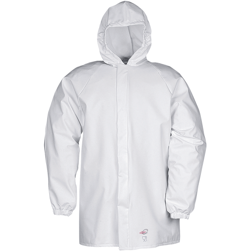 – jakna s kapuco, pralna pri 95 °C – 100 % nepremočljiva, vetrovna, neslišna, lahka – zapiranje na zadrgo pod zavihkom z zatiči – zračenje pod pazduho, elastičen zapestni trak – visokofrekvenčno varjeni šivi – dolžina hrbta 85 cm (L)