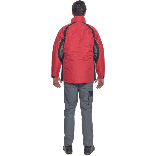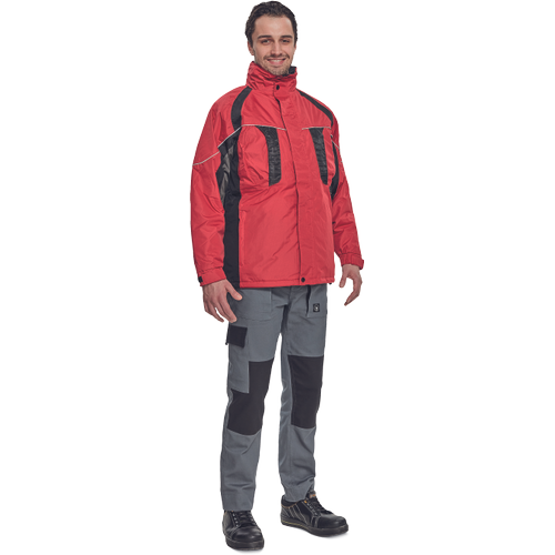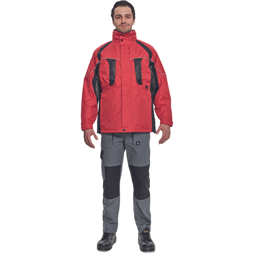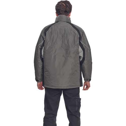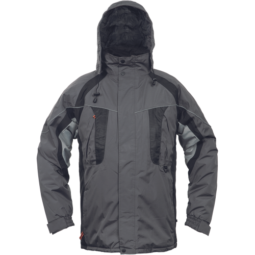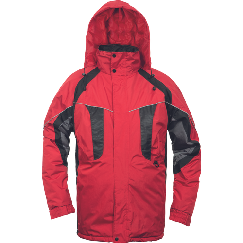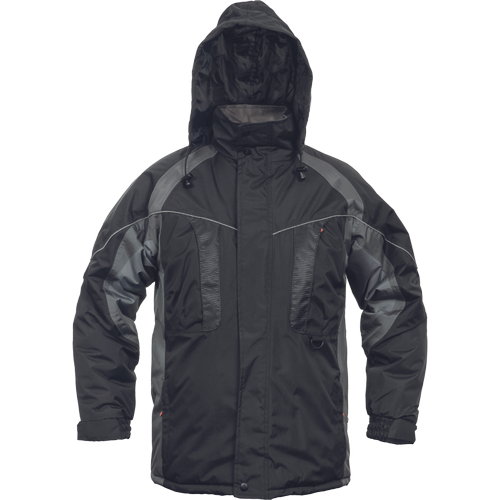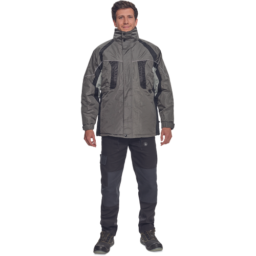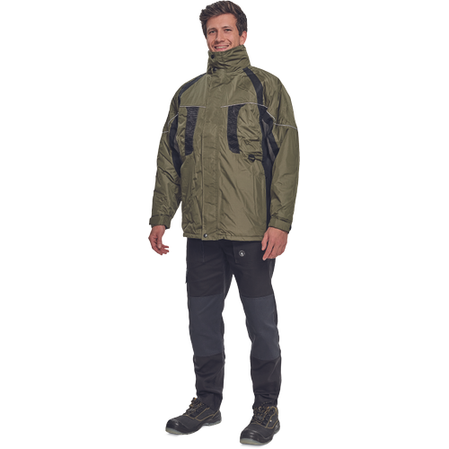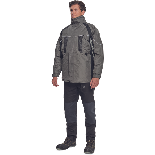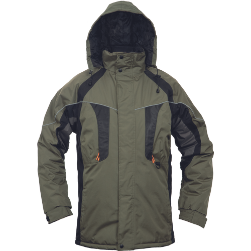 – moška izolirana zimska jakna z integrirano kapuco v ovratniku – vetru in vodi odporna tkanina – 2 stranska žepa, 2 prsna žepa na zadrgo – nastavljiv rob rokavov z velcro – spodnji rob nogavic z vrvico – odsevni elementi – izolirano s 100 % poliestra 190 g/m2